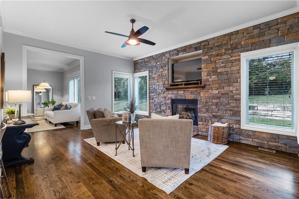 Impressive two-story home with stylish updates throughout! Main floor office features designer carpet while the great room and dining area showcase newly added hardwood floors and an updated fireplace that creates a warm, inviting focal point.The kitchen offers newer appliances including a gas stove & walk in pantry with plenty of space to gather. Enjoy relaxing evenings on the screened porch overlooking the fenced backyard. Fresh paint and carpet throughout home. Newer roof and HVAC for peace of mind. The primary suite is a retreat with ample space and comfort. Spacious finished lower level with built in's.
