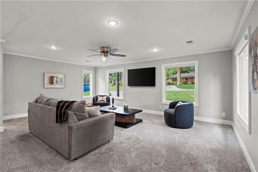 Move-in Ready! Designed for modern-day living and effortless comfort, this home offers over 4,300 square feet of well updated spaces with thoughtful design throughout. All bedrooms are on the main level, each with private en-suites that provide convenience and privacy. Multiple living areas create flexibility for entertaining or relaxing, while recent upgrades include a newer HVAC system, tankless water heater, replaced main line, and preventative improvements such as gutters, sump pumps, and buried drains. The kitchen has been refreshed with new counters, backsplash, hardware, and appliances, plus a mini-bar with a beverage fridge. Fresh paint, new carpet, and modern lighting complete the interior, while outside, a fenced yard, new landscaping, and a tuned-up sprinkler system add to the curb appeal. A rare three-car garage with EV charging, smart-home features, a security system, and updated window treatments round out this move-in-ready home. Additionally, it’s just minutes from shops, dining, and everyday conveniences.