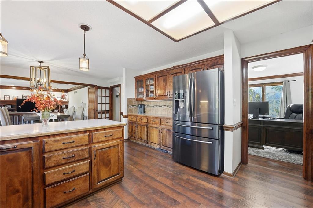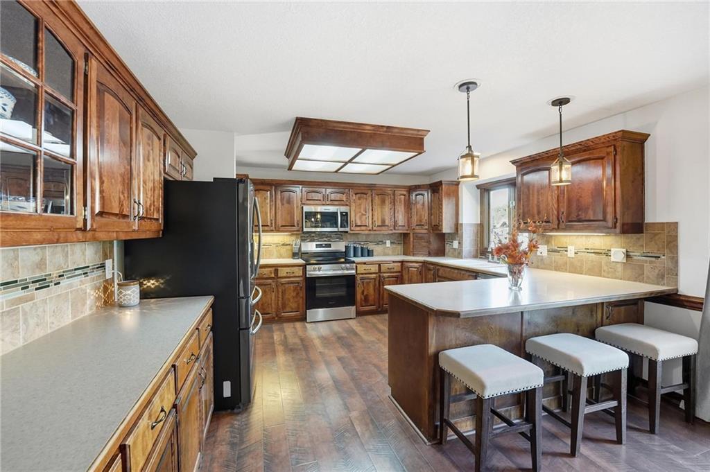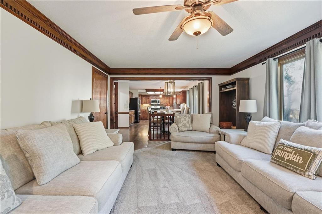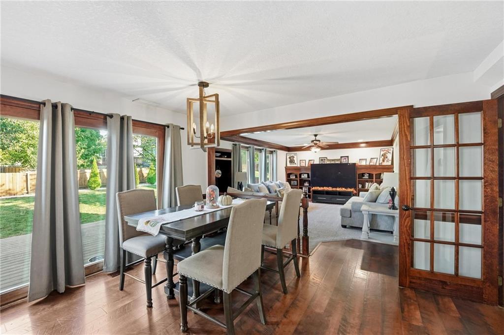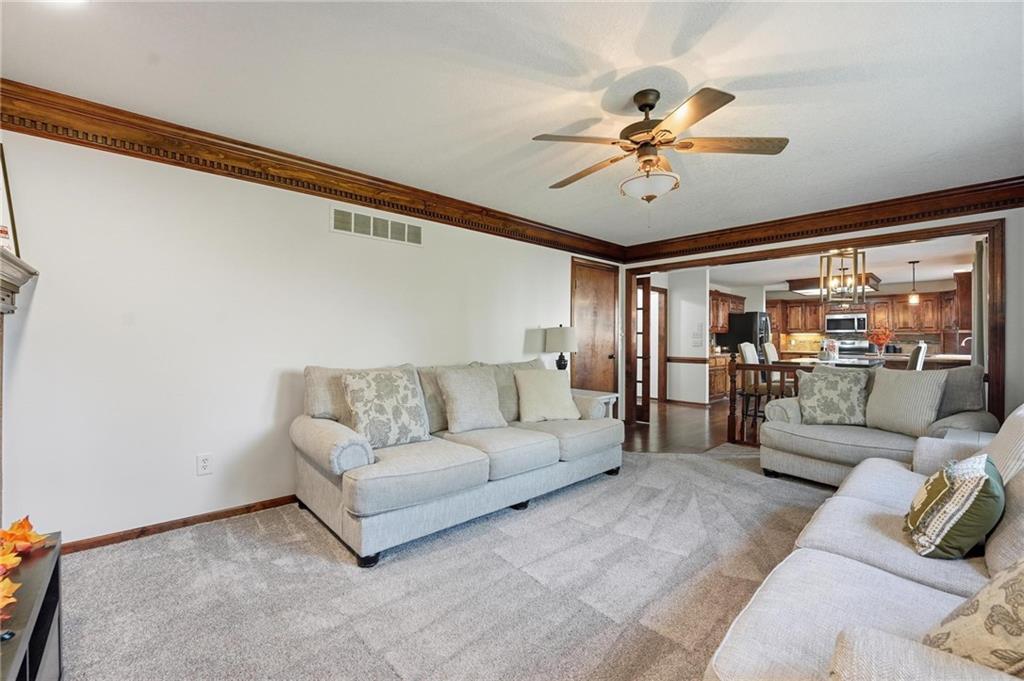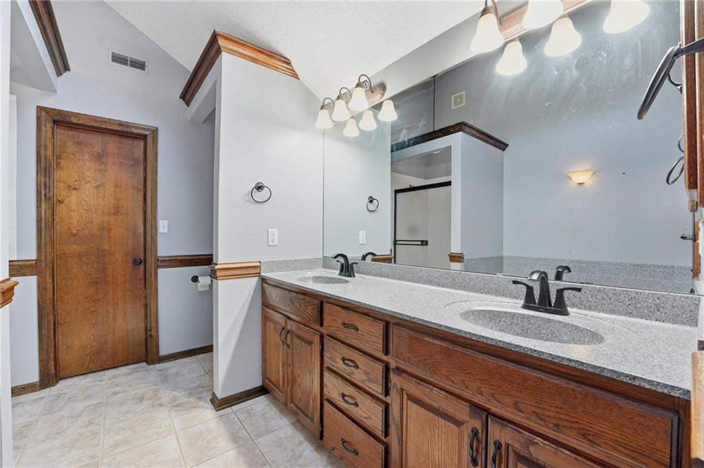 Gorgeous 2 story with new exterior paint, interior paint, carpet! The bedrooms on the 2nd level are HUGE, with walk-in closets. Welcoming front porch opens to a beautiful entry with wide plank floors that extend through to dining, kitchen & flex room on main level (could be 4th bedroom). The kitchen is a dream, tons of counter space, abundance of cabinets, upgraded s/s appliances, custom tile backsplash. Dining area has new fixture, large windows & full glass door out to composite deck, level backyard with newer privacy fence. The great room is open to the dining & kitchen, ideal for entertaining. Extensive crown molding, custom built-ins on either side of a gas fireplace, large windows overlooking backyard. A FULL bathroom on this level gives flexibility for the use of the main level room that could also be an office. Upstairs, the primary suite has a large sitting room space, luxury bath with updated tile flooring, double vanity, large jetted tub & separate shower, vaulted ceiling & skylight. Large walk-in closet, too! Spacious bedroom level laundry room has great storage, folding counter. 2 additional bedrooms are much larger than normal 2 story home, offering great walk-in closets & ceiling fans! Both bedrooms have private access to the shared bathroom! Lower level has 9' finished ceilings in the family room. Built-ins, custom lighting and over 700 sqft make it perfect for home theater space! Tons of unfinished storage space remains. High efficiency HVAC with humidifier is zoned for comfort summer or winter months. Central vac & 2 large electrical panels offer plenty of room for future expansion! The 3 car garage is much larger than most, 23' deep, 30' wide & 10' ceilings, lot of electrical outlets for charging tools, adding a workbench area.
