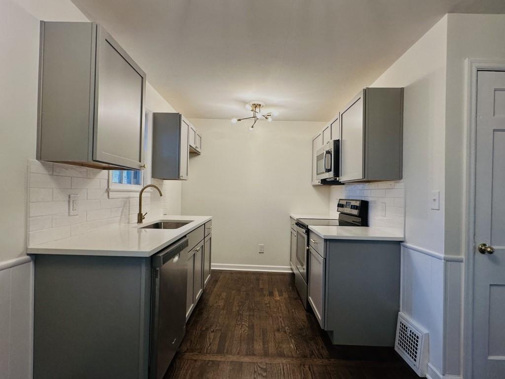 Recently updated 2 bed 1 bath turnkey home in the heard of Santa Fe Hills. Remodeled bathroom with new surround, vanity and fixtures. New hardwood floor refinishing. Remodeled kitchen with brand new cabinets, quartz countertops, backsplash and light fixtures with newer stainless steel appliances. Features an attached garage with paver patio that leads to a spacious, fenced backyard. Basement is semi-finished perfect for a play area, gym or workspace.