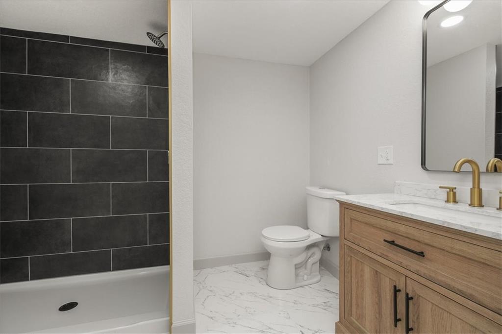 Discover a truly turn-key opportunity in this masterfully renovated ranch-style home, transformed from top to bottom with an expert designer's touch. This is your chance to own a property where all the hard work has been done, allowing you to simply move in and immediately enjoy a lifestyle of modern luxury and comfort. The open-concept living space is bathed in natural light, featuring rich, dark wood flooring that flows seamlessly throughout. At the heart of the home, the gourmet kitchen is a showpiece, boasting new white cabinetry, sleek quartz countertops, and a sophisticated gray subway tile backsplash, all perfectly accented by a suite of stainless steel appliances. Retreat to the serene bedrooms, which offer a peaceful escape with soft new carpeting and a contemporary color palette. The bathroom has been completely redesigned into a spa-like oasis, showcasing exquisite tile work, modern fixtures, and a stylish new vanity. The excitement continues downstairs in the spacious, fully finished basement, a highly versatile area ready to be anything you need—a media room, a home gym, or an additional family lounge. Outside, the home impresses with stunning curb appeal, thanks to fresh exterior paint and tasteful new landscaping. Enjoy the charm of a front deck and the utility of a generous backyard, complete with a newly painted storage shed. This property represents the perfect blend of quality craftsmanship and contemporary design.