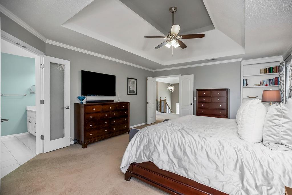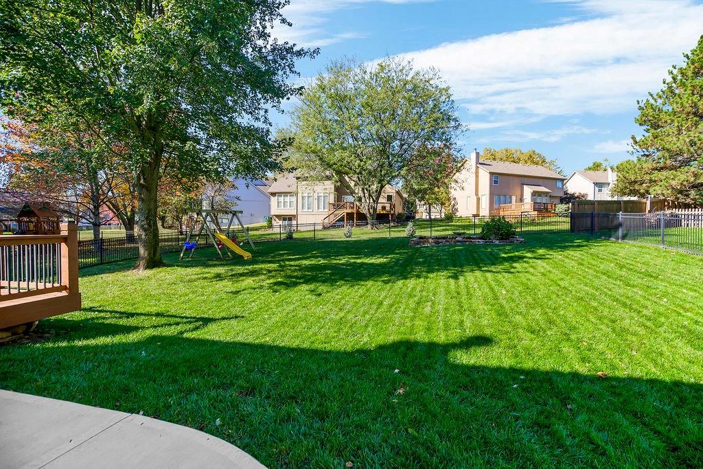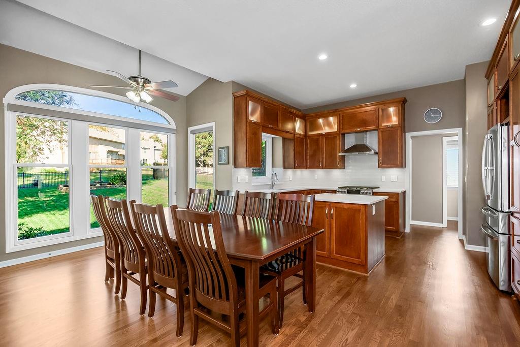 This spectacular 2 story, 4 bedroom 3 bath home is located in one of Blue Valley’s most sought-after neighborhoods. The main level welcomes you with an open floor plan and a versatile office or flex room just off the entry. Sunlight fills the spacious living area making this home perfect for entertaining or everyday living. The living room features a cozy fireplace a wall of windows and freshly finished hardwood floors. The chef’s kitchen is a true delight offering an abundance of custom cabinetry, quartz countertops, a gas range, stainless appliances and a functional layout that opens to the living area and beautiful backyard views. Upstairs you’ll find 4 generously sized bedrooms including a spacious primary suite with a sitting area. The luxurious in suite bath features a jetted tub, walk-in shower, double vanity and a large walk-in closet. The finished lower level offers the perfect space for a game room, home theater, or additional entertainment area plus plenty of storage. Prime location and just a short walk to award winning Blue Valley schools. Close to highways, shopping, restaurants and local sports fields. This move in home truly has it all.