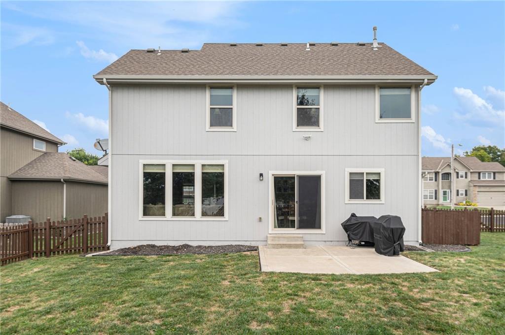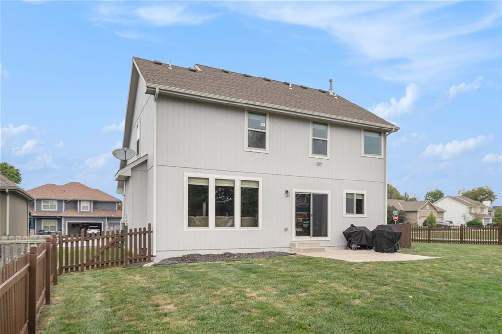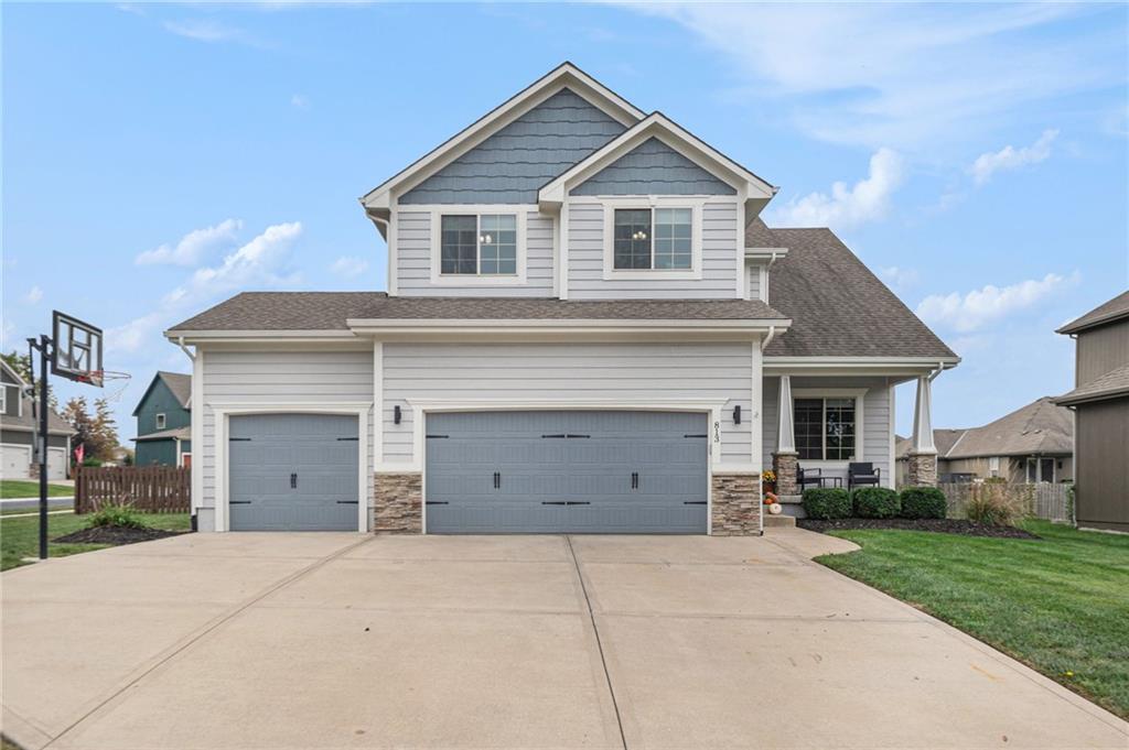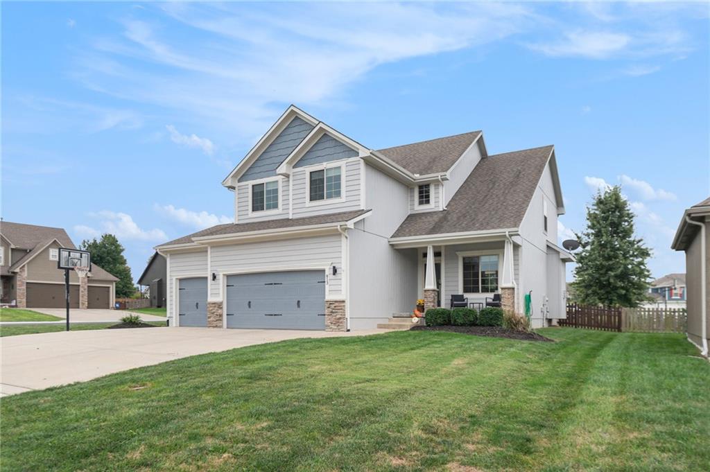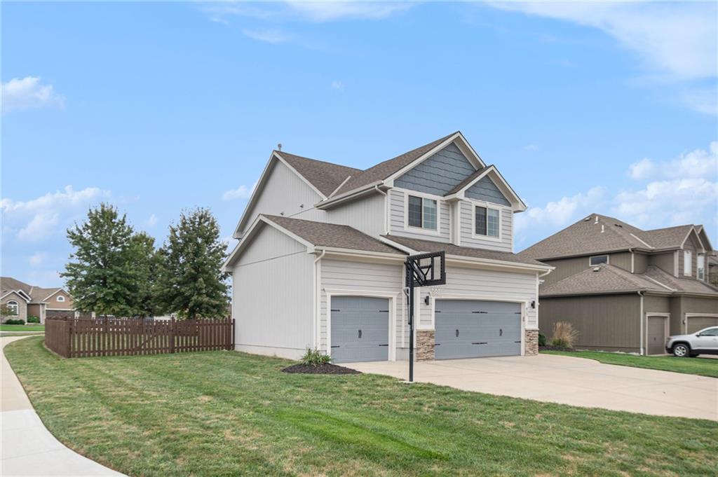 Step inside to a bright foyer that sets the tone for the light and open feel throughout. To your right, the formal dining room is filled with natural light and flows seamlessly into the spacious living room, complete with large windows and a cozy fireplace. The open-concept layout continues into the breakfast nook, perfect for family meals or morning coffee, and the large kitchen, featuring beautiful dark cabinetry, stainless steel appliances, and plenty of counter space with a fresh, inviting feel. Off the kitchen, a convenient hallway offers a coat closet, a full bathroom, and access to the three-car garage. Upstairs, you’ll find a spacious and bright primary suite with two large walk-in closets and a private ensuite bathroom. Three additional bedrooms, one with its own walk-in closet, share a full bathroom on this level. The laundry room is also conveniently located upstairs for easy access. The unfinished basement provides a large open area perfect for all your storage needs or future finishing potential. Step outside to the fenced backyard, offering plenty of space and endless possibilities to bring your creativity to life, whether it’s a garden, patio, or play area.