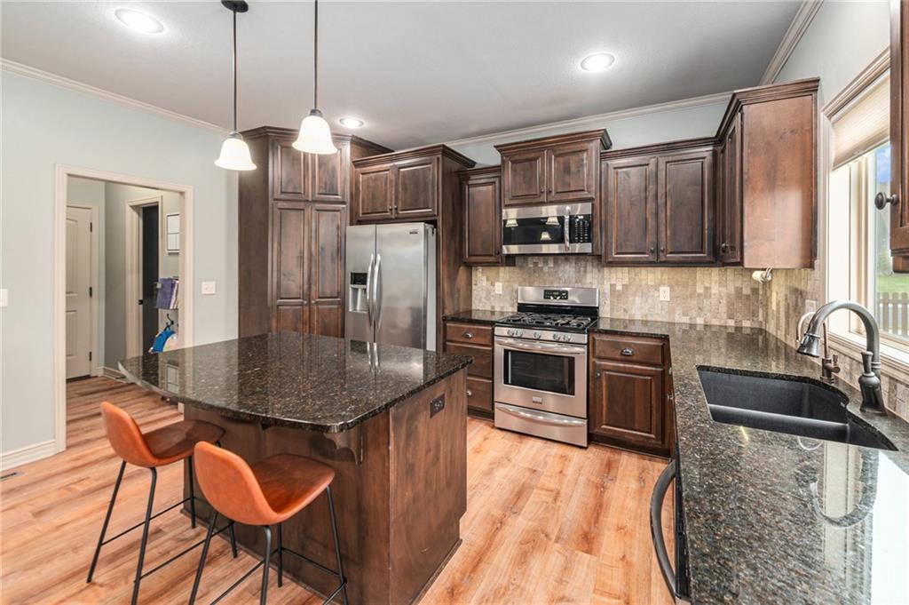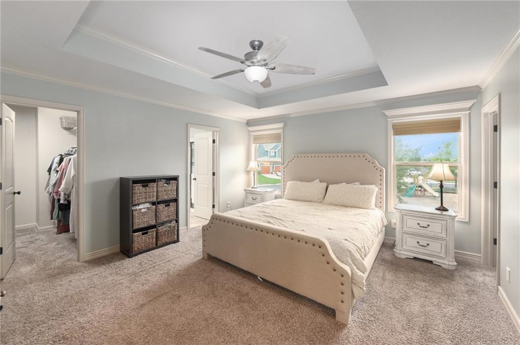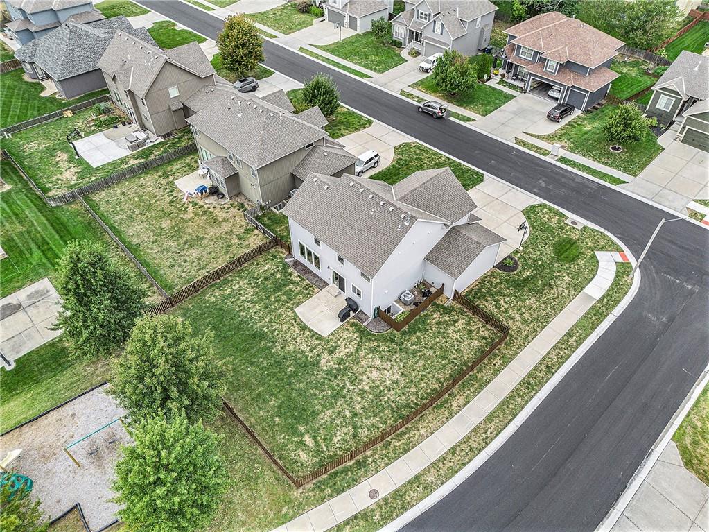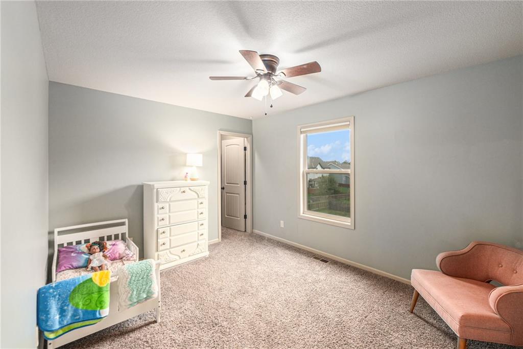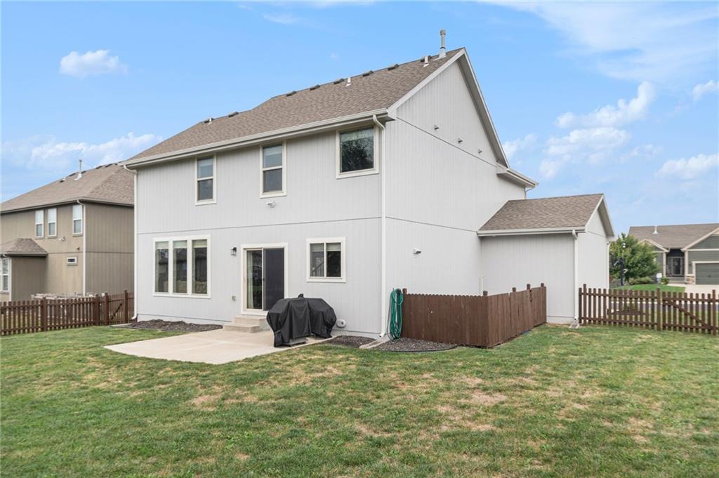 Step inside to a bright foyer that sets the tone for the light and open feel throughout. To your right, the formal dining room is filled with natural light and flows seamlessly into the spacious living room, complete with large windows and a cozy fireplace. The open-concept layout continues into the breakfast nook, perfect for family meals or morning coffee, and the large kitchen, featuring beautiful dark cabinetry, stainless steel appliances, and plenty of counter space with a fresh, inviting feel. Off the kitchen, a convenient hallway offers a coat closet, a full bathroom, and access to the three-car garage. Upstairs, you’ll find a spacious and bright primary suite with two large walk-in closets and a private ensuite bathroom. Three additional bedrooms, one with its own walk-in closet, share a full bathroom on this level. The laundry room is also conveniently located upstairs for easy access. The unfinished basement provides a large open area perfect for all your storage needs or future finishing potential. Step outside to the fenced backyard, offering plenty of space and endless possibilities to bring your creativity to life, whether it’s a garden, patio, or play area.