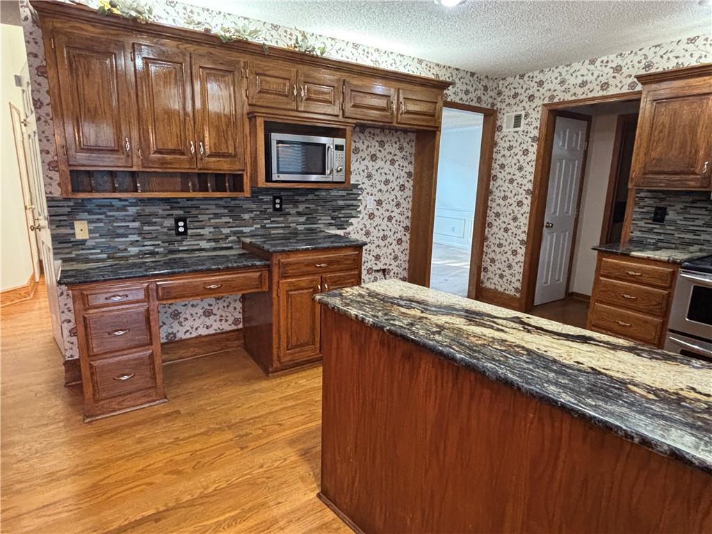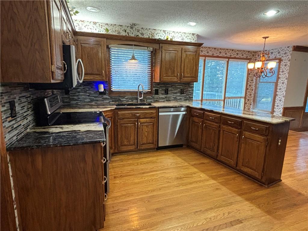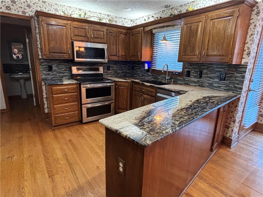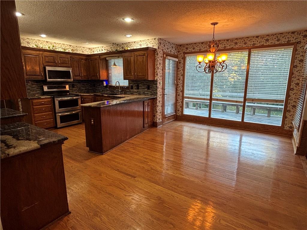 Welcome to this spacious 2-story home with a 3-car garage and a finished walkout basement, perfectly situated in the sought-after Winsboro subdivision. Enter the home via the custom-built paver stone landing and steps with inviting patio. The main level features a generous eat-in kitchen with granite countertops, formal dining room, a spacious living room with a fireplace and built-in bookshelves, as well as convenient 1st floor laundry room. Upstairs you'll find 4 bedrooms including a stunning primary suite with a sitting room, luxurious bathroom with a jacuzzi tub, and an impressive walk-in closet measuring 20 ft long by 5.5 ft wide. The lower level offers a full 2nd living space with a full kitchen, living room, bedroom, and full bath - ideal for guests, extended family, or entertaining. Step out from the walkout basement to a peaceful patio overlooking beautiful green space or relax on the roomy deck accessed from the upstairs kitchen. Neighborhood amenities include a pool, pond, and common areas--all maintained by the HOA, which also provides trash service. This home truly offers space, comfort, and an exceptional lifestyle in one of the area's most desirable communities.