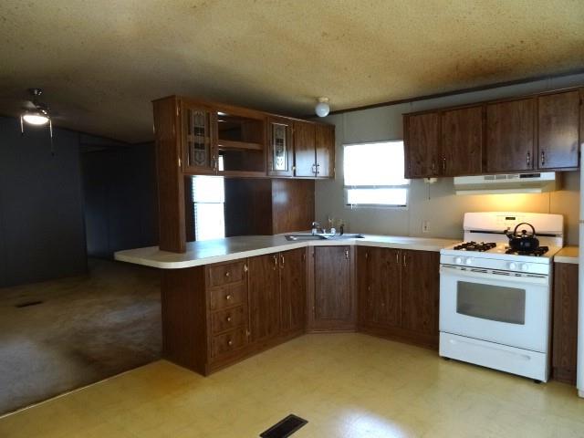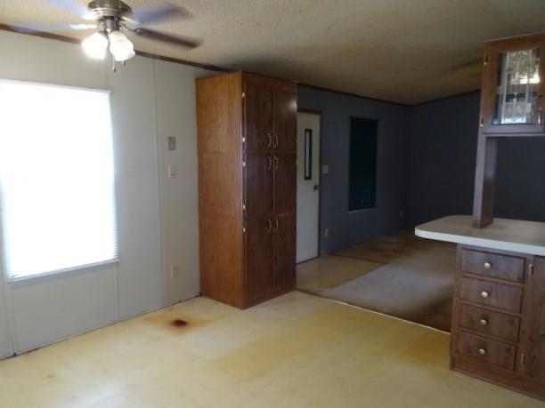 Singlewide Manufactured 2 Bedrooms, 1 Bath, a 12x16 (192 sq. ft.) room addition with 2 doors and windows was added to the 900 sq. ft. home. Carport in the yard, root cellar or tornado shelter appears to be in good condition is a bonus. Home has been well taken care of with a kitchen island, bow window with almost new mini blinds, stove and refrigerator are in clean and in good condition. Pantry also. The bathroom in the hall has been remodeled with a fiberglass walk-in shower with many grab bars. Washer and dryer are in the hall with a shelf above. 2023 HVAC System. Propane tank that runs kitchen range and the furnace is owned by the property. Electric Water heater in the master bedroom closet was installed in 2022. 100 amp Breaker box in Master Bedroom. Outside was painted in 2025, Most of inside painted in 2023. Roof in 1998. Mature Trees, Garden Spot, Lot is 130x140.