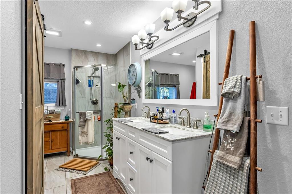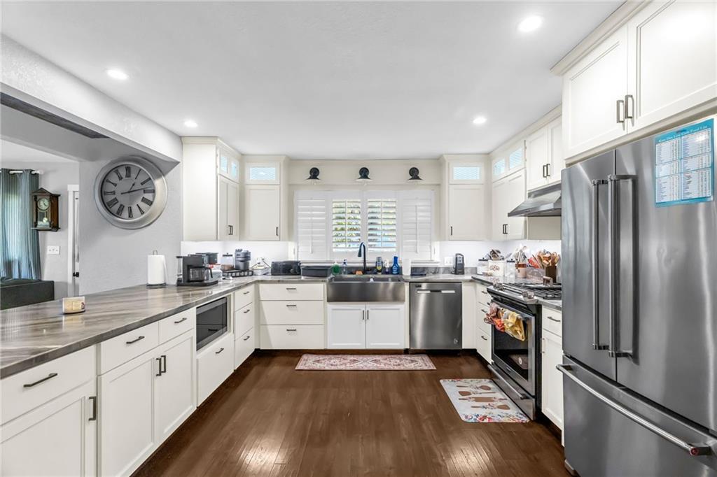 Step inside this fully refreshed ranch where smart design meets stylish living. The open-concept kitchen—transformed in a 2019 renovation—features sleek lighted cabinets (inside and out) and flows seamlessly into the dining and living areas, creating the perfect setting for entertaining and everyday comfort. A brand-new high-impact roof (2024) with matching gutters and downspouts gives this home major curb appeal and long-term peace of mind. Inside, enjoy year-round comfort thanks to the energy-efficient HVAC system (installed 2020). The main floor offers both the Primary suite and guest bedroom, while the lower level adds another bedroom and full bath—perfect for guests, hobbies, or extra living space. This home blends charm, modern upgrades, and Baldwin City convenience—ready for you to move right in and make it your own! Close to downtown shops, dining, and community events!