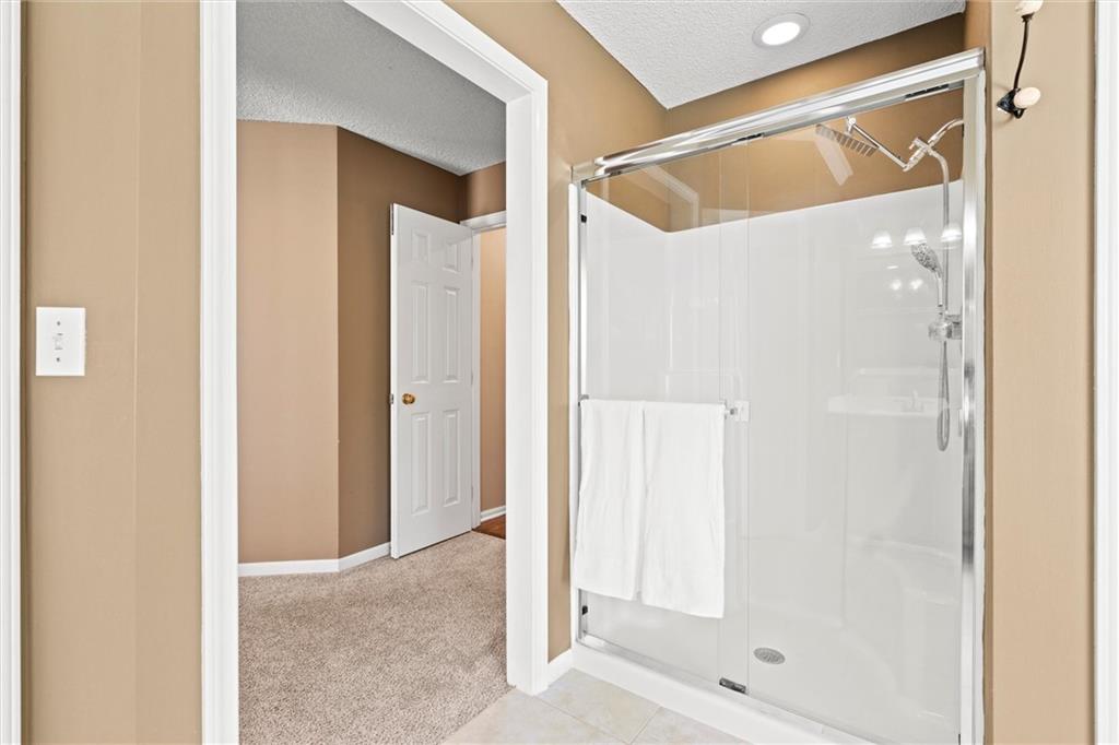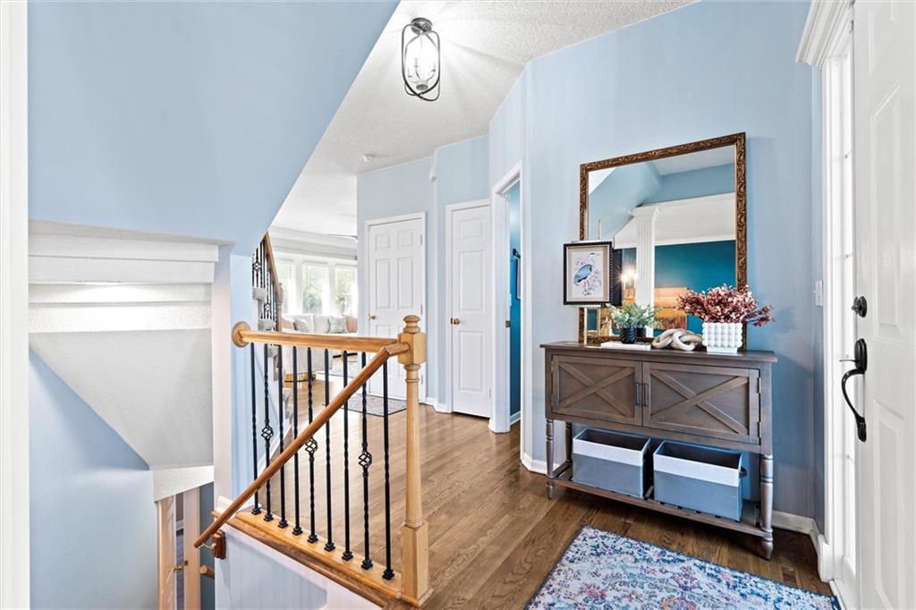 Welcome to 14708 Walmer Street! This beautifully cared-for home is nestled in Regency by the Lake, located in the heart of Overland Park. Thoughtful updates, generous living spaces, and a private backyard retreat make this home a true stand out. Step inside to find a light-filled floor plan with hardwood floors and elegant architectural details. The formal dining room’s richly colored walls and wainscoting create a striking first impression, while the open kitchen makes everyday living feel easy and connected. A main-level half bath and inviting living spaces offer both function and flow for gatherings large and small. Upstairs, the spacious primary suite features a tray ceiling and abundant natural light, along with a large en suite bath and walk-in closet. Three additional bedrooms share a full hall bath, providing comfortable accommodations and flexible space. All bedrooms just had new carpet installed as well with fresh paint in two of the rooms. The finished lower level extends the living area with a rec room, full bath, and bonus room. The bonus space offers versatile options for a home gym, creative studio, guest space and more. The full bath is connected to both the rec room & the bonus room making it a perfect space for a guest suite. All this space and still plenty of storage in the unfinished storage room. The 2 car garage features extra space to allow for storage of lawn equipment, bikes, etc. Step outside to your private patio surrounded by lush landscaping creating a peaceful setting for morning coffee or evening gatherings. Plus a sprinkler system to keep the lawn green all summer! Located just steps from Lakewood Elementary and Lakewood Middle, both within the Blue Valley School District, and minutes from shopping, dining, and entertainment at BluHawk and Prairie Fire. This home offers a desirable blend of comfort and convenience in a prime Overland Park location. HOA even includes walking trails and a neighborhood pool!