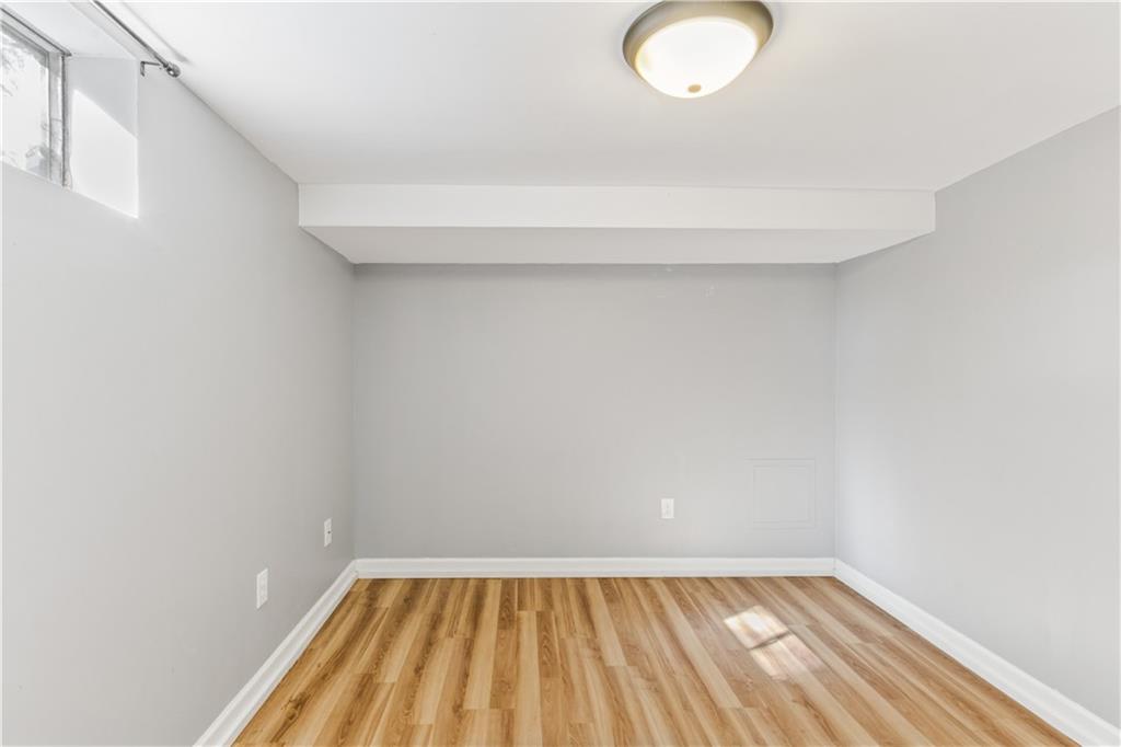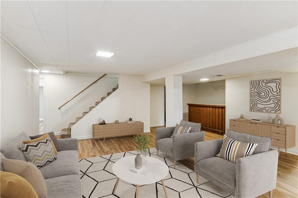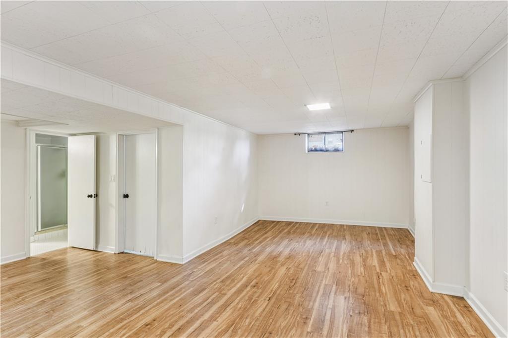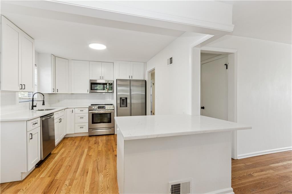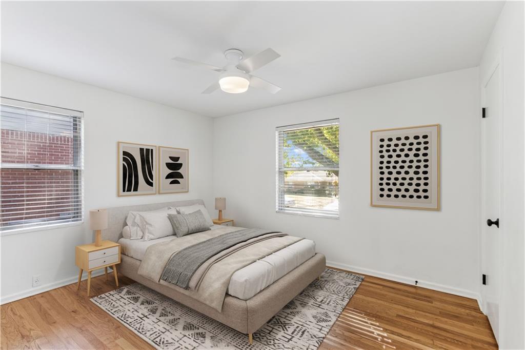 Charming and renovated brick and stucco ranch situated on a large, fenced corner lot. Open floorplan with lots of natural light and beautifully refinished hardwood floors thruout. Main level laundry hookups. Remodeled kitchen features stunning quartz counter tops, soft close cabinets, breakfast bar and newer stainless steel appliances (including refrigerator and built-in microwave). Completely redone crisp white bathroom with a quartz vanity. Screened-in porch off living room. Finished lower level family room, a 2nd full bath and a 4th non-conforming bedroom/office (has a closet). One car detached garage with close access to house. Two-car driveway. Roof and A/C are newer. Poured concrete foundation. Great location with close proximity to award winning schools, restaurants and shopping.