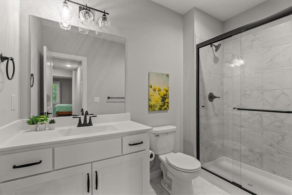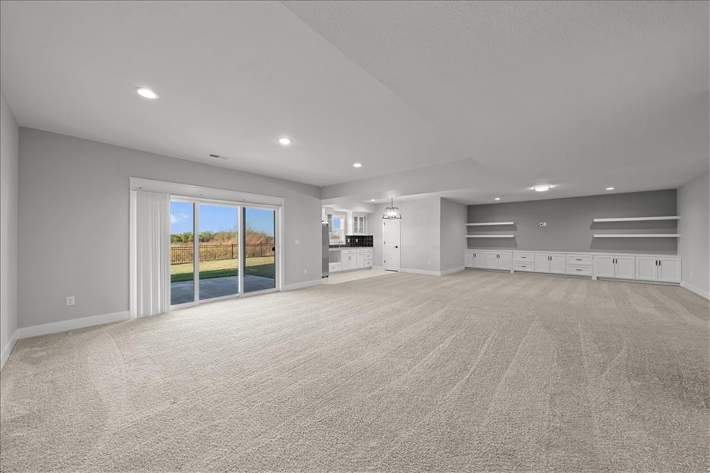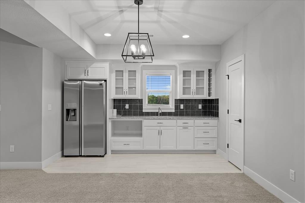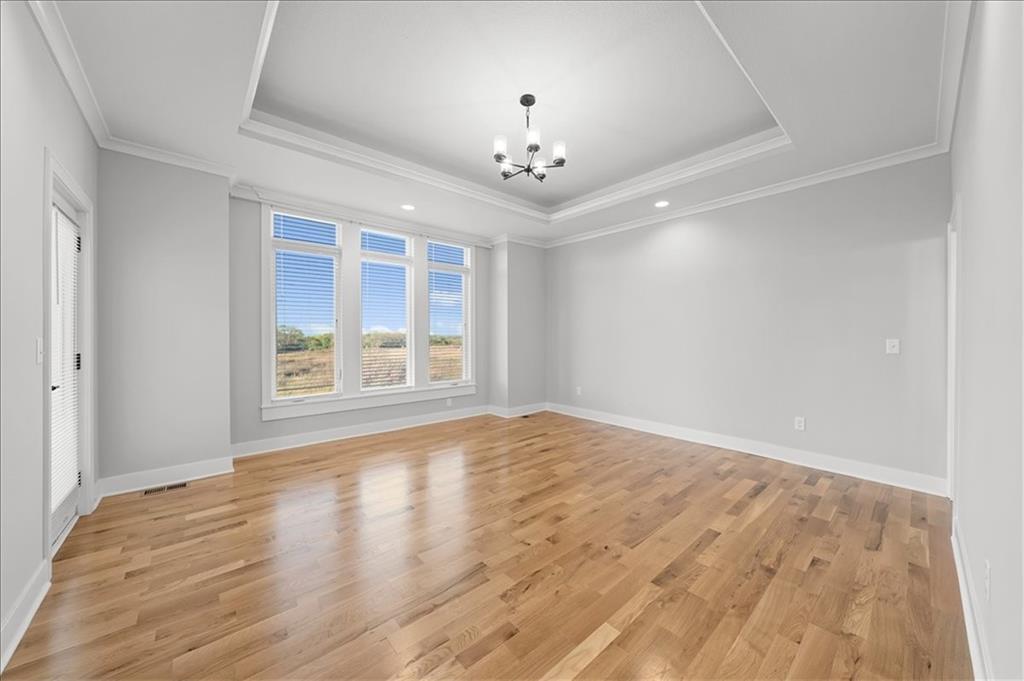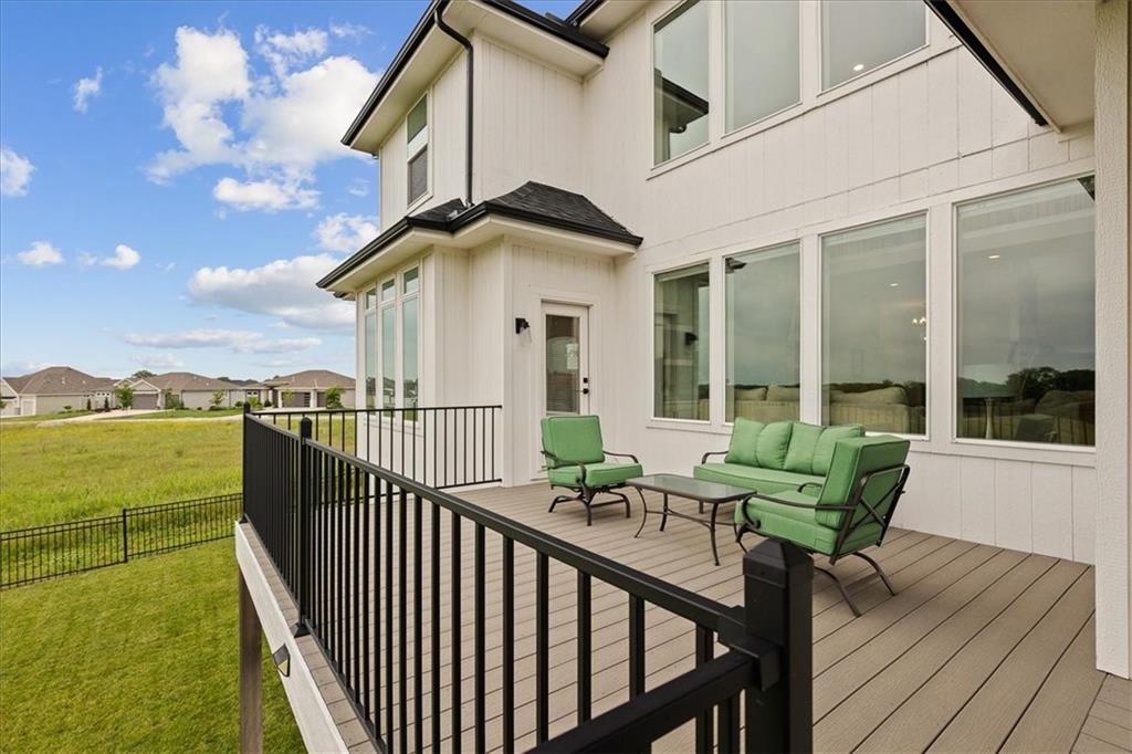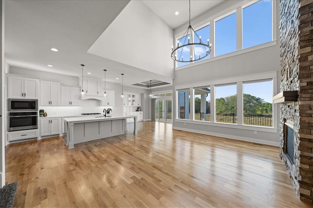 Unbeatable value in the Blue Valley School District! This stunning 1.5-story home is priced nearly $170K below county appraisal and offers exceptional space, style, and comfort. Highlights include a dramatic two-story stone fireplace, wide-plank hardwood floors, and a chef’s kitchen featuring an upgraded gas cooktop, massive walk-in pantry with a second oven, and custom cabinetry throughout. The main-level primary suite is a true retreat with peaceful views, a spa-inspired bath, and convenient laundry hookups just off the bedroom. Upstairs, each secondary bedroom includes its own walk-in closet and private bath for ultimate comfort and privacy—plus a second laundry area for added convenience. The finished walkout lower level expands your living space with a spacious rec room, wet bar, guest suite with ensuite bath, and an additional half bath. Step outside to the expansive, partially covered deck to enjoy beautiful sunsets and serene views. Community amenities include a resort-style pool, clubhouse, and fishing pond—all within minutes of top-rated schools, shopping, and dining. Quick closing available—don’t miss this incredible opportunity!