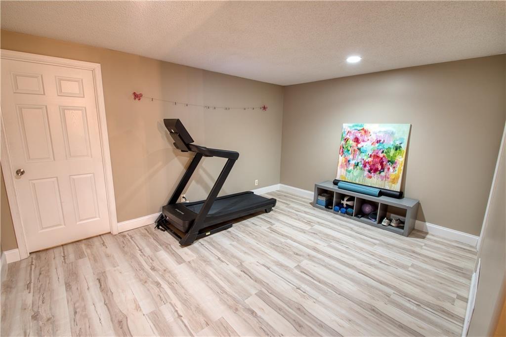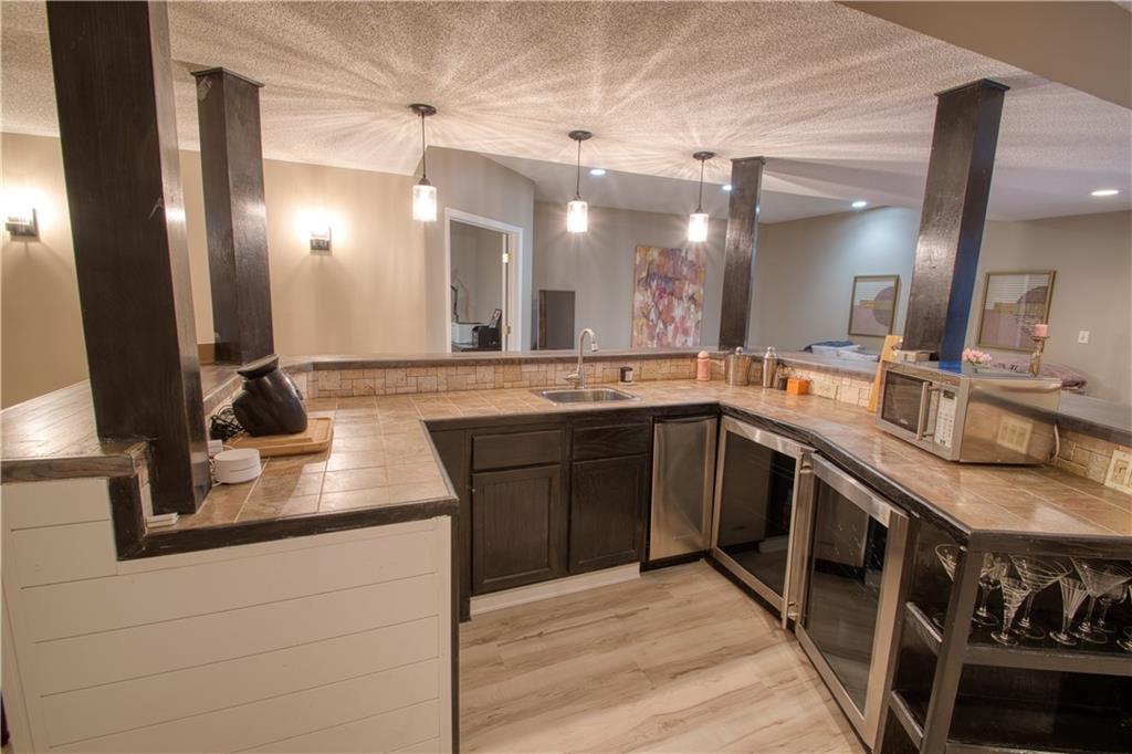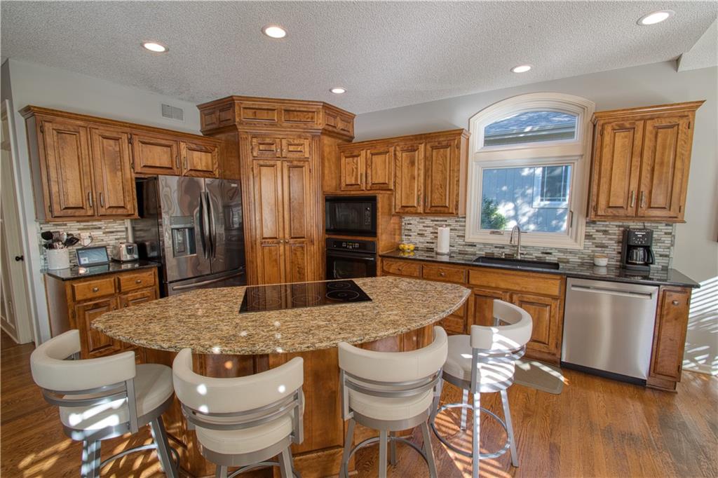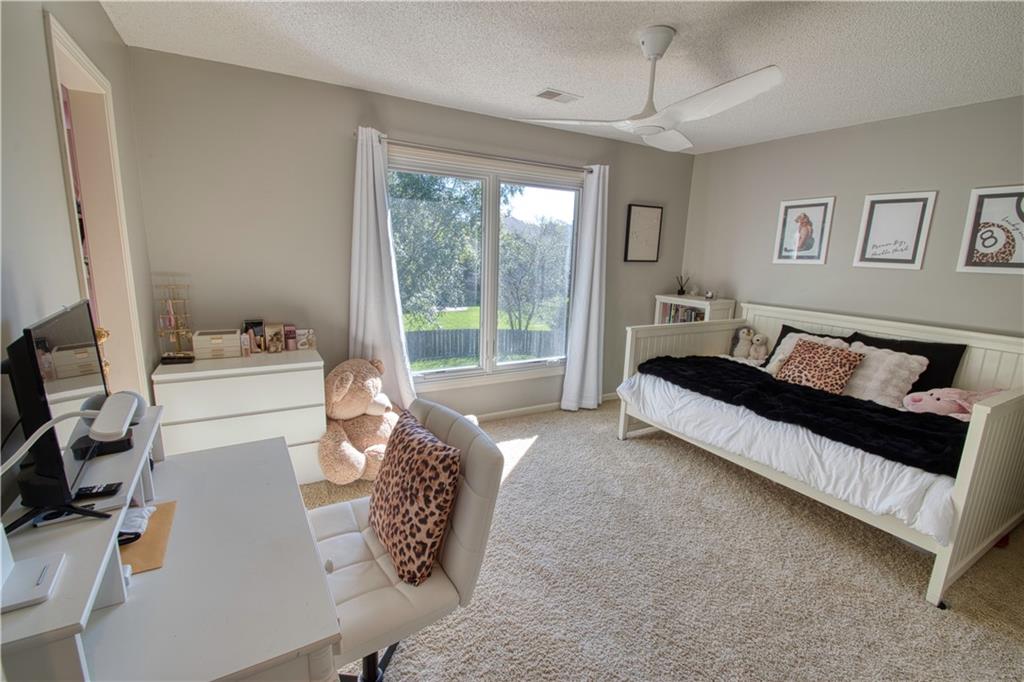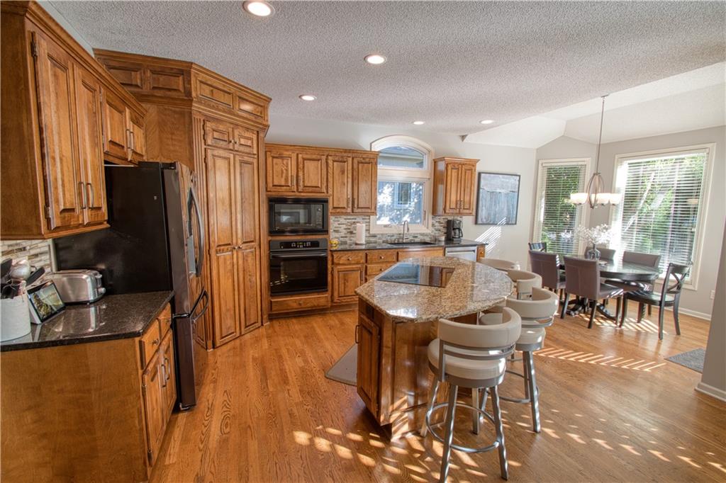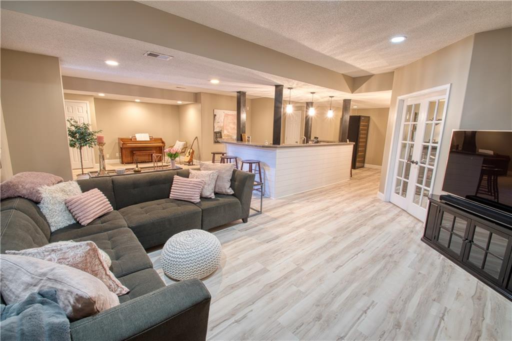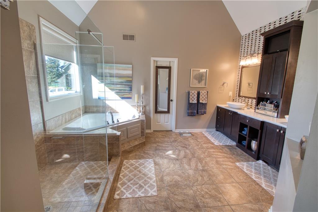 Stunning 1½-story home in the award-winning Blue Valley School District! The main-level primary suite offers a luxurious retreat with electric blinds, a spa-inspired bath and expansive walk-in closet. The soaring ceilings in the great room create a bright, open feel that flows seamlessly into the gourmet kitchen. The Kitchen features: granite countertops, beautiful cabinetry, large walk-in pantry perfect for cooking and entertaining. The finished basement adds incredible living space with a private office, workout room, bar area, and all-new LVP flooring throughout. Upstairs you have a gorgeous loft area and three bedrooms, all with adjoining bathrooms. Step outside to a spacious concrete stamped patio and custom fire pit ideal for outdoor gatherings and relaxing evenings. Other features include: New HVAC, Plantation shutters, Newer Fibrex windows though most of the home, New Water Heater, hardwood flooring, gas fireplace, mud room, laundry on main level, large wet bar. Ideally located on a dead-end street with little through traffic and near top-rated schools, shopping, and restaurants, this home blends elegance, comfort, and convenience in one exceptional package.