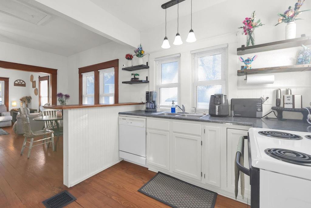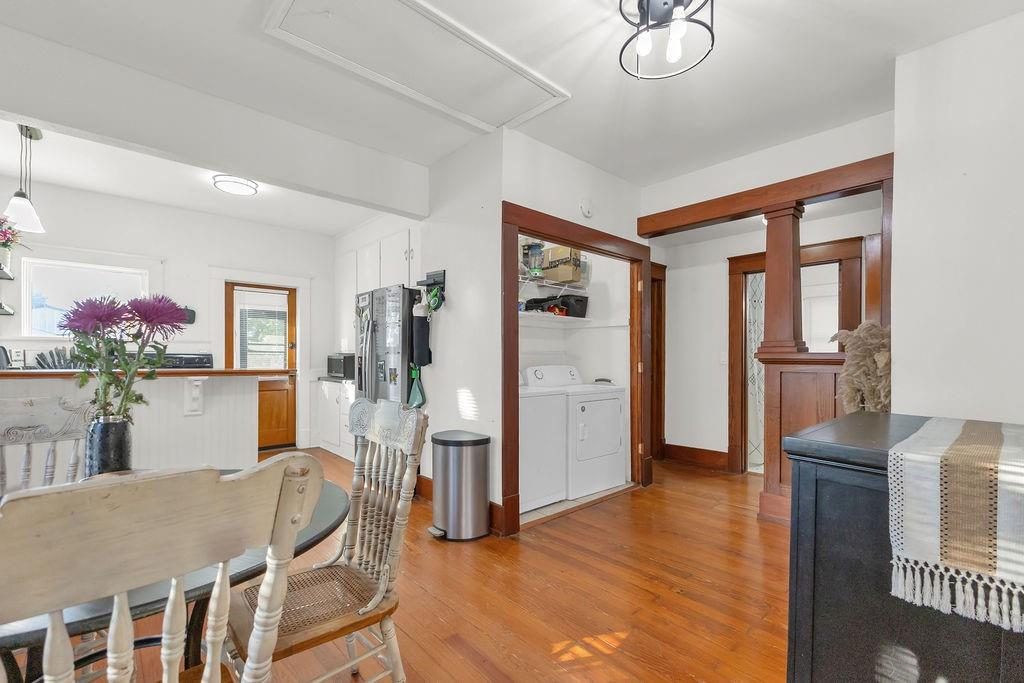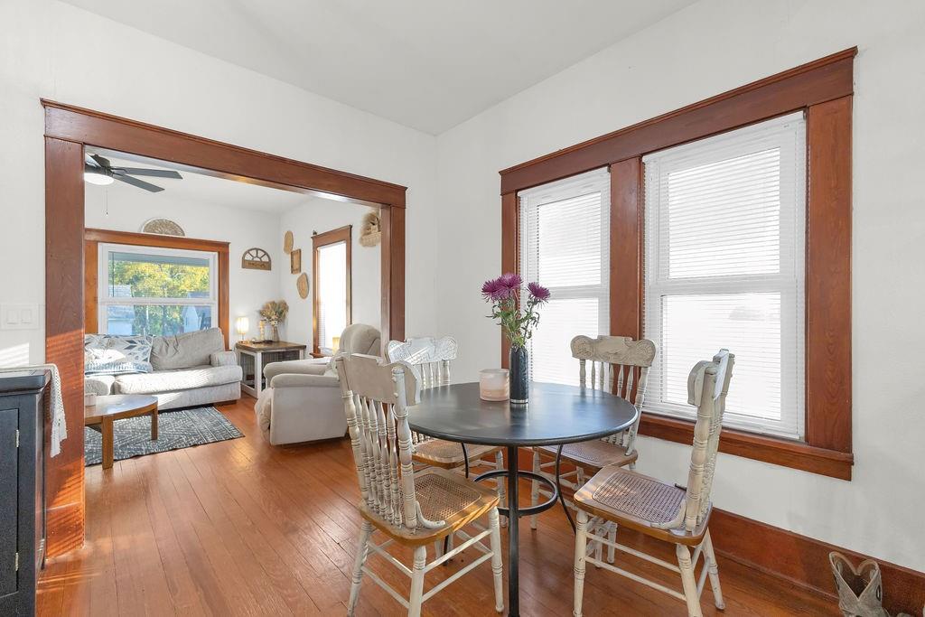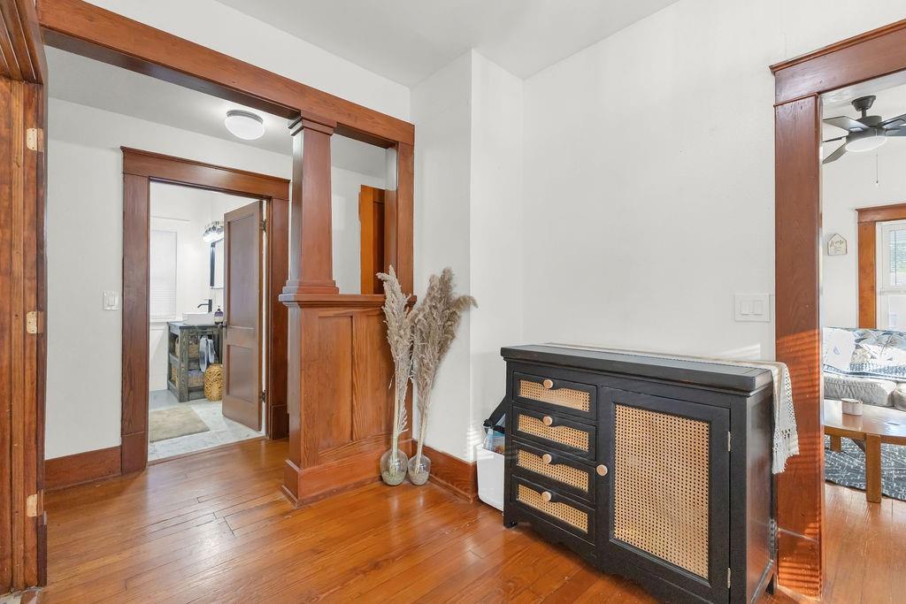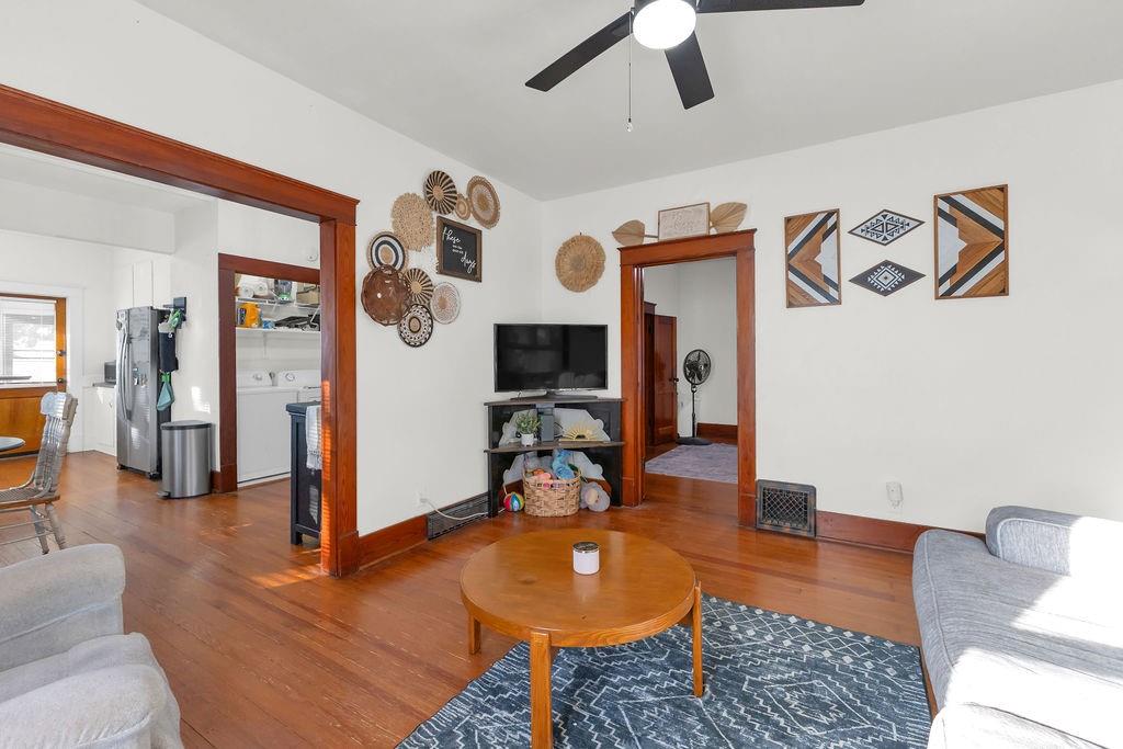 This gorgeous Craftsman home has been maintained with an incredible amount of pride of ownership!! You will be AMAZED with all the glory of the original and pristine woodwork that is so glorious of the era! It is throughout the home on the floors, trim and doors and makes such a statement! However it has the perfect blend of modern updates in the bathroom and kitchen where you want them the most! Roof and HVAC were replaced in 2019. Electrical and plumbing have also been updated. Spacious and level backyard is fenced and perfect for a young family or for your fur babies! And to round out this lovely home there are TWO outbuildings! PLENTY of storage with the buildings PLUS the basement! SO literally not a thing to do but move right in and enjoy!! The front porch is covered to enjoy these beautiful fall mornings/evenings from the front OR the back yard offers SO much space to set up a sitting area/fire pit area to enjoy! PLUS there is plenty of room to park several cars in the parking area behind the house!