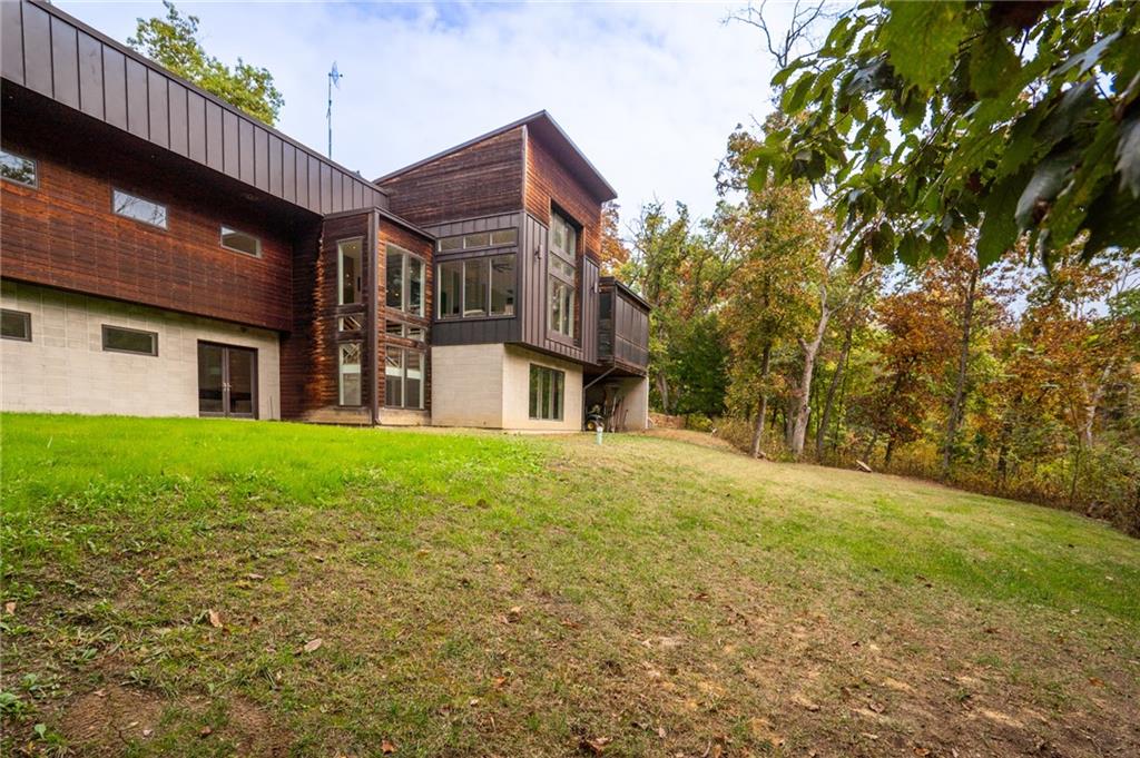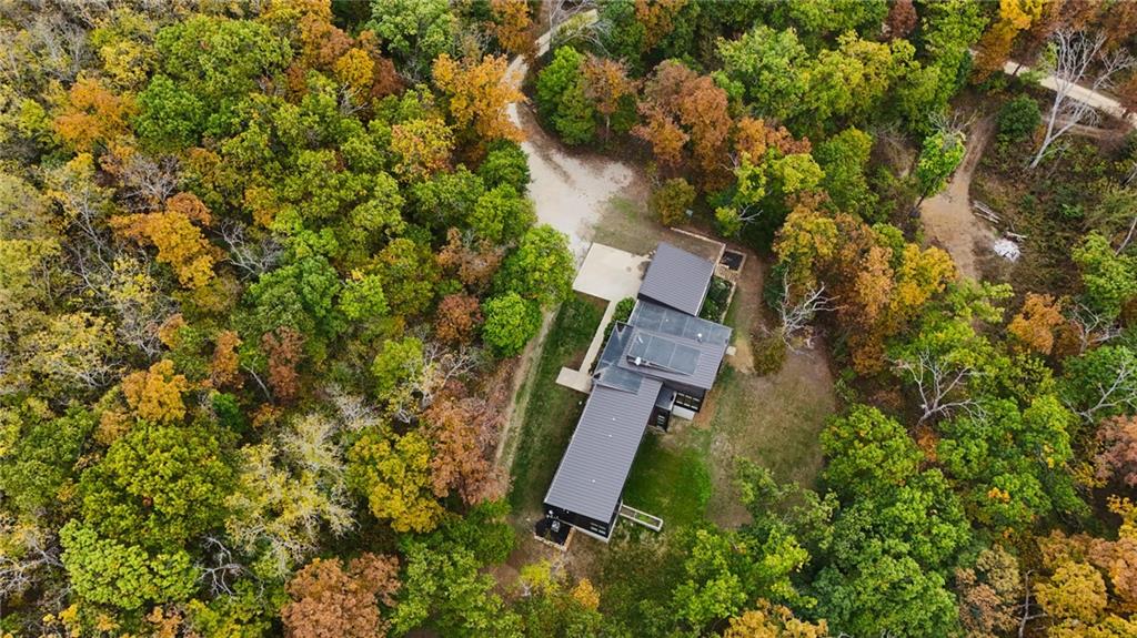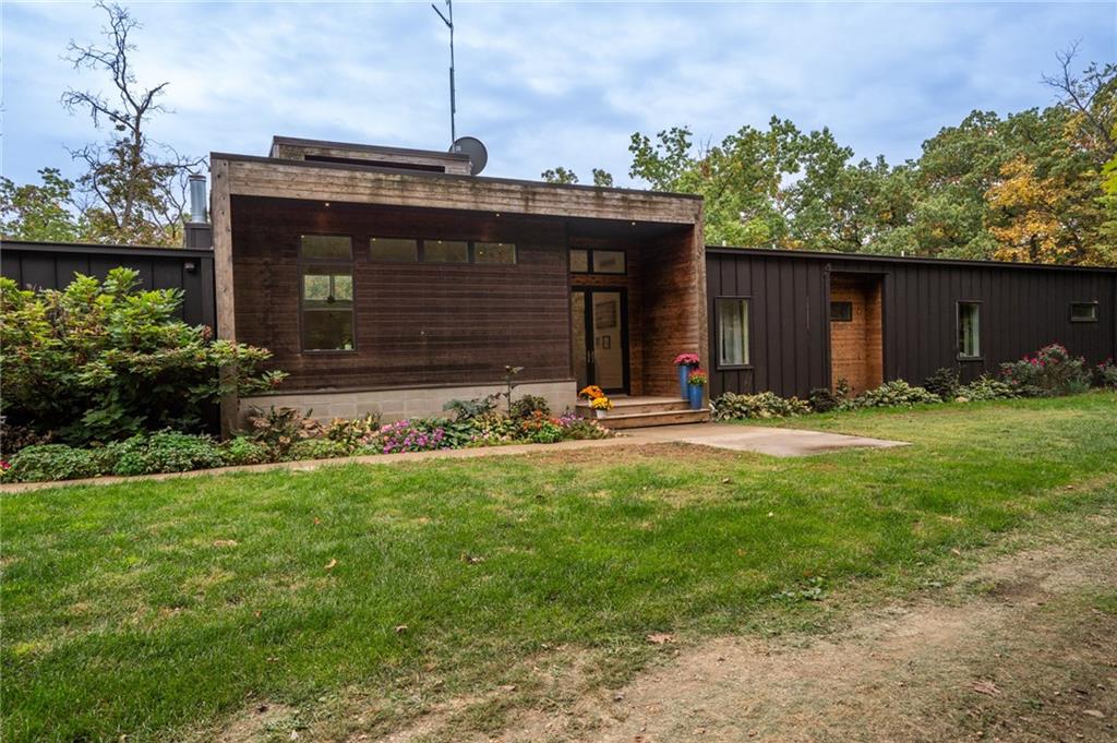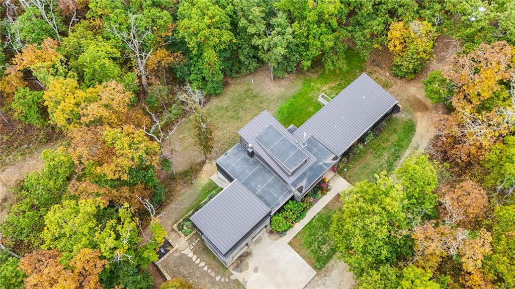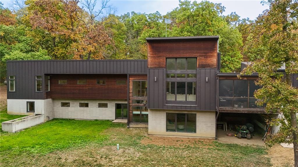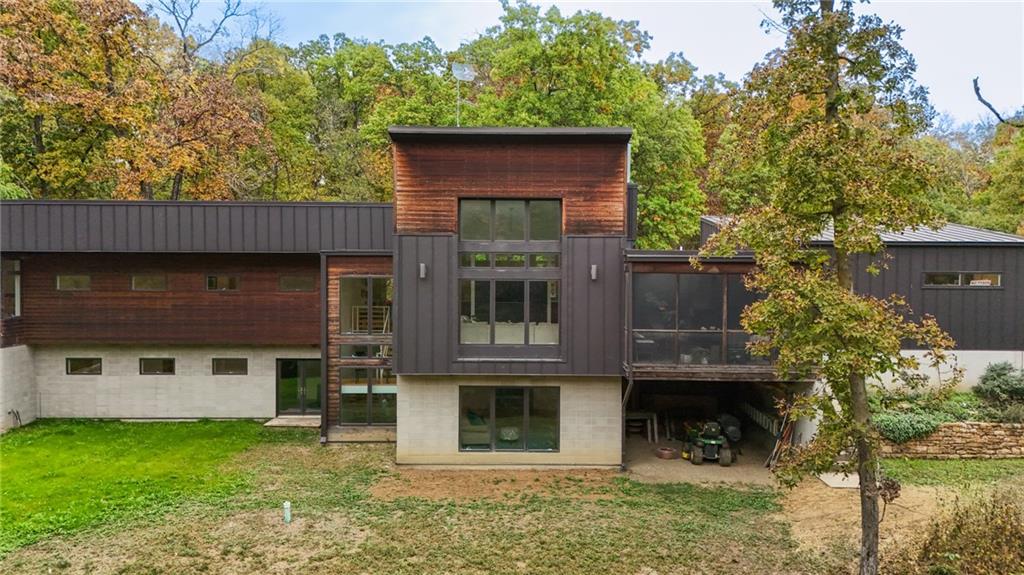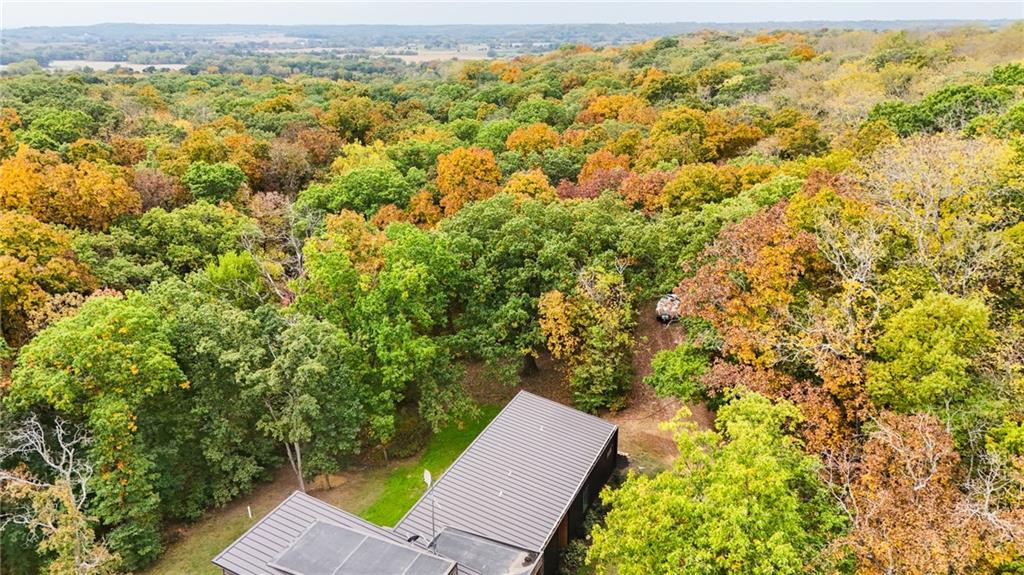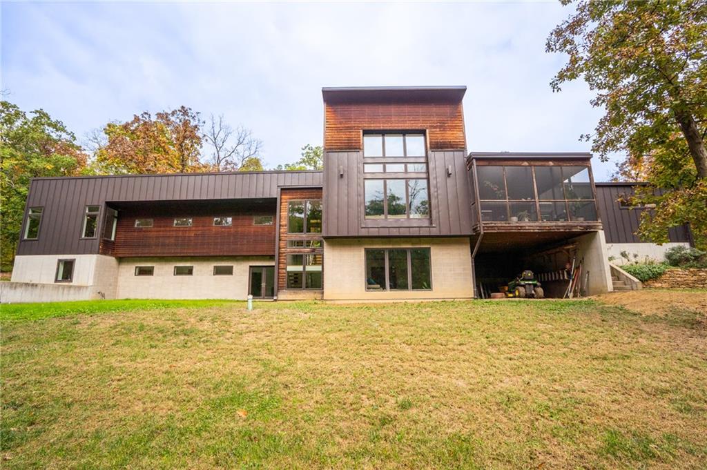 Nestled in to a lovely wooded hillside, close to Tonganoxie yet secluded and private, this lovely contemporary home sits on it's own 10acres. Modest seeming as you approach, entering the home brings an unexpected sense of openness and airy light. With soaringwindows looking out over the wildlife filled site, you will be taken by the beauty of both the home and the property. With a welcomingfoyer as your starting point, you'll move through the open kitchen and dining room, enjoying the proximity to the living room, and theaccess to the office and the screened porch. Down the well lit hallway are the generous bedrooms, with the whole first floor being bathedin light through the large window banks. Down the stairs to the finished basement leads you to more highly usable living area, with alarge rec-room, game nook, large wet bar and more. The fourth conforming bedroom anchors one end of the basement, with it's privatebath, and there's a non-conforming Craft room/ office as well. This lovely home and property are the perfect landing place for your nextadventure, be sure to schedule a viewing today!
