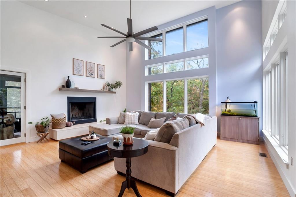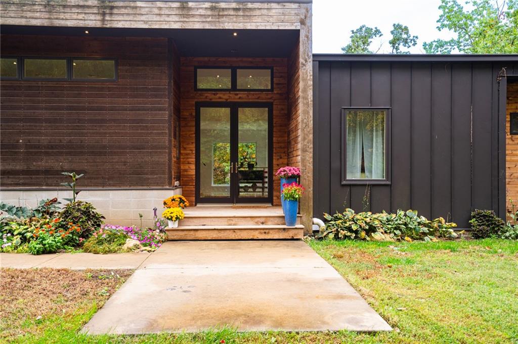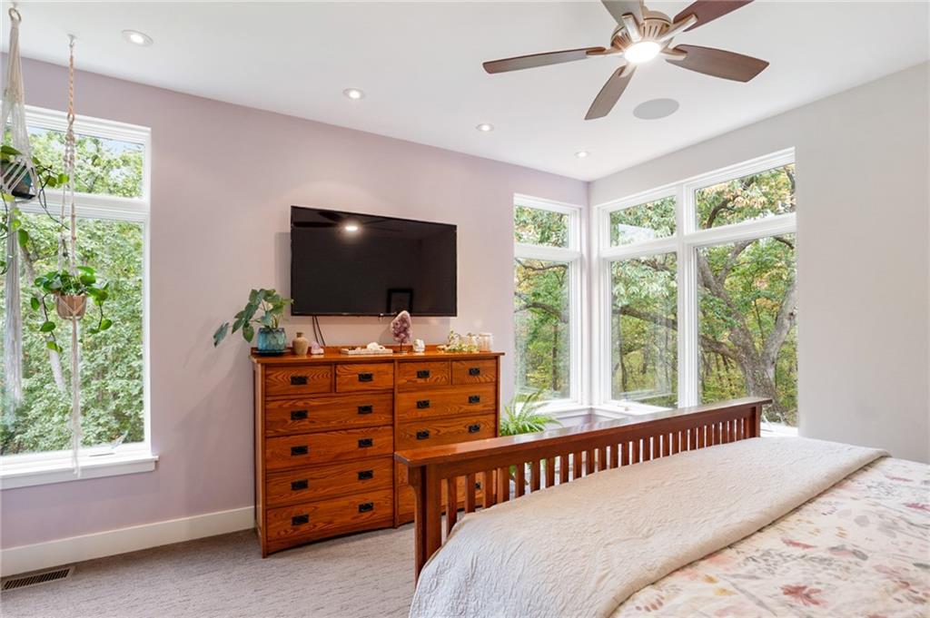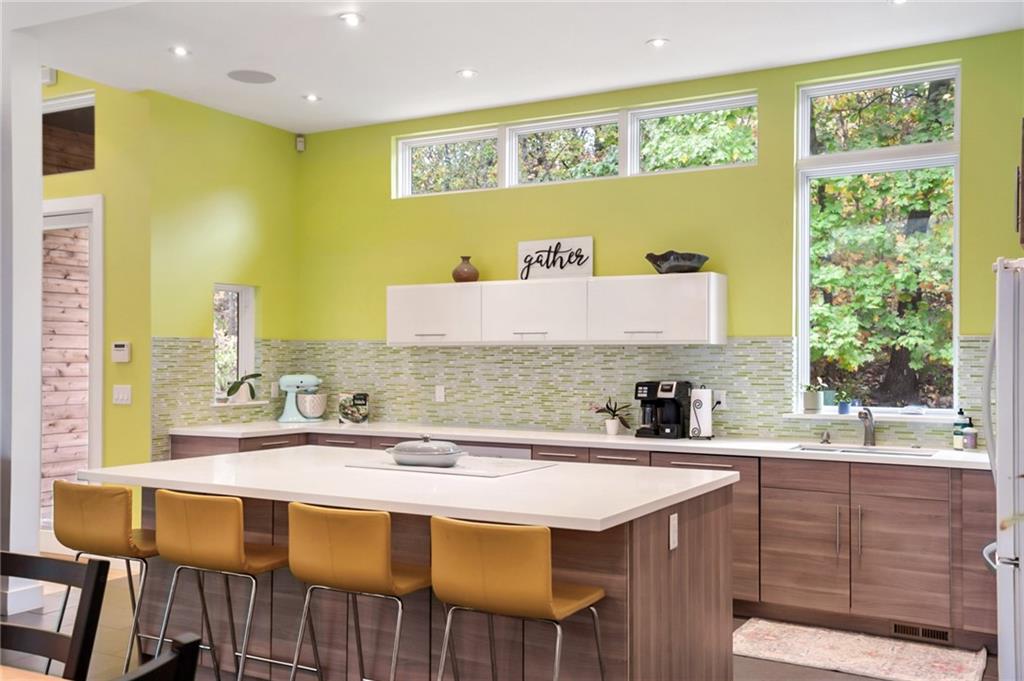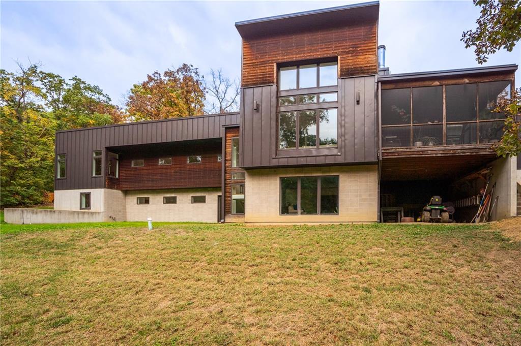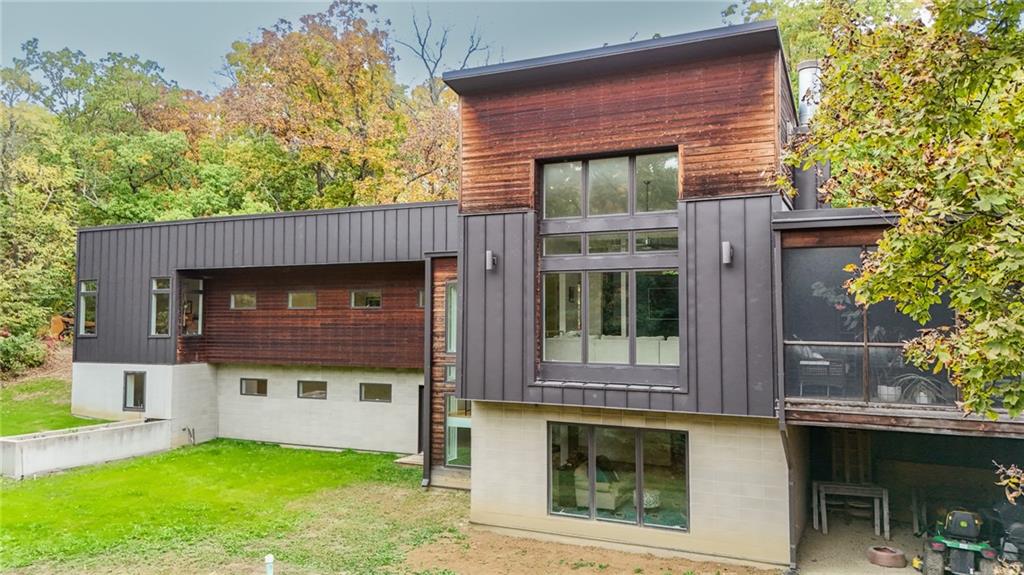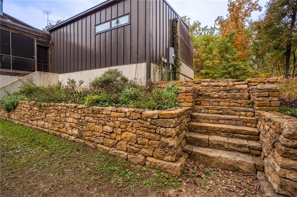 Nestled in to a lovely wooded hillside, close to Tonganoxie yet secluded and private, this lovely contemporary home sits on it's own 10acres. Modest seeming as you approach, entering the home brings an unexpected sense of openness and airy light. With soaringwindows looking out over the wildlife filled site, you will be taken by the beauty of both the home and the property. With a welcomingfoyer as your starting point, you'll move through the open kitchen and dining room, enjoying the proximity to the living room, and theaccess to the office and the screened porch. Down the well lit hallway are the generous bedrooms, with the whole first floor being bathedin light through the large window banks. Down the stairs to the finished basement leads you to more highly usable living area, with alarge rec-room, game nook, large wet bar and more. The fourth conforming bedroom anchors one end of the basement, with it's privatebath, and there's a non-conforming Craft room/ office as well. This lovely home and property are the perfect landing place for your nextadventure, be sure to schedule a viewing today!