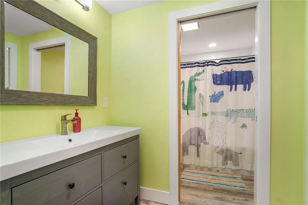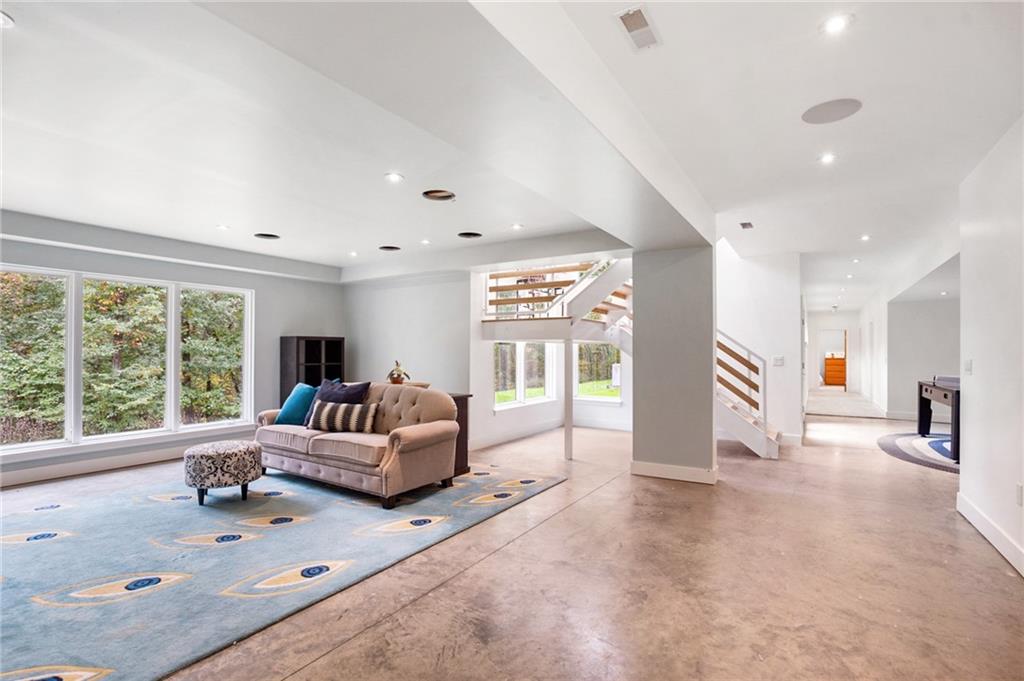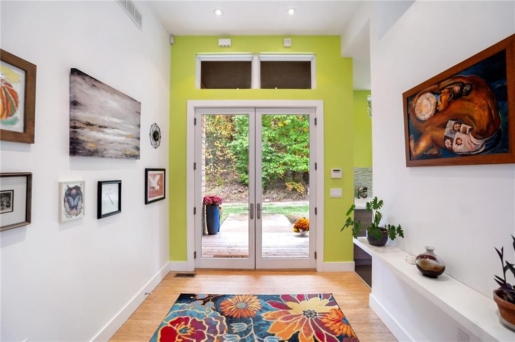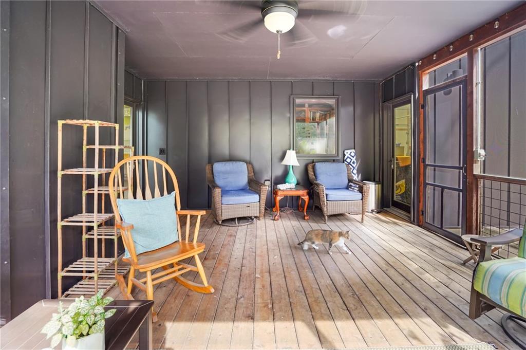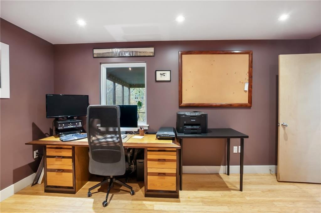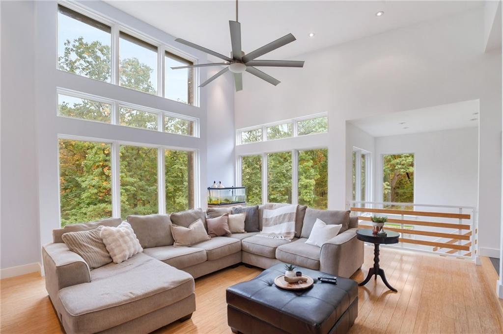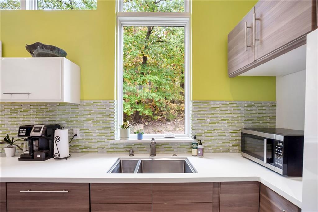 Nestled in to a lovely wooded hillside, close to Tonganoxie yet secluded and private, this lovely contemporary home sits on it's own 10acres. Modest seeming as you approach, entering the home brings an unexpected sense of openness and airy light. With soaringwindows looking out over the wildlife filled site, you will be taken by the beauty of both the home and the property. With a welcomingfoyer as your starting point, you'll move through the open kitchen and dining room, enjoying the proximity to the living room, and theaccess to the office and the screened porch. Down the well lit hallway are the generous bedrooms, with the whole first floor being bathedin light through the large window banks. Down the stairs to the finished basement leads you to more highly usable living area, with alarge rec-room, game nook, large wet bar and more. The fourth conforming bedroom anchors one end of the basement, with it's privatebath, and there's a non-conforming Craft room/ office as well. This lovely home and property are the perfect landing place for your nextadventure, be sure to schedule a viewing today!