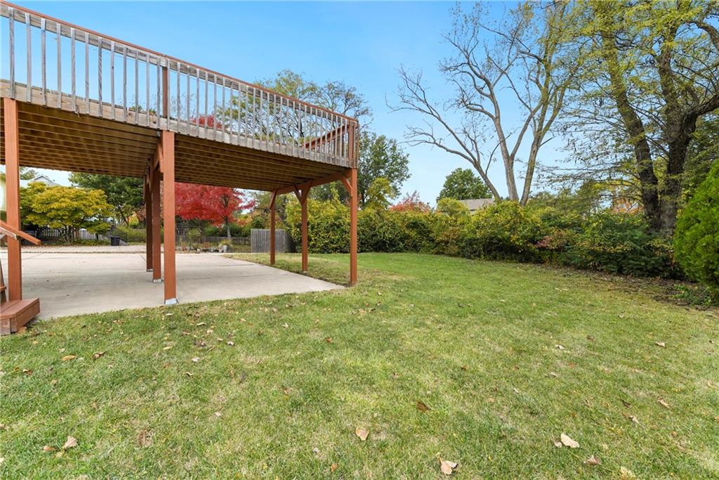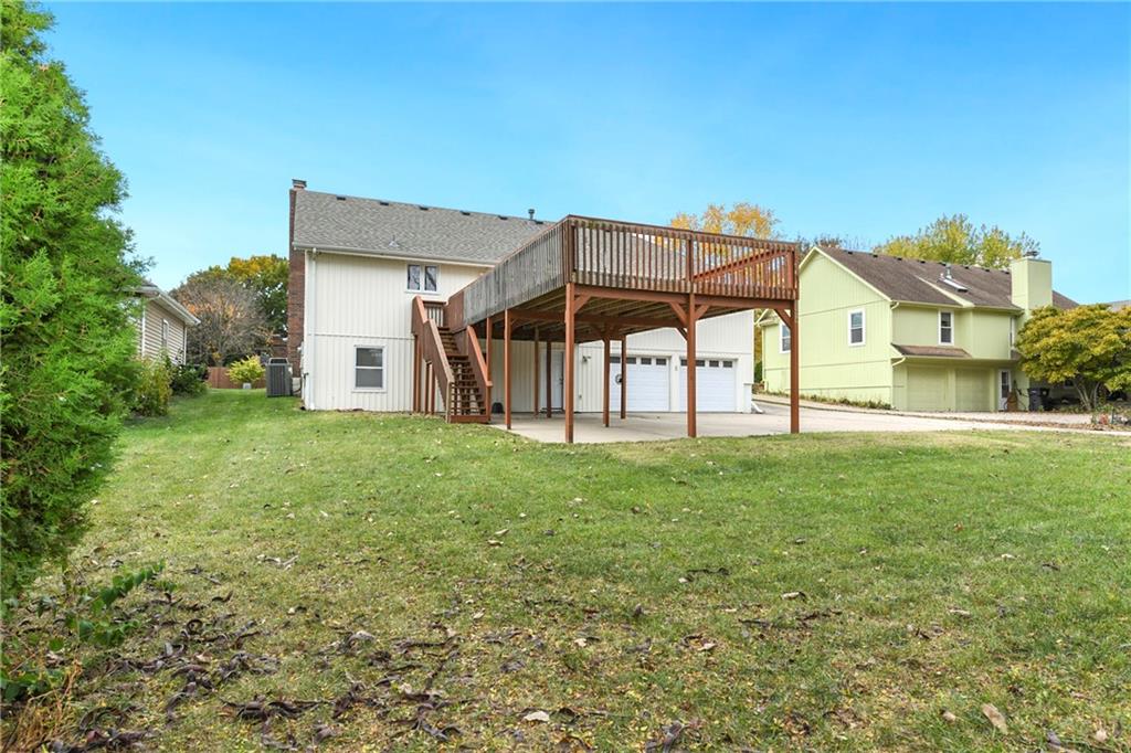Welcome home!! Here's the perfect property in a great location in Lee's Summit you've been looking for! Raised ranch with some unique features and updates you'll love! There's plenty of space for your visitors to park with an expanded deck with 3 carports underneath and 2 car garage in back. For easy access and few steps, the front circular drive is a great addition. Upstairs, you'll find a spacious kitchen, laundry, living and dining areas with 3 bedrooms and 2 baths. Enjoy the living room fireplace for cozy, colder evenings and coffee or meals on the deck during the warm months! Downstairs, an additional bathroom, non-conforming bedroom (with fireplace), and living room provide a separate living space, complete with a walkout to the backyard with private greenspace and direct access to the spacious garage (with HVAC). Newly repainted, new flooring, added deck support and a one year old roof with transferable warranty make this raised ranch move-in ready just in time for you to move in by the holidays and make this house your home!