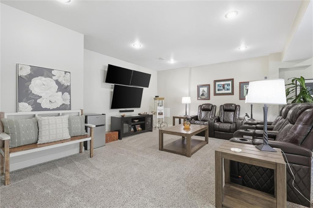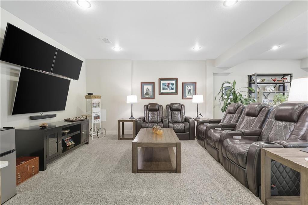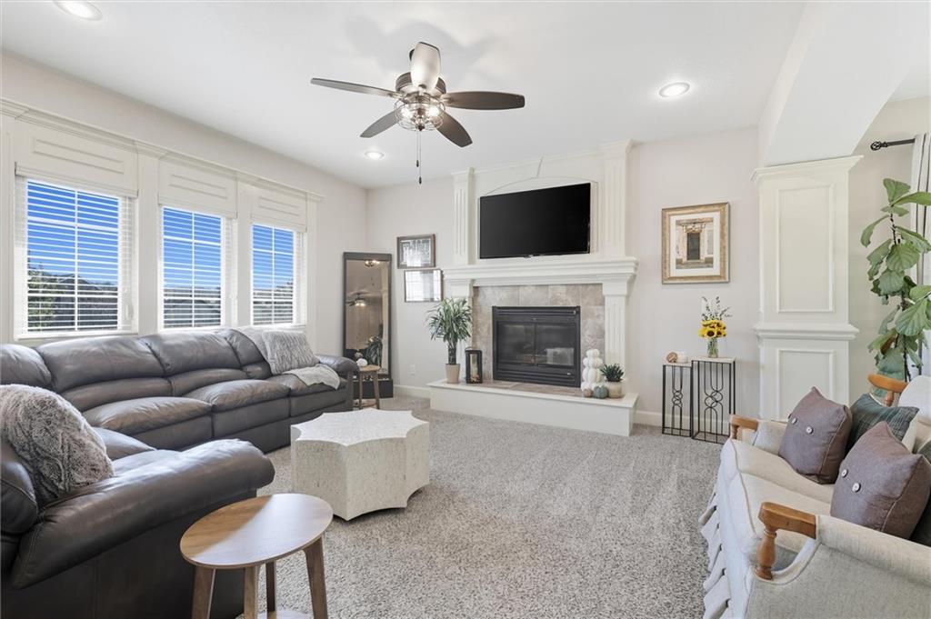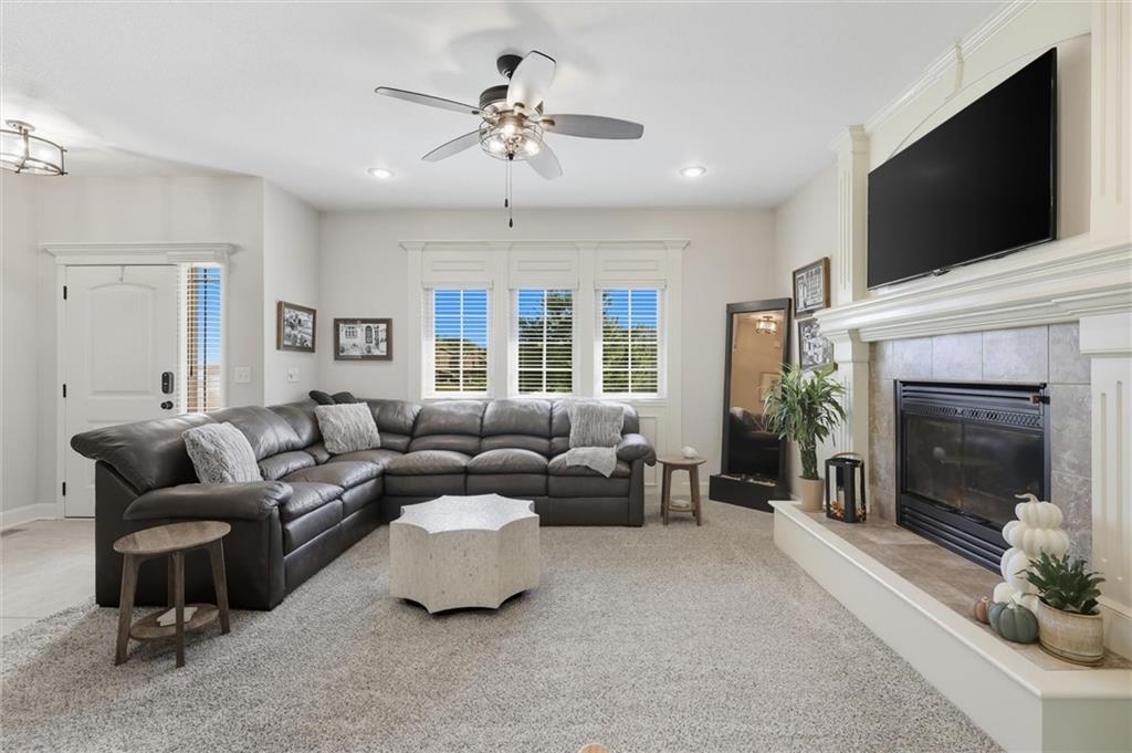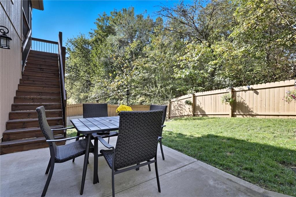 Spotless and exceptionally well-maintained 2-story home in the highly desirable Platte County School District! The open-concept floorplan is perfect for entertaining and everyday living. The spacious great room features a fireplace with raised hearth, surrounded by an elegant trim package and abundant natural light. The kitchen showcases granite countertops, a breakfast bar, stainless steel appliances, and a walk-in pantry, a perfect blend of beauty and function. Adjacent dining space flows effortlessly to the living area for seamless gatherings. Upstairs, a landing office nook offers a convenient workspace or study area. The spacious master suite features double vanities, a walk-in shower with dual shower heads, and a huge walk-in closet. The large laundry room is also on the bedroom level and includes built-ins and a sink for extra convenience. Bedrooms 2 and 3 Share a Jack and Jill bath The walk-out lower level is the ideal man cave, rec room, or guest space, complete with soaring ceilings and a full bath. Enjoy outdoor living on the screened, covered deck overlooking the treed lot and privacy-fenced backyard. Deck stairs lead to the lower-level patio, providing multiple outdoor entertaining options. The beautiful landscaping enhances curb appeal, while the epoxied garage floor adds a clean, finished look. Mounted TVs stay! Pride of ownership is evident throughout this one is truly move-in ready!
