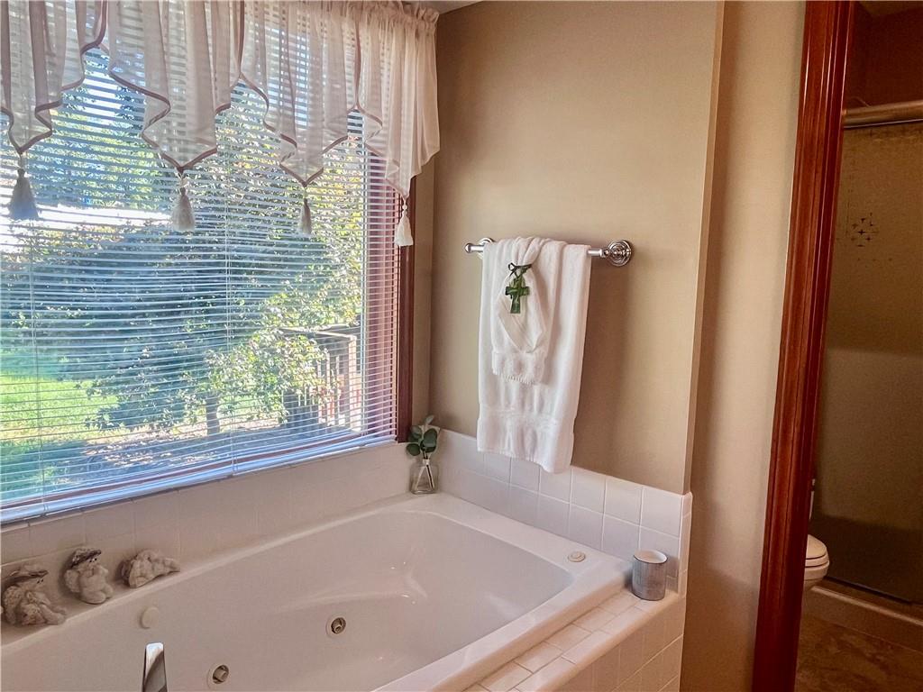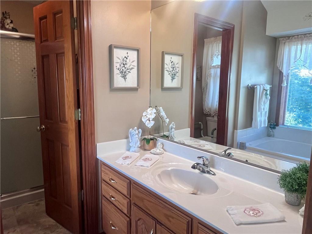 This is NOT your typical split entry and WOW does pride of ownership show throughout the VERY well cared for one owner ALL BRICK custom built home perfectly situated on a nice cul-de-sac fenced lot in a wonderful subdivision close to highway access and so many conveniences. This home offers the perfect blend of comfort, style and functionality! Step inside to a large tiled entryway then up to the spacious living room and updated kitchen that offers TONS of cabinets and counter space, a breakfast bar, beautiful granite countertops, a gorgeous stone/tiled backsplash gleaming hardwood floors and a huge dining/hearth area with a see through fireplace from the dining into the living room. The perfect space for everyday living and entertaining. The very generous sized master suite has a nice vaulted ceiling, ceiling fan and a large walk-in closet, jetted tub and separate shower in the bath. Bedrooms 2 and 4 also have walk-in closets. Newer carpet throughout. Nicely finished handicap accessible, walk-out basement with a 4th bedroom, large full bath and an additional family/entertainment room. Roof is approximately 5 years new and HWH 4 years. A must see!