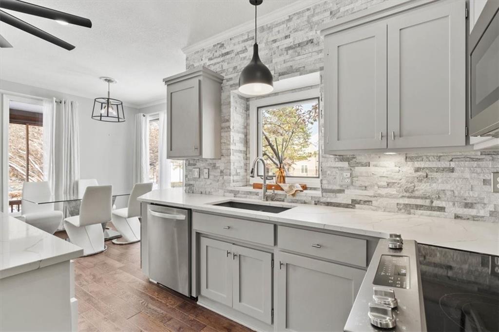 Welcome home to this exceptional reverse 1.5-story stand-alone patio villa on a quiet cul-de-sac in the popular Deer Creek Courts community. This villa offers easy main-level living with soaring ceilings and large windows that bring in abundant natural light. The living room has remote-controlled window coverings and a cozy two-sided fireplace that opens to the kitchen area. The updated eat-in kitchen includes granite countertops, newer appliances, beverage fridge and ample cabinet space. Off the main living area, enjoy the screened-in porch and a private patio surrounded by beautiful landscaping—perfect for relaxing or hosting a gathering. The main-level primary bedroom suite includes an attached bath with a walk-in shower, separate soaking tub, double sinks, and a generous walk-in closet. The finished lower level adds a nice-sized family/rec room, two additional bedrooms, a full bath, and an unfinished storage area with custom shelving. Other features include new living room and kitchen floors, main-level laundry, and a 2-car garage with built-ins. The HOA takes care of mowing, snow removal and trash removal. Great location close to shopping, restaurants, and easy highway access.
