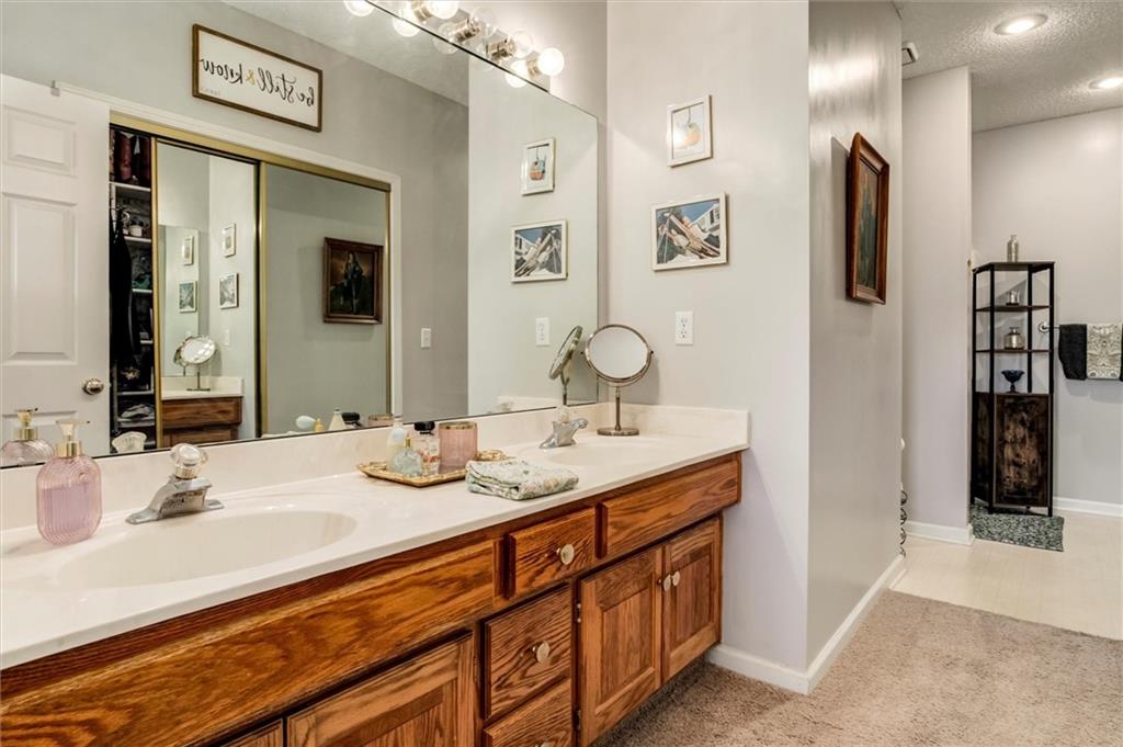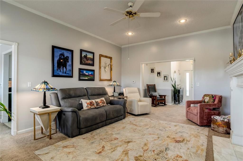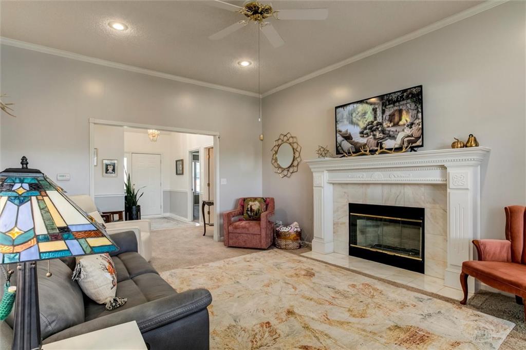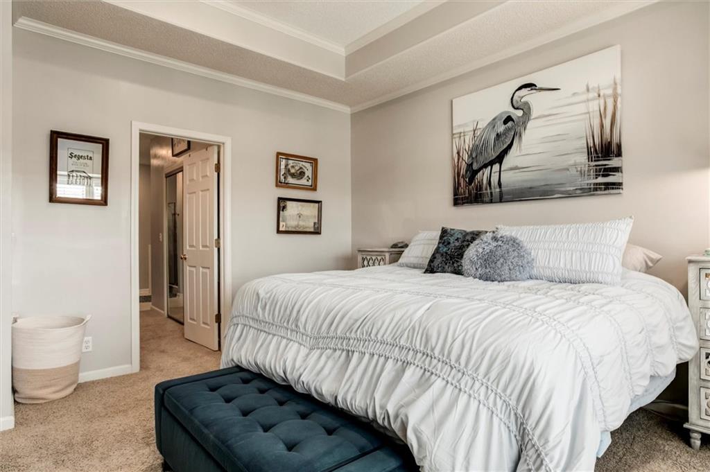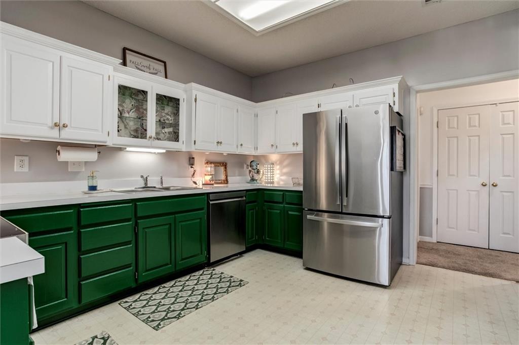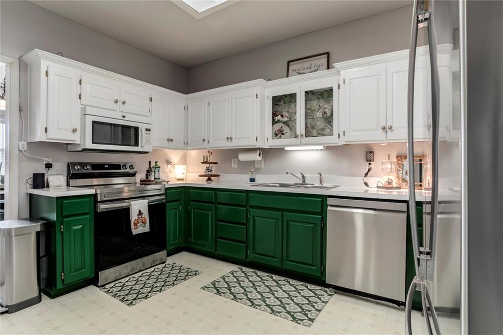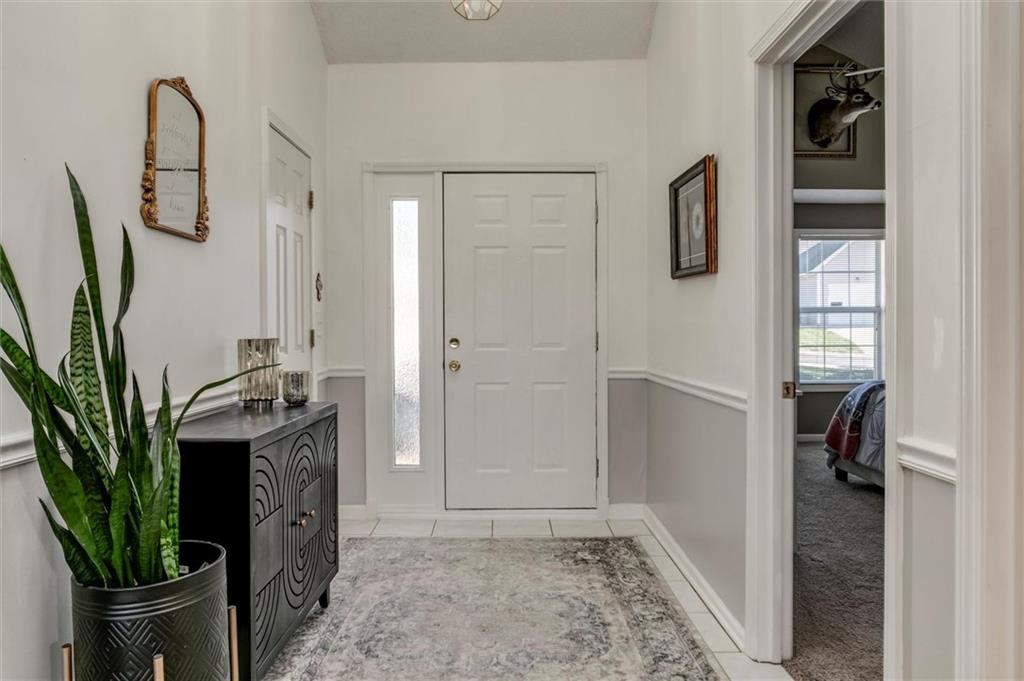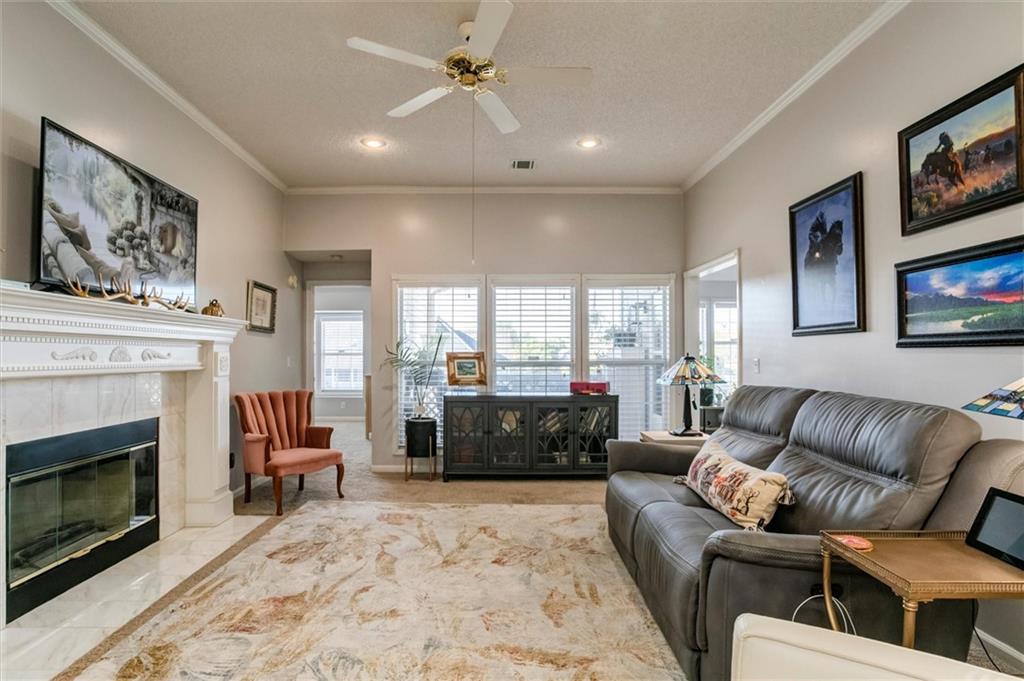 Drastically reduced! Maintenance-Free Living at Its Best! Enjoy effortless living in this beautifully maintained ranch home perfectly located with an attached garage, covered deck, and a partial lake view. The open floor plan features spacious rooms, neutral décor, and abundant natural light throughout. A welcoming vaulted, tiled entry opens into a bright living room with a cozy gas fireplace, ideal for relaxing or entertaining. The fully applianced kitchen offers extensive cabinetry, generous counter space, and room for casual dining—or host guests in the formal dining room. The primary suite is a true retreat, showcasing a coffered ceiling with fan, an en-suite bath with dual vanities, separate tub and shower, and a walk-in closet with custom shelving and split rods. The second bedroom overlooks the front yard and features a vaulted ceiling and large closet. Additional highlights include a large pantry, laundry room with washer and dryer, and convenient access to the basement featuring a finished flex room—perfect for a den, hobby space, or workshop—plus ample storage. Set within a well-managed community, residents enjoy outstanding amenities including a clubhouse with party room, in-ground pool, walking paths, and a scenic lake with catch-and-release fishing. The HOA covers all exterior maintenance—roof, lawn care, landscaping, snow removal, water, and exterior insurance—for true, maintenance-free living.