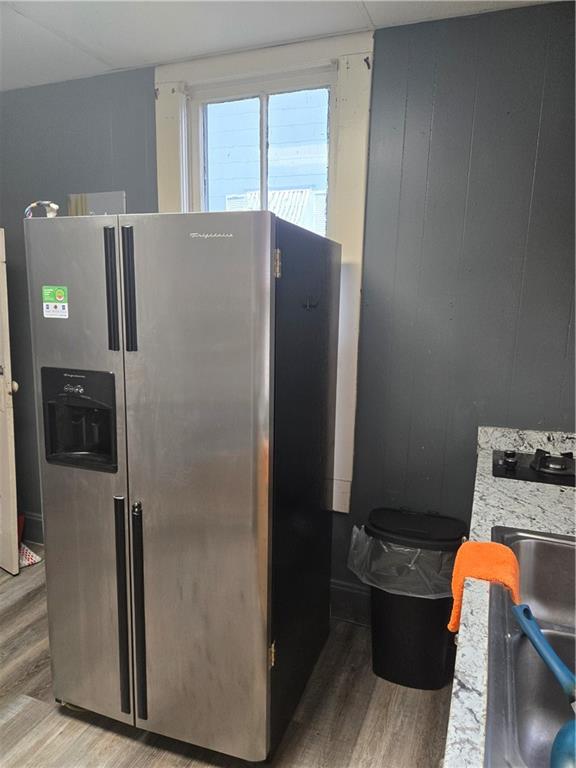 Investors - take notice! This home has living quarters upstairs, and another living quarters down stairs. Each space has a bedroom, kitchen, bath and laundry. Large lot that is all fenced in with carport in the back for off street parking!