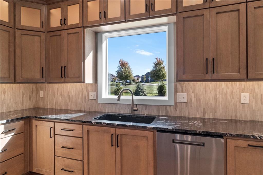 IMMACULATE NEARLY-NEW RANCH - this stunning home, less than a year old, blends modern upgrades with effortless style. Featuring 3 spacious bedrooms and 2.5 bath, the open-concept layout is filled with natural light from large Pella windows and high ceilings throughout. Enjoy designer touches like upgraded, highly figured granite countertops, maple kitchen cabitnets with over-and-under-lighting, and a feature wall in both the living room and primary suite. The kitchen boasts top-tier appliances (upgraded GE Profile Refrigerator and Dishwasher) perfect for entertaining or every day luxury. Relax by the gas fireplace or step outside to a covered patio overlooking a beauitfully landscaped yard with additional trees, landscaping and a fenced in backyard. Smart conveniences include remote-controlled shades in the living room and primary bedroom, plus pull down shades in the guest rooms. The lower level can be finished to meet your needs if you need extra space. With thoughtfull upgrades inside and out, this home is truly move in ready - nothing to do but unpack and enjoy.