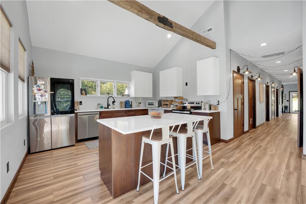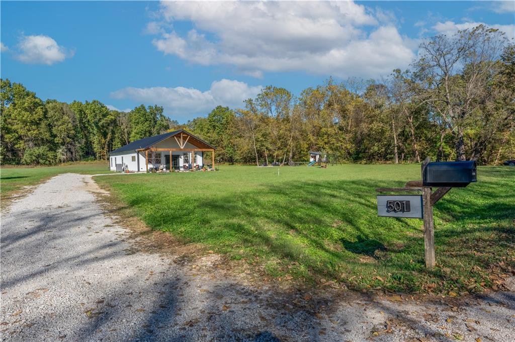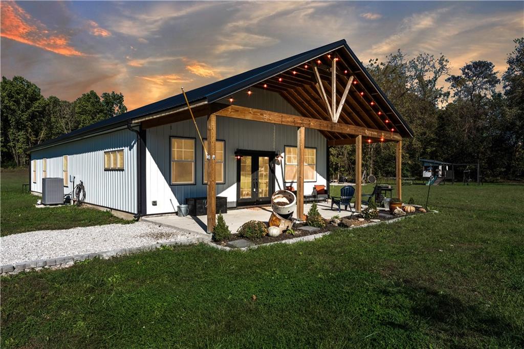 Just North of Warrensburg in the most desirable area of Johnson County, you will find a newly constructed (2023) ranch home on 5 acres of rolling green space, wooded hunting ground, and explorable creek! This farmhouse style home has modern finishes, wood beams, and thoughtful details. It was built with intention! Four spacious bedrooms and 2 large bathrooms, lofted space for additional room, and an open + vaulted kitchen and living space, a lovely covered front porch. There is plenty of space to add a garage or numerous outbuildings. The property is in the Hazel Hill area with a recreation lake nearby and close to land conservation efforts. This is truly a gem of a property - you will want to see it!