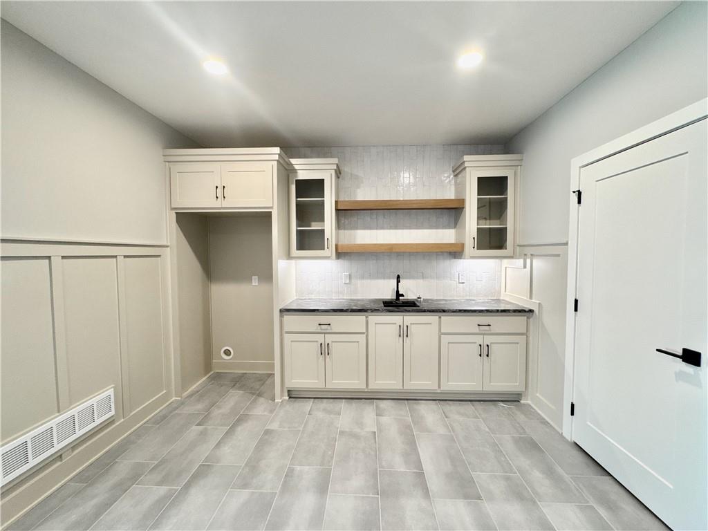 The Woodland — an exquisite reverse 1.5-story home that perfectly blends timeless craftsmanship with modern elegance. Ideally situated on a beautiful corner lot, this home offers extra space, curb appeal, and an abundance of natural light throughout. From the moment you step inside, you’re welcomed by an open-concept layout centered around a striking floor-to-ceiling fireplace — a stunning focal point for gatherings large or small. The gourmet kitchen impresses with an expansive island, oversized prep pantry, and designer finishes that make both everyday living and entertaining effortless. The main level features two bedrooms and two full baths, including a serene primary suite with hardwood floors, private access to the covered deck, and a spa-inspired bath complete with a freestanding tub, walk-in tiled shower, and dual quartz vanities. The spacious primary closet connects conveniently to the laundry room, finished with custom cabinetry and stone countertops. The finished lower level provides the perfect retreat — complete with a generous rec room and wet bar ready for a full-size refrigerator, a private guest suite, and two additional bedrooms sharing a stylish full bath. With 5 bedrooms, 4 baths, and elegant finishes throughout, The Woodland offers the ideal balance of beauty, comfort, and functionality — all nestled on a desirable corner lot that enhances its charm and livability.