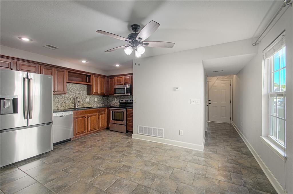 Welcome to this beautifully maintained townhouse located in a highly sought-after school district! This move-in-ready home offers 3 bedrooms, 2.5 baths, and a spacious floor plan designed for comfortable living. The large primary suite features a private ensuite bath, while two additional bedrooms provide plenty of space for family, guests, or a home office. The open kitchen includes stainless steel appliances and opens to the cozy living room with a fireplace—perfect for relaxing evenings. Enjoy maintenance-free living with community amenities such as a pool and clubhouse, walking trails, play area, and fitness room. Step outside to your fenced-in patio backing to trees—offering privacy with no neighbors directly behind. Major updates add peace of mind: new outdoor A/C unit September 2025, new indoor furnace and air handler installed May 2023, new carpet November 2023, new living room flooring installed in 2024, new washer 2022, new dryer May of 2025, new dishwasher 2022, new refrigerator in December of 2024, new water heater 2021 & several rooms and trim has been recently painted!! Conveniently located near highways, shopping, and dining, this home offers both comfort and convenience in one ideal package!