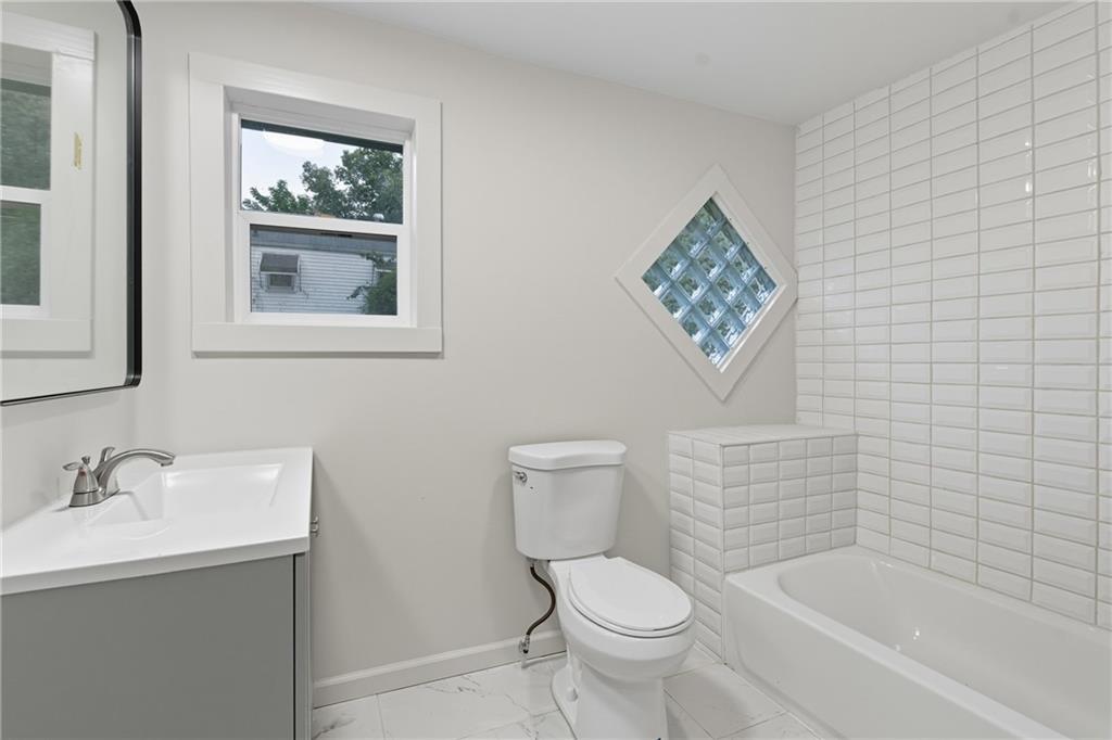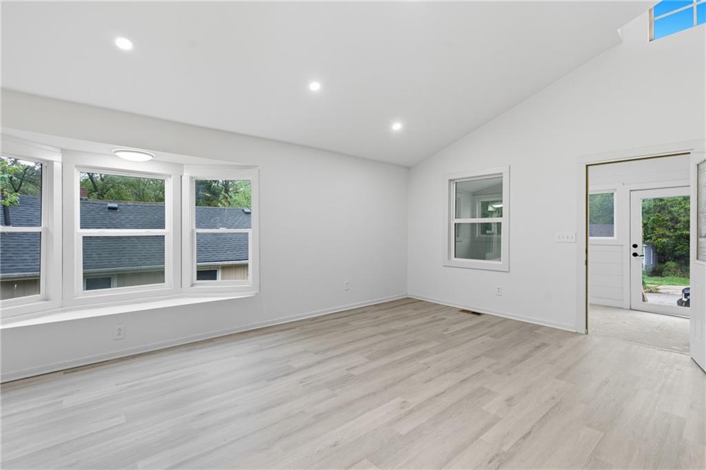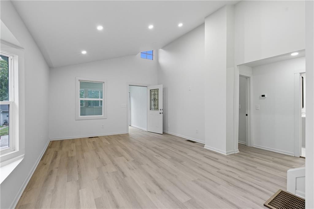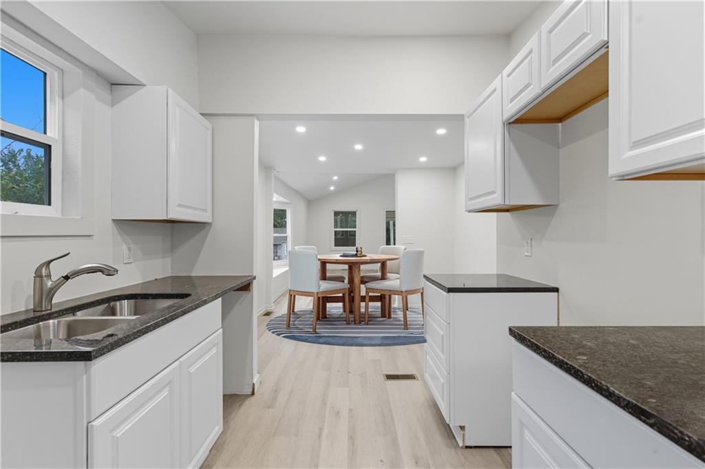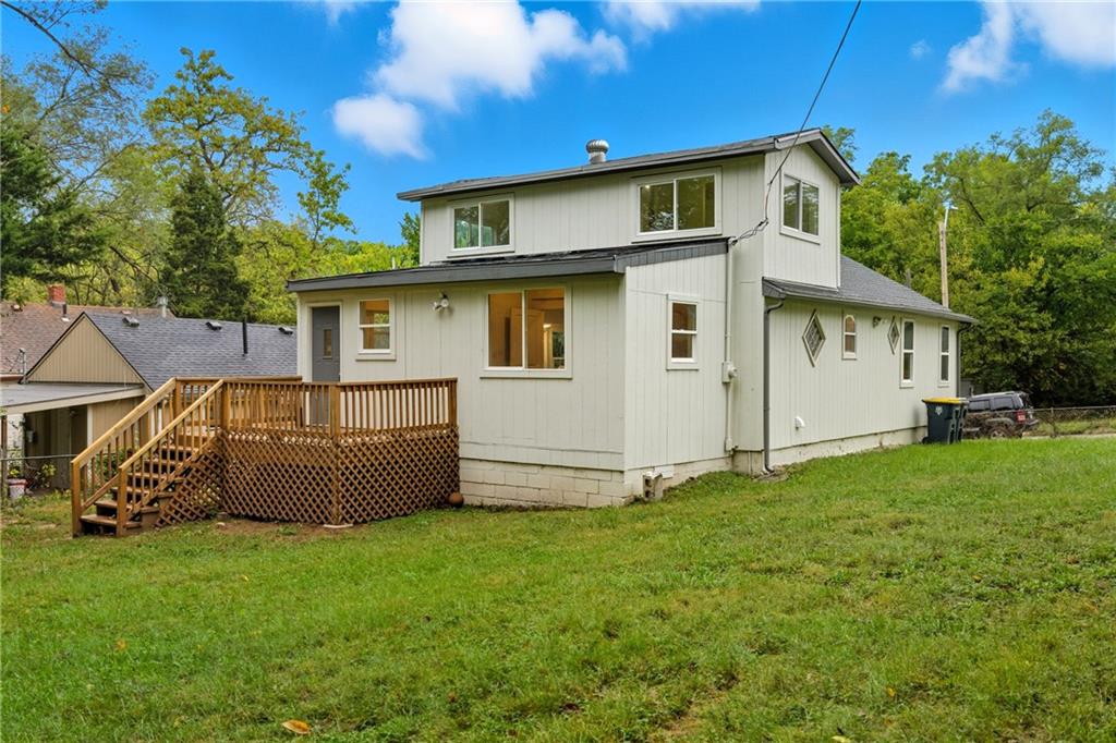 Completely Rebuilt New Modern Home This stunning 3-bed, 2-bath home on a ¼-acre double-lot bonus offers the feel of new construction at an incredible value. Rebuilt from the studs up, it features brand-new roof, siding, HVAC, plumbing, electrical, energy-efficient windows, doors, walls, water heater, and flooring—every detail refreshed for long-term comfort. Step inside to a modern open-floor-plan design filled with natural light and a large new bay window with seating. The vaulted ceilings and recessed LED lighting create spaciousness, while the new flooring ties every room together with warmth and style. The large living and dining area flows into a bright kitchen with granite countertops, all-new cabinetry, and a layout ideal for gatherings and everyday living. Both bathrooms are fully rebuilt with designer tile, modern fixtures, and all-new plumbing. The primary bath offers a walk-in shower, while the second bath includes a deep soaking tub for relaxation, modern Laundry for a washer and dryer with ready hookups. Three generous bedrooms feature new walls, trim, and doors—each designed for comfort, privacy, and restful nights. Two bedrooms with vaulted ceilings are on the main floor, one large bedroom and a separate play area are upstairs. The enclosed sun porch brings the outdoors in, surrounded by large windows that flood the space with light year-round. A new deck overlooks a lush green lawn, ideal for barbecues, play, or gardening. The ¼-acre double lot provides rare outdoor space for expansion or a future garage. A new concrete-floor basement offers clean storage, a workshop, or gym potential. With every major system replaced, this home delivers modern efficiency, low maintenance, and complete peace of mind. Conveniently located near downtown, parks, it combines quality craftsmanship with neighborhood charm—a bright, open, move-in-ready home that truly feels brand new.