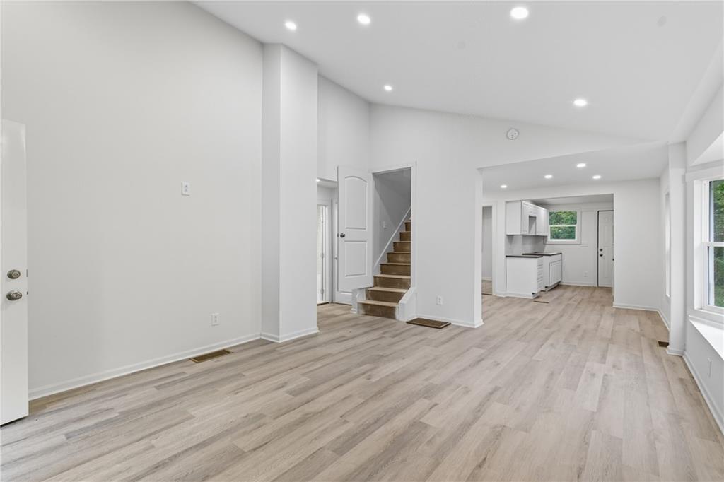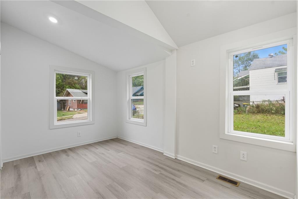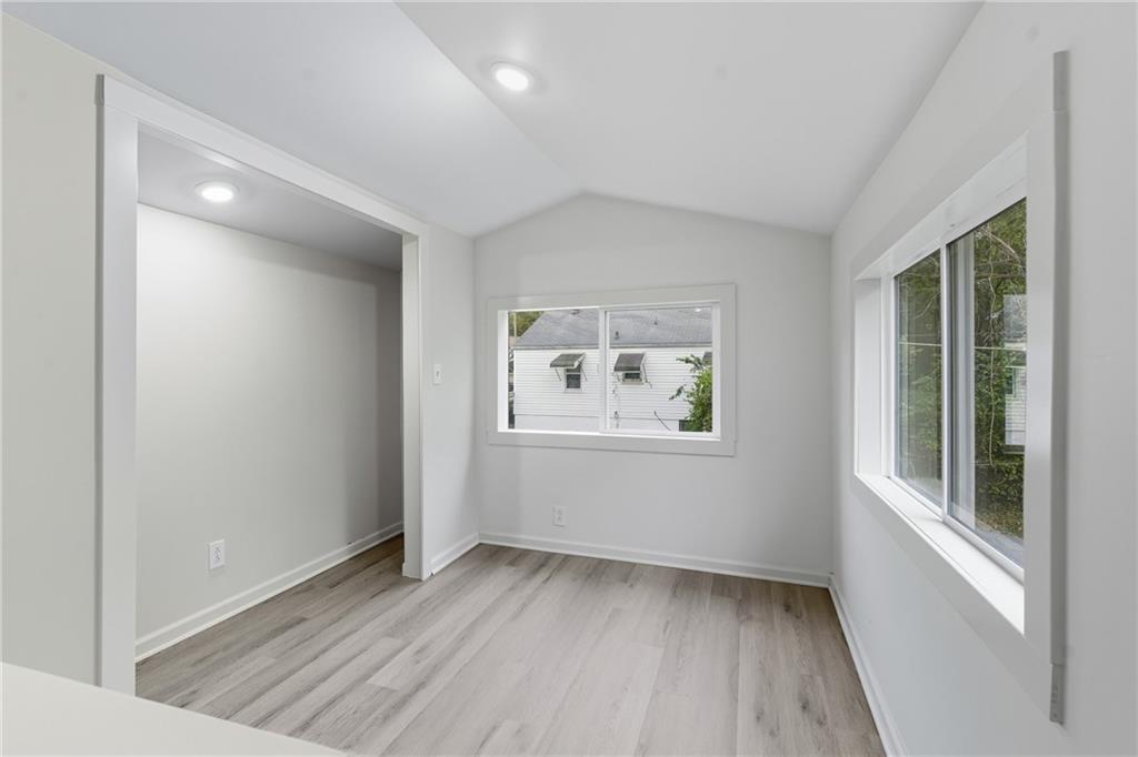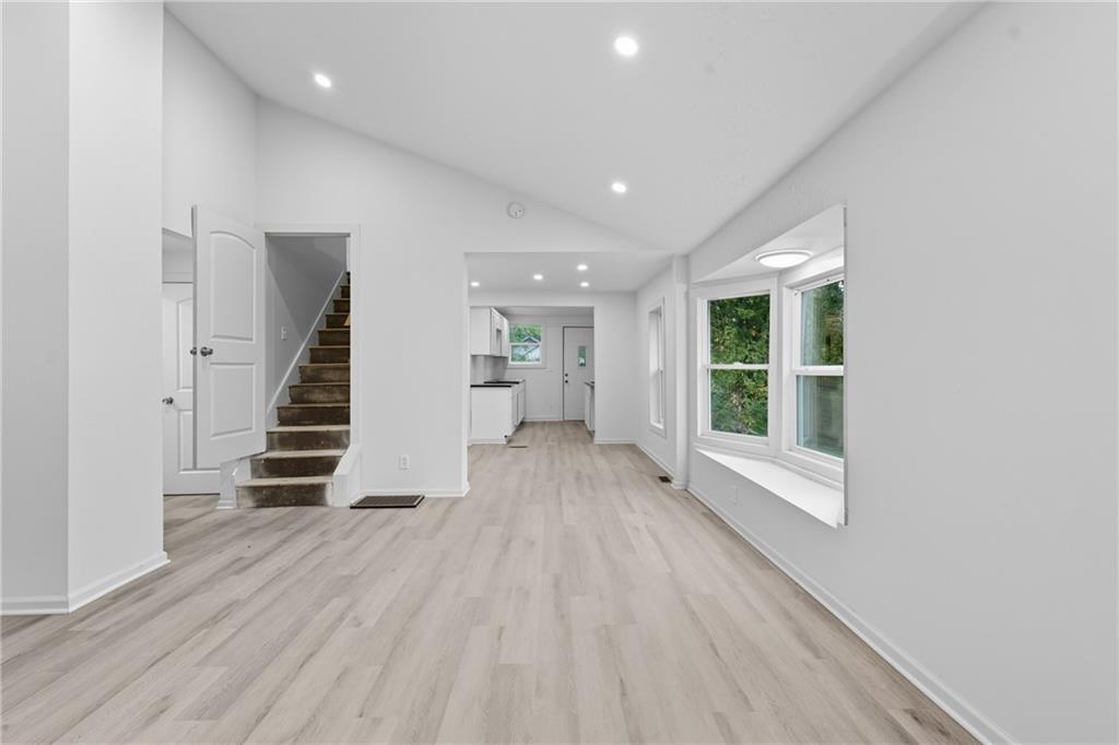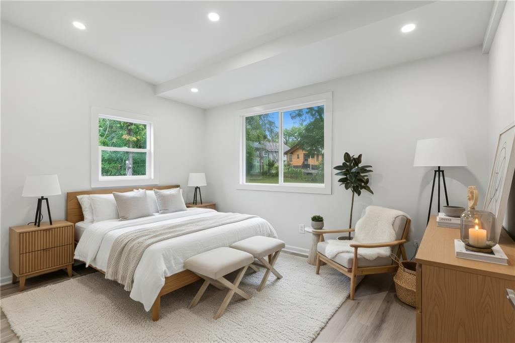 Completely Rebuilt New Modern Home This stunning 3-bed, 2-bath home on a ¼-acre double-lot bonus offers the feel of new construction at an incredible value. Rebuilt from the studs up, it features brand-new roof, siding, HVAC, plumbing, electrical, energy-efficient windows, doors, walls, water heater, and flooring—every detail refreshed for long-term comfort. Step inside to a modern open-floor-plan design filled with natural light and a large new bay window with seating. The vaulted ceilings and recessed LED lighting create spaciousness, while the new flooring ties every room together with warmth and style. The large living and dining area flows into a bright kitchen with granite countertops, all-new cabinetry, and a layout ideal for gatherings and everyday living. Both bathrooms are fully rebuilt with designer tile, modern fixtures, and all-new plumbing. The primary bath offers a walk-in shower, while the second bath includes a deep soaking tub for relaxation, modern Laundry for a washer and dryer with ready hookups. Three generous bedrooms feature new walls, trim, and doors—each designed for comfort, privacy, and restful nights. Two bedrooms with vaulted ceilings are on the main floor, one large bedroom and a separate play area are upstairs. The enclosed sun porch brings the outdoors in, surrounded by large windows that flood the space with light year-round. A new deck overlooks a lush green lawn, ideal for barbecues, play, or gardening. The ¼-acre double lot provides rare outdoor space for expansion or a future garage. A new concrete-floor basement offers clean storage, a workshop, or gym potential. With every major system replaced, this home delivers modern efficiency, low maintenance, and complete peace of mind. Conveniently located near downtown, parks, it combines quality craftsmanship with neighborhood charm—a bright, open, move-in-ready home that truly feels brand new.