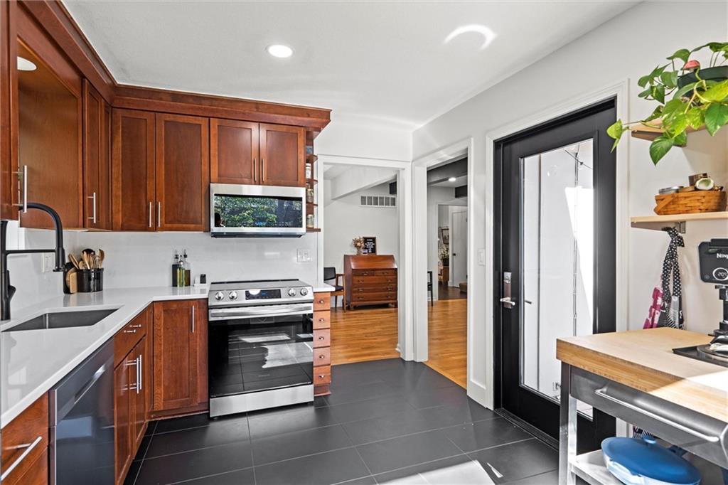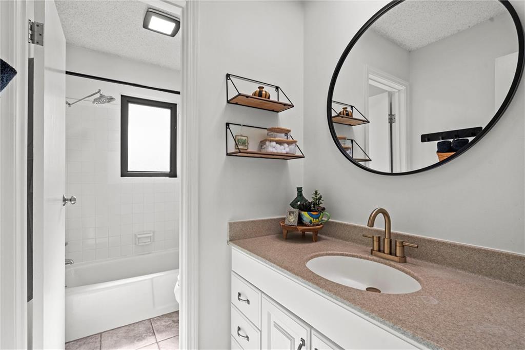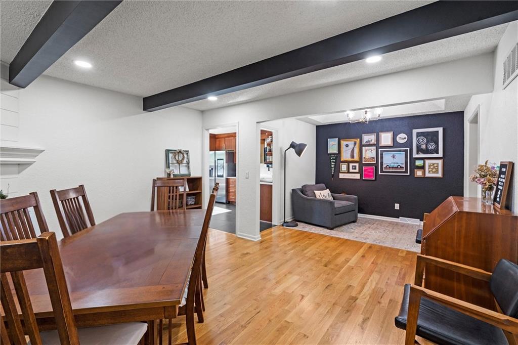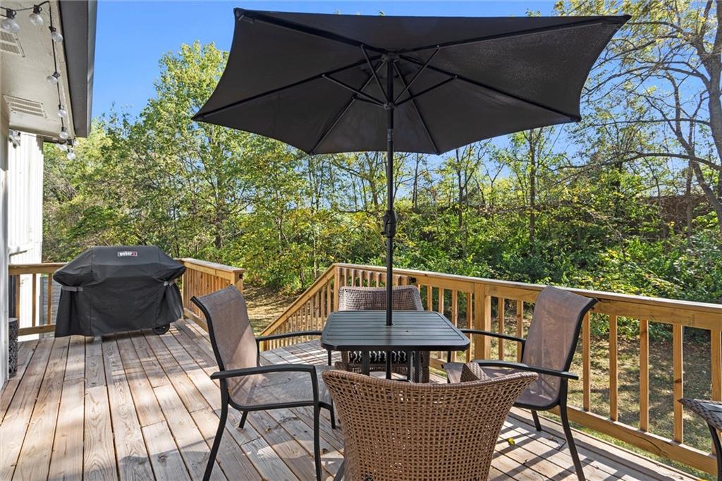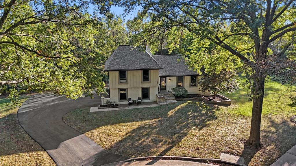Drive down the beautiful tree-lined streets of Leawood Estates to this charming home nestled in a cul-de-sac. Inside you'll find an entirely updated space, featuring hardwood floors, vaulted ceilings, freshly painted interiors, tasteful new lighting, and a great flow for entertaining. The main level’s living spaces are designed for comfort and style, with new built-in shelves in the front room, and a stunning shiplap fireplace surround that creates a perfect focal point. The kitchen shines with newly installed quartz countertops, a stylish backsplash, and updated fixtures, blending functionality and contemporary appeal. Every bathroom has been upgraded with new toilets, modern fixtures, and fresh finishes. The finished basement provides plenty of extra living space with a large rec room, laundry room and half bath. Step outside through the new back door onto the brand-new deck overlooking a beautiful, private backyard, perfect for entertaining or relaxing. Additional improvements include a new HVAC system, water heater, new windows throughout, new tile floors in main and garage entries, and new carpet upstairs. Brand new roof and gutters as well! Nothing to do but move in! Located close to award-winning schools, parks/trails, shops, dining, and highway access. From the perfect location to all the updates, this home offers the rare combination of move-in readiness, fantastic finishes, and the charm of one of Leawood’s most desirable neighborhoods.