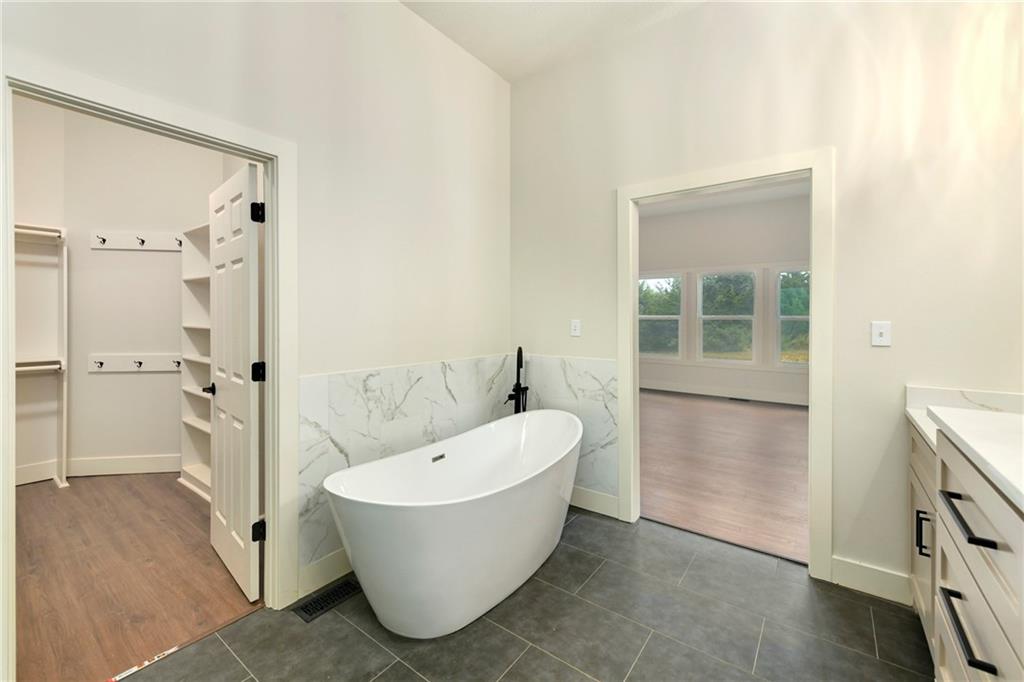 Looking for a high-quality lake home? Come see this newly constructed ranch featuring soaring ceilings & stylish high-end finishes throughout with NO shortcuts taken! From the moment you enter The Retreat, you'll be awed by the extra tall ceilings & the luxury flooring-NO carpet here! The huge great room is captivating with cathedral vaulted ceiling, 8-blade ceiling fan, & stone fireplace with sitting hearth. There's a gorgeous kitchen with quartz countertops, herringbone backsplash, tall cabinets, S/S appliances including range hood & refrigerator, a large center island with pendant lighting and a walk-in pantry. The dining space is generously sized and walks out to a covered patio on two sides! The primary suite features a vaulted ceiling, a private en-suite bath with huge glass walk-in shower, dual vanities, & a free-standing soaker tub, plus a huge walk-in closet with built-in dresser. Large secondary bedrooms have ceiling fans & walk-in closets, & share the hall bath which has a gorgeous glass shower & tile floor. The expansive concrete basement with high ceilings & egress well offers future expansion opportunity. 2-car garage with opener offers 2 points of entry into the home. With a convenient main-level laundry, windows & closets galore, covered patio & covered front porch, it's clear to see that the builder didn't skimp! This home sits just on a paved road just 2 minutes from the golf course and the lake - no gravel here! Linn Valley Lakes is a vibrant, amenity-rich community just 40 minutes south of Overland Park. Enjoy a 135-acre spring-fed lake for boating & jet-skiing, plus 2 additional stocked fishing lakes. Amenities include a golf course, rentable clubhouse with activities, community center with gym, 2 swimming pools, mini golf, basketball and tennis courts, walking trails, playground, fishing dock, boat ramp, campgrounds, shelter houses, swim beach, sand volleyball, horseshoe pit, & more! Don’t miss this incredible opportunity to live at LVL!