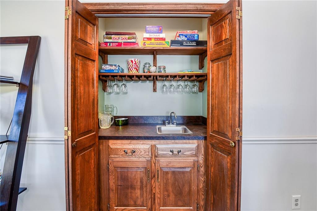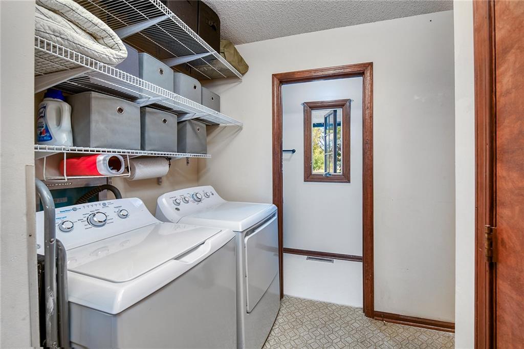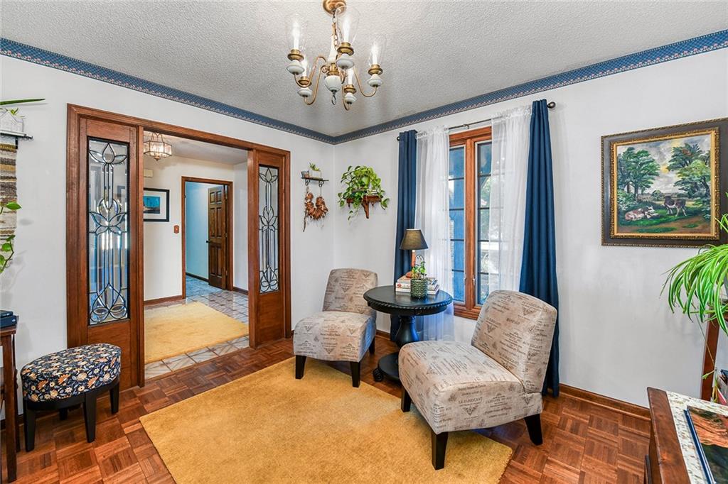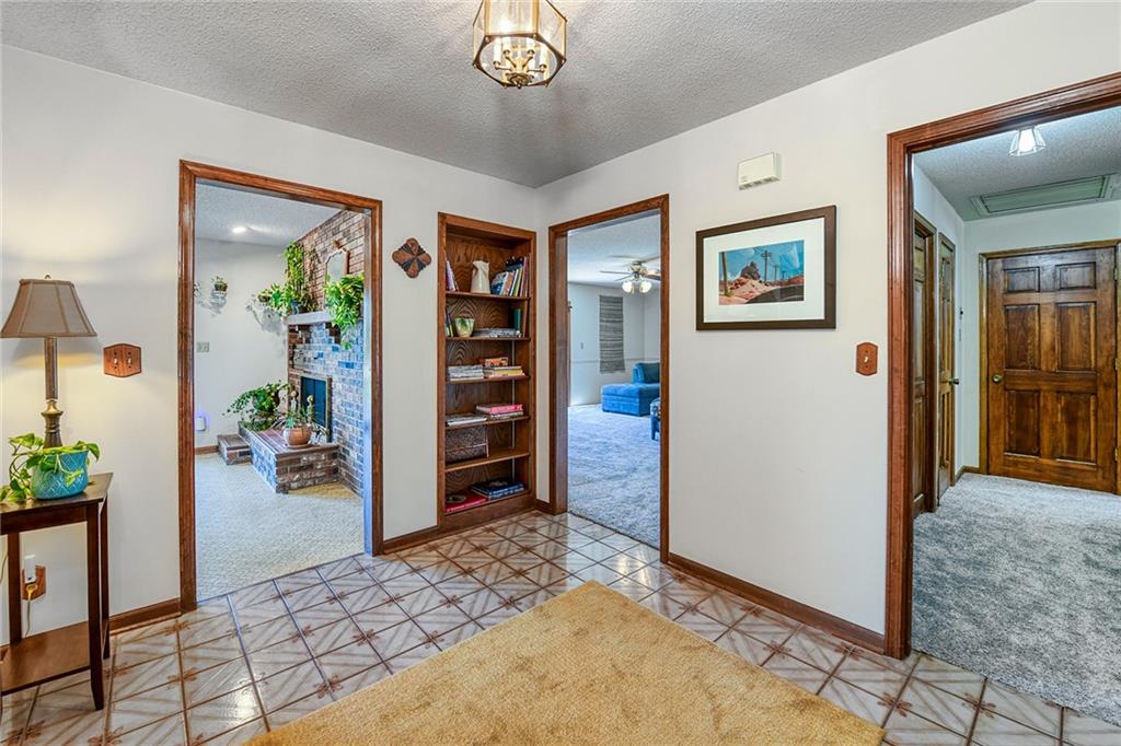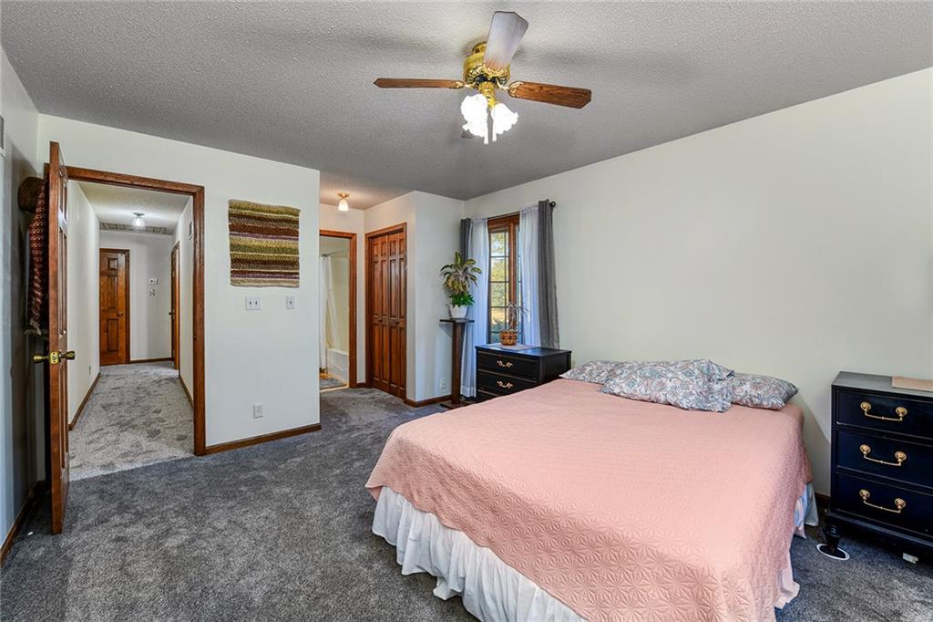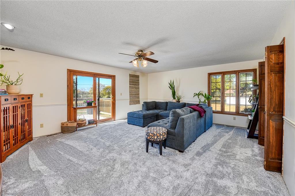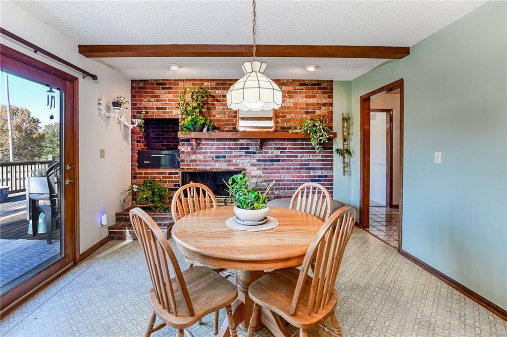 Looking for small acreage with excellent access to city conveniences and NO HOA? You may have just found your dream home! This spacious, brick-front true ranch home sits on close to 2 acres on a tranquil tree-lined street just minutes from the Legends! This home begins with great curb appeal including a large covered front porch and a beautiful beveled glass front door which ushers you in to a spacious foyer with custom tile floor and built in bookcase. On your left, the large formal dining room shines with parquet floor and beveled glass sidelights. The kitchen offers abundant cabinet space, a beamed ceiling, built-in desk, gas cooking, double oven, and a center island with butcher block countertop. The adjoining hearth room features a custom brick fireplace with built-in grill and French doors leading to the deck. It's the great room that steals the show, though, showcasing a second brick fireplace with sitting hearth, a wet bar, tons of windows and a sliding door which leads out to the deck for easy entertaining. The thoughtfully designed floor plan tucks all three bedrooms and two full baths away in a private wing of the house, separate from the main living areas. Fresh carpet and paint throughout and recent updates including hardware make it move-in ready. Additional highlights include a convenient laundry room and half bath off the kitchen, an oversized garage with direct backyard access, and a HUGE basement with tons of storage which could easily be finished into additional living space. With 3-year old ROOF & gutters, Pella windows, and a Dry Basement warranty, this home offers both comfort and peace of mind. The beautiful, manicured acreage provides level play space and plenty of room for your toys, a pool, or possible outbuilding. Located in the sought-after Piper School District, this home checks all the boxes - rural tranquility, modern convenience, and room to grow!