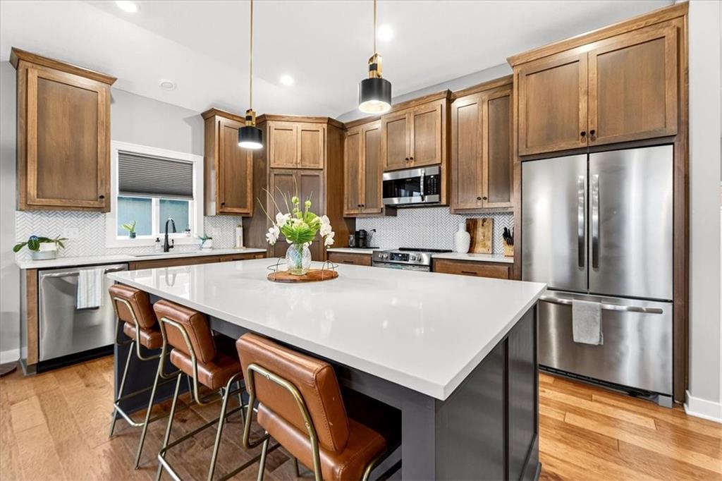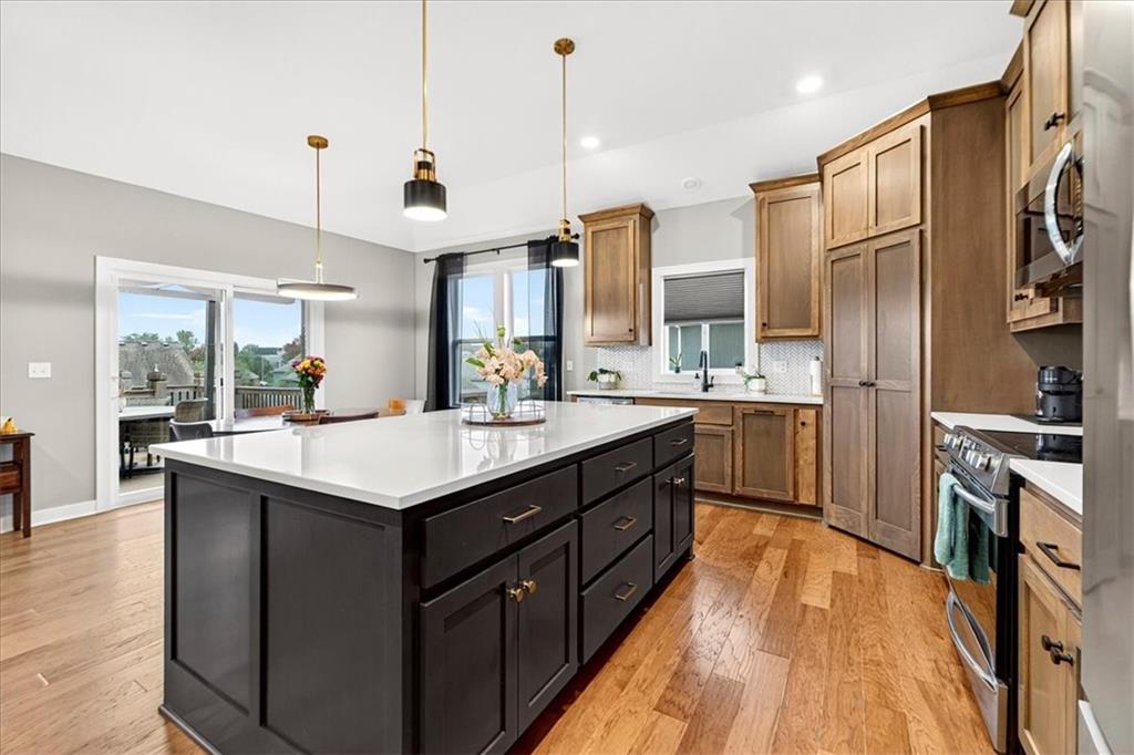 Step inside this beautifully designed home where craftsmanship meets everyday comfort. The entryway welcomes you with elegant wainscoting and flows into an open-concept main love featuring a spacious kitchen with stained cabinetry, stainless steel appliances, and a large island perfect for gatherings or meal prep.The living room offers a cozy feel with a stunning floor-to-ceiling stacked stone gas fireplace - the perfect spot to relax or entertain. Convenience meets function at the garage entry, where custom built-ins provide stylish storage and organization. The home's layout includes another living space with its own bedroom and bathroom, offering flexibility for a guest suite, home office, or hobby retreat. With its thoughtful finishes, versatile spaces, and inviting warmth, this home blends design and practicality in all the right ways.