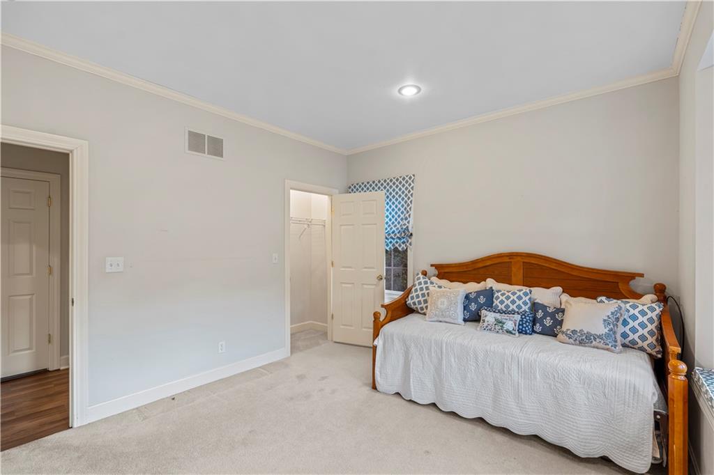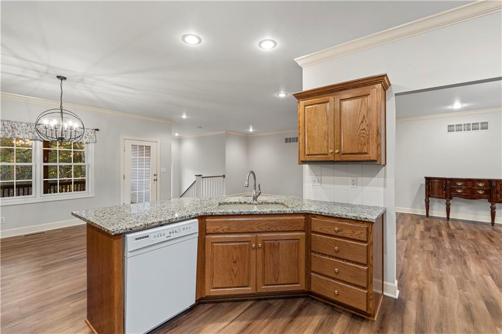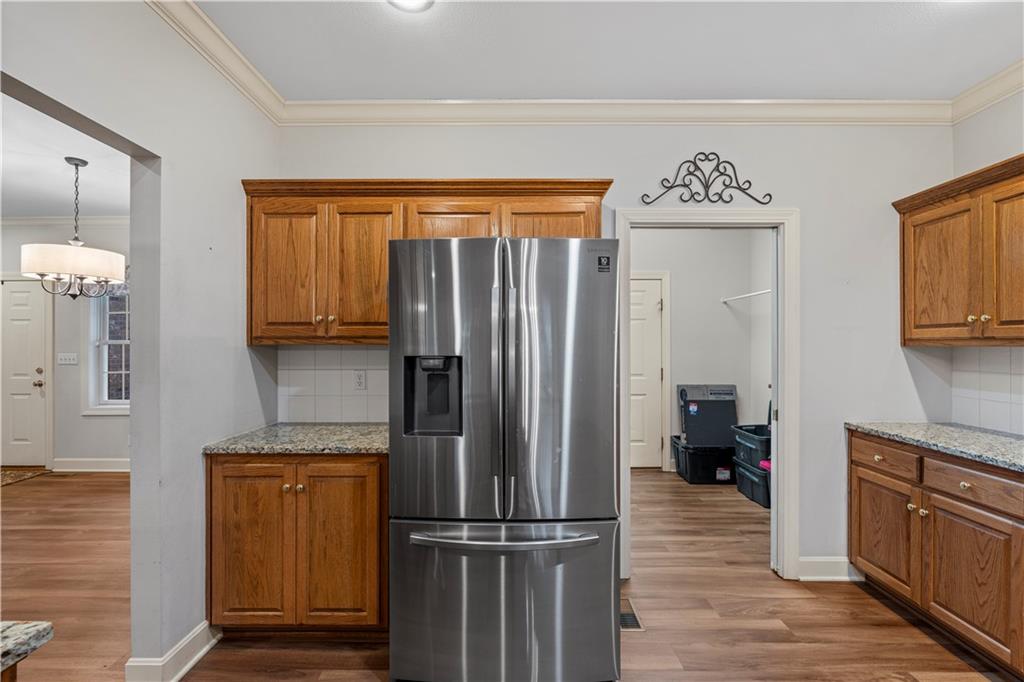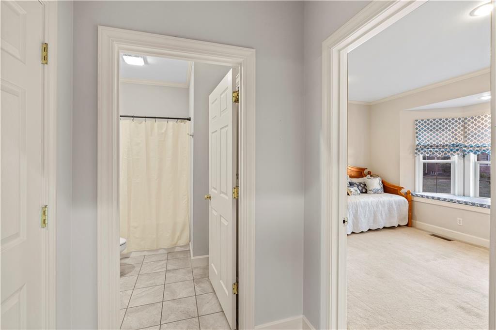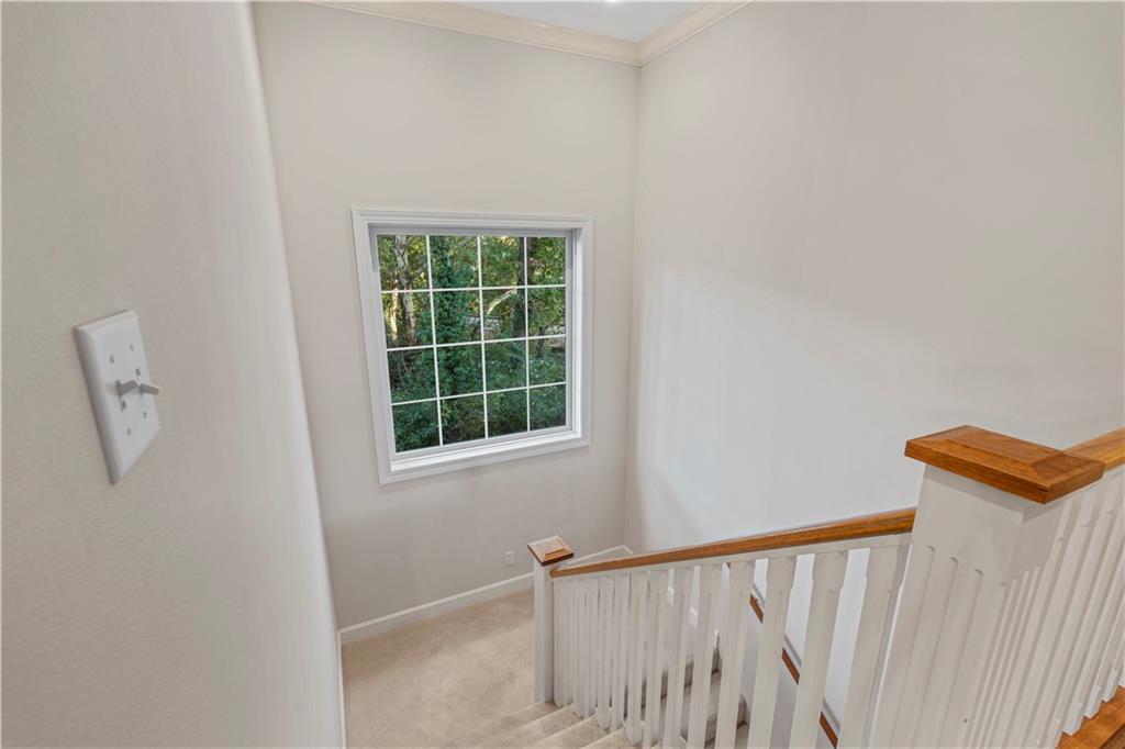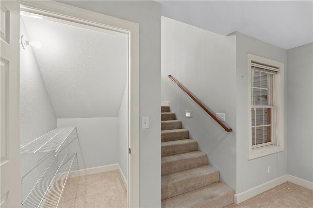 Welcome to this stunning, move-in ready brick home nestled in the Carriage Court subdivision! Enjoy a truly low-maintenance lifestyle with the convenient HOA that covers trash service, lawn care, and snow removal. Step into an inviting open-concept floor plan - This space is flooded with natural light from lots of windows and features stylish, modern light fixtures. The main level shines with elegant crown molding and durable LVP flooring that flows seamlessly throughout the kitchen, living, and dining areas. The well-appointed kitchen boasts sleek granite countertops and is conveniently equipped with all appliances. Storage is plentiful, including a large pantry conveniently located within the laundry room, just off of the kitchen. The upper level features two spacious bedrooms and two full bathrooms. The main bedroom offers a private ensuite bathroom and a walk-in closet. While the second bedroom is equally inviting, with a beautiful bay window that adds charm and extra light. The lower level offers flexibility and additional living space. It currently features a comfortable second living room, a third bedroom, and a third full bathroom. Beyond the finished areas, is a large unfinished area with endless possibilities. Both the upper level deck and lower level patio offer a quiet space to connect with nature, looking out onto the wooded area at the back of the home.