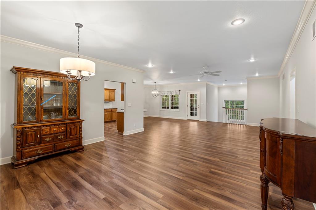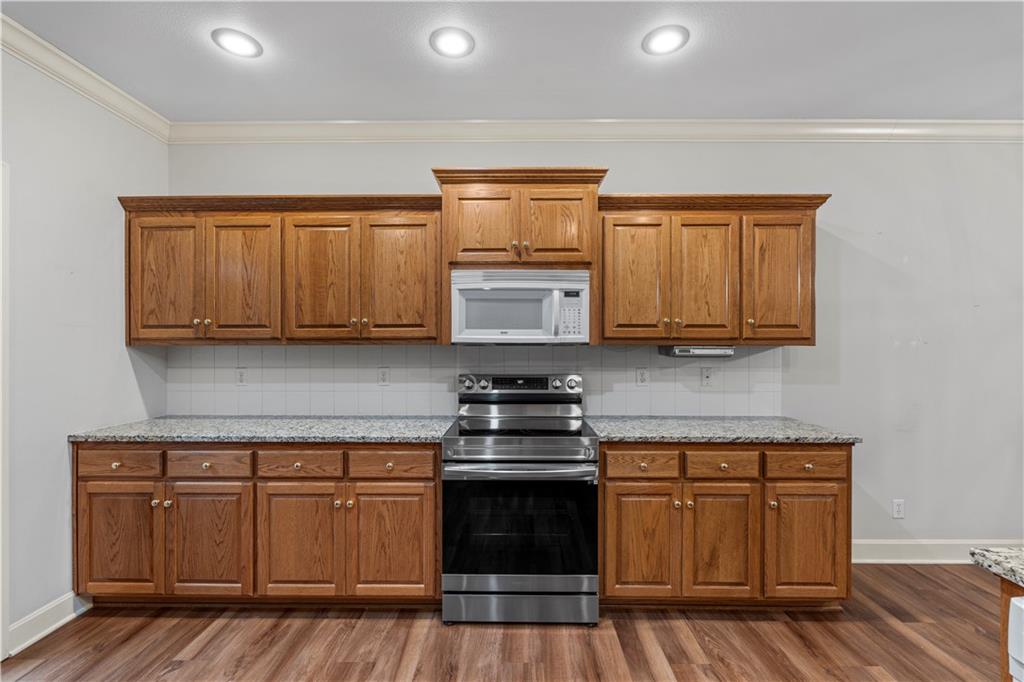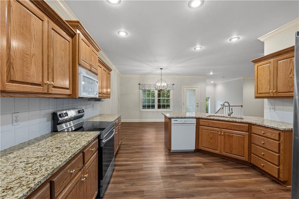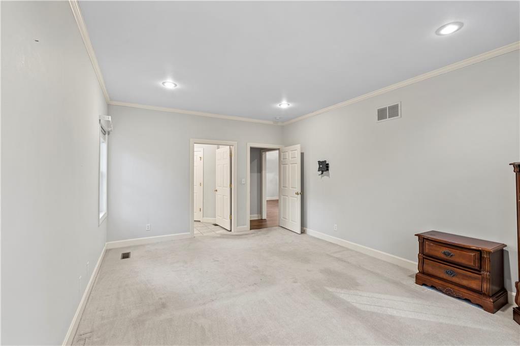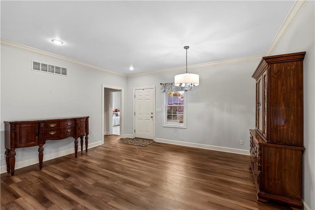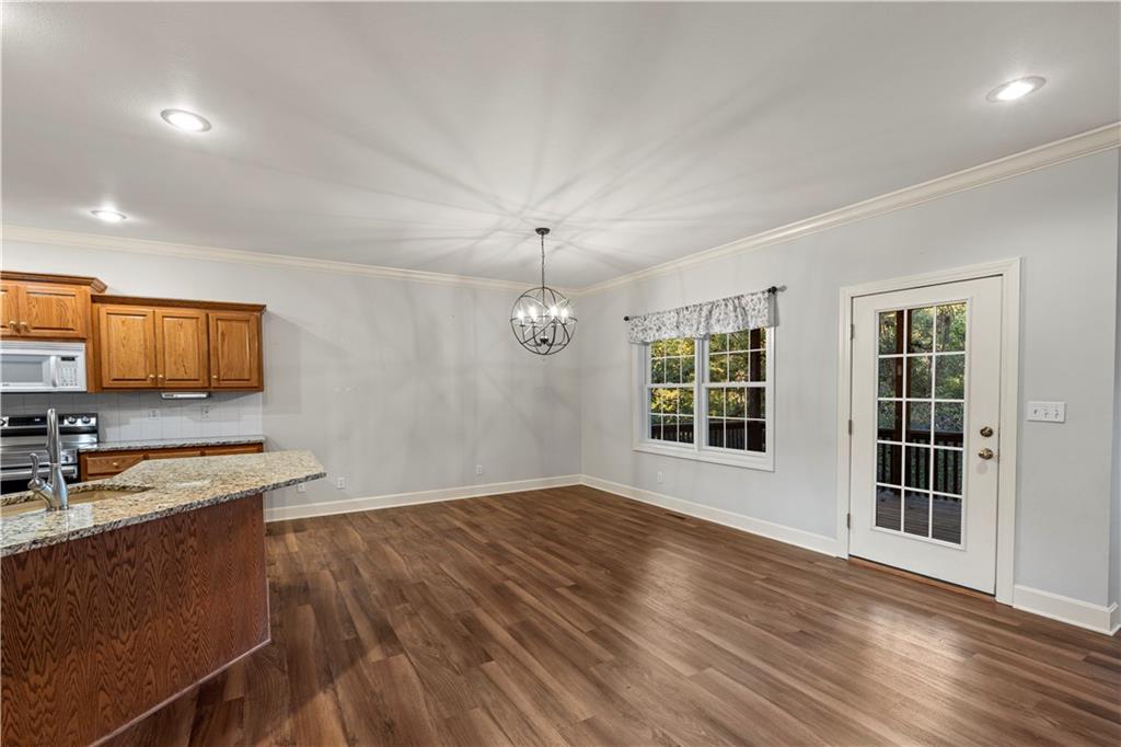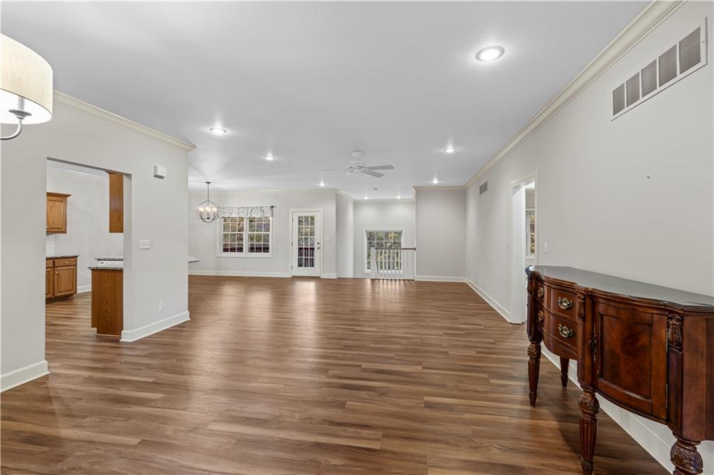 Welcome to this stunning, move-in ready brick home nestled in the Carriage Court subdivision! Enjoy a truly low-maintenance lifestyle with the convenient HOA that covers trash service, lawn care, and snow removal. Step into an inviting open-concept floor plan - This space is flooded with natural light from lots of windows and features stylish, modern light fixtures. The main level shines with elegant crown molding and durable LVP flooring that flows seamlessly throughout the kitchen, living, and dining areas. The well-appointed kitchen boasts sleek granite countertops and is conveniently equipped with all appliances. Storage is plentiful, including a large pantry conveniently located within the laundry room, just off of the kitchen. The upper level features two spacious bedrooms and two full bathrooms. The main bedroom offers a private ensuite bathroom and a walk-in closet. While the second bedroom is equally inviting, with a beautiful bay window that adds charm and extra light. The lower level offers flexibility and additional living space. It currently features a comfortable second living room, a third bedroom, and a third full bathroom. Beyond the finished areas, is a large unfinished area with endless possibilities. Both the upper level deck and lower level patio offer a quiet space to connect with nature, looking out onto the wooded area at the back of the home.