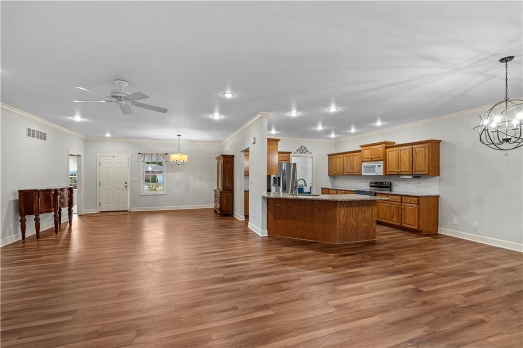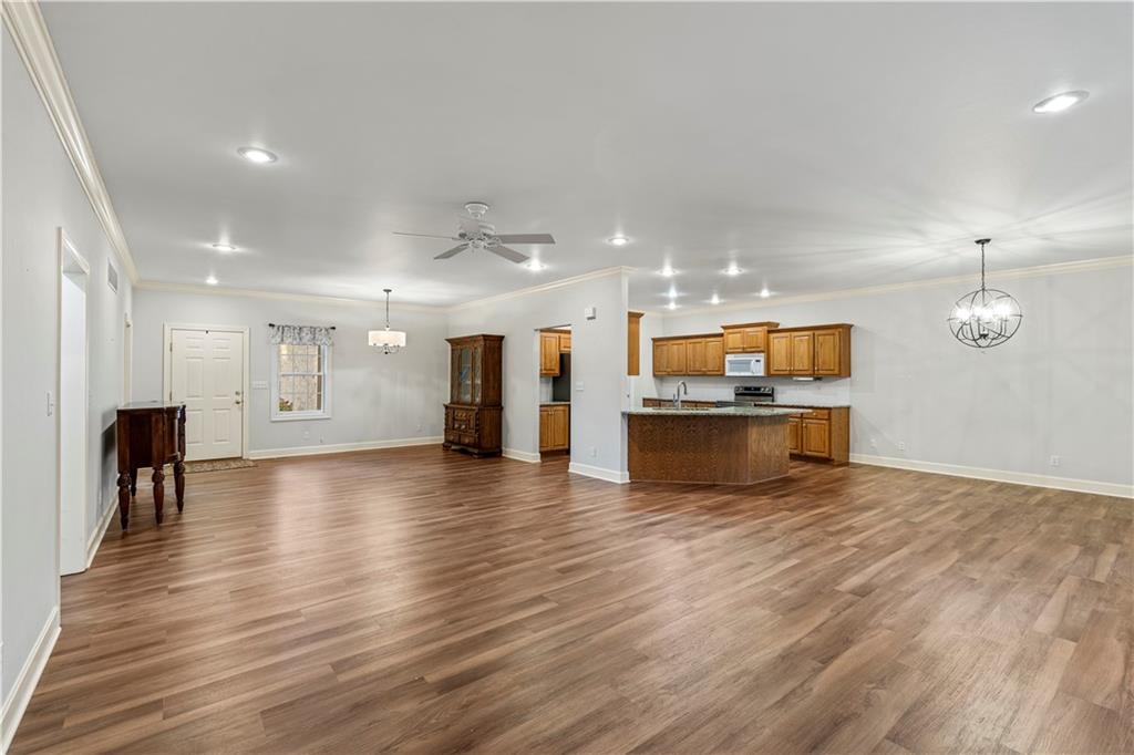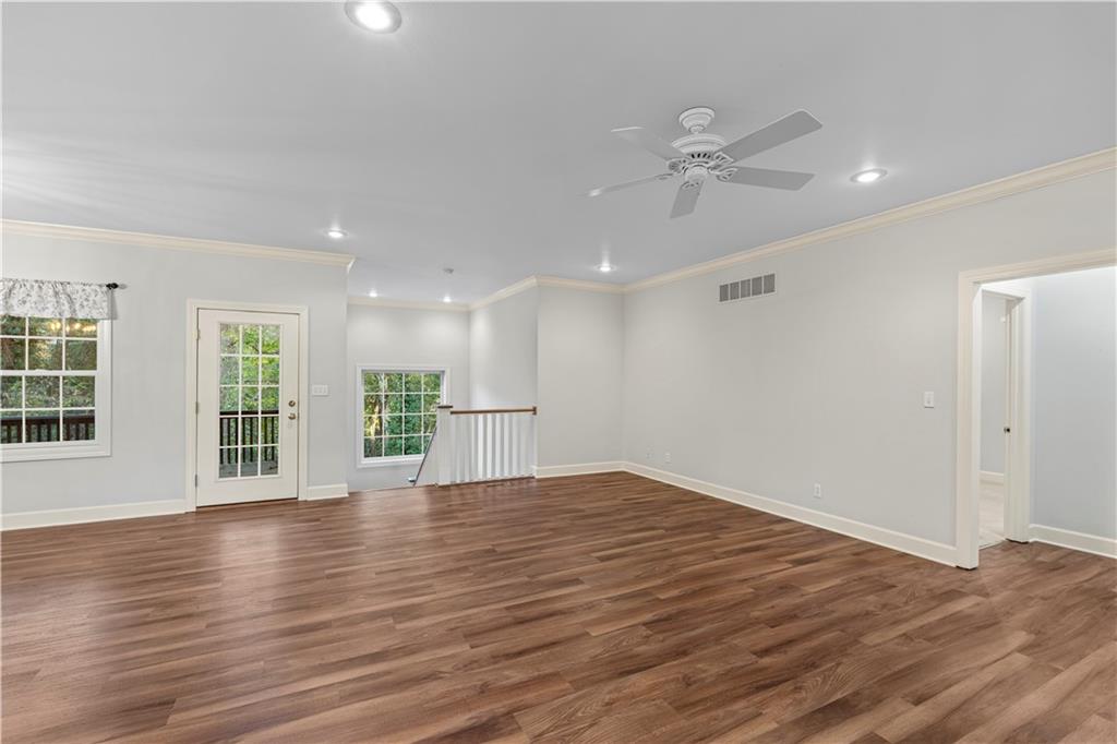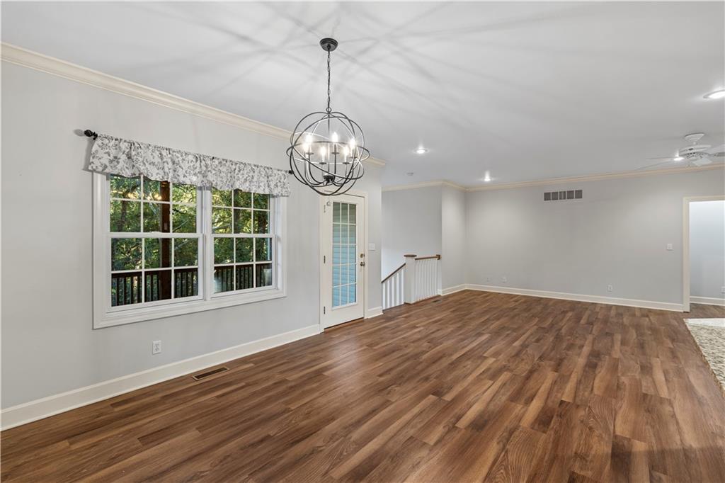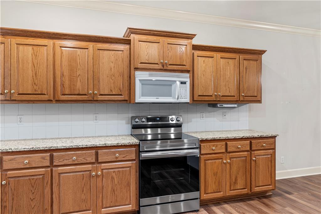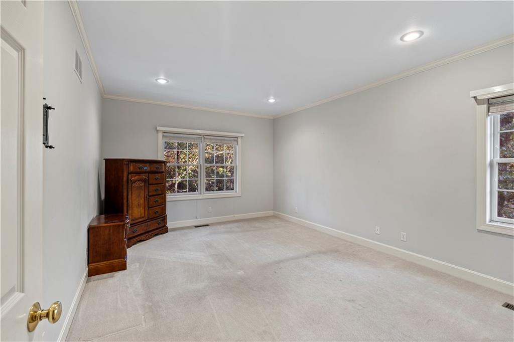 Welcome to this stunning, move-in ready brick home nestled in the Carriage Court subdivision! Enjoy a truly low-maintenance lifestyle with the convenient HOA that covers trash service, lawn care, and snow removal. Step into an inviting open-concept floor plan - This space is flooded with natural light from lots of windows and features stylish, modern light fixtures. The main level shines with elegant crown molding and durable LVP flooring that flows seamlessly throughout the kitchen, living, and dining areas. The well-appointed kitchen boasts sleek granite countertops and is conveniently equipped with all appliances. Storage is plentiful, including a large pantry conveniently located within the laundry room, just off of the kitchen. The upper level features two spacious bedrooms and two full bathrooms. The main bedroom offers a private ensuite bathroom and a walk-in closet. While the second bedroom is equally inviting, with a beautiful bay window that adds charm and extra light. The lower level offers flexibility and additional living space. It currently features a comfortable second living room, a third bedroom, and a third full bathroom. Beyond the finished areas, is a large unfinished area with endless possibilities. Both the upper level deck and lower level patio offer a quiet space to connect with nature, looking out onto the wooded area at the back of the home.