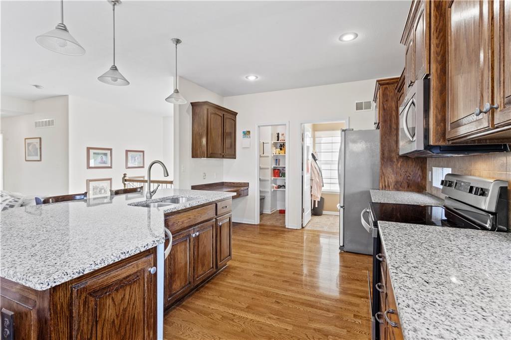 Very nice open concept floor plan with 4 full bedrooms, 3 full bathrooms and roomy 3 car garage. You will love how the comfortable main level flows. The large angled granite topped kitchen island opens to the great room for easy conversation with your family or when entertaining friends. Nice looking stainless steel kitchen appliances and a nice size pantry makes the kitchen area functional and in style! First floor bedrooms including the main bedroom and open bathroom complete with garden tub and separate shower. The finished lower level has a nice size family room, the third full bathroom and 4th bedroom that is perfect for the teenager "needing space" or, can be that perfect separate office space. Play outside in the large backyard of your fenced in corner lot or hang out with family and friends on the oversized deck finished with long lasting composite decking material. Great location close to shopping and restaurants, and, all in the sought after Lees Summit school district. Come take a look, you won't be disappointed!