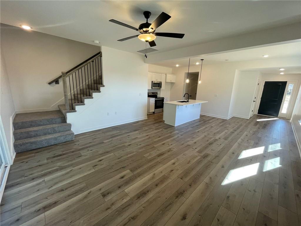 This beautiful 3-bedroom, 2.5-bathroom new construction home showcases a sleek modern design and a well-equipped kitchen featuring a large island with quartz countertops, stainless steel appliances and a spacious walk-in pantry. The main ensuite includes vaulted ceilings, a generous walk-in closet with built-in shelving, and a stylish attached primary bath. Enjoy convenient ground-level access to the rear patio and fully landscaped yard—perfect for pets, entertaining, and family activities. Spacious two-car garage offering plenty of room for parking and storage. Home is currently under construction; pictures are of a completed build and similar floor plan. Finishes and colors may vary. Estimated completion date is Nov 15.