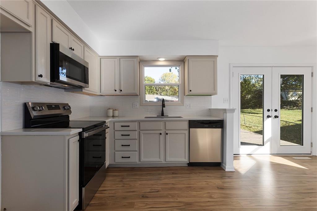Back On Market, No Fault To Seller....Welcome to this charming 4-bedroom, 2-bathroom home nestled in the heart of Blue Springs—just minutes from top-rated schools, scenic parks, and quick highway access! Step inside to discover a fully remodeled interior featuring a stunning updated kitchen with stainless steel appliances, modern light fixtures, fresh paint, and stylish new flooring throughout. Both bathrooms have been beautifully refreshed with contemporary finishes, giving the entire home a clean and inviting feel. Enjoy your morning coffee or evening gatherings on the oversized deck in the spacious, fenced backyard surrounded by mature trees, offering privacy and a touch of nature right at home. With its modern updates, newer AC, energy efficient windows, unbeatable location, and move-in ready condition, this home truly has it all!