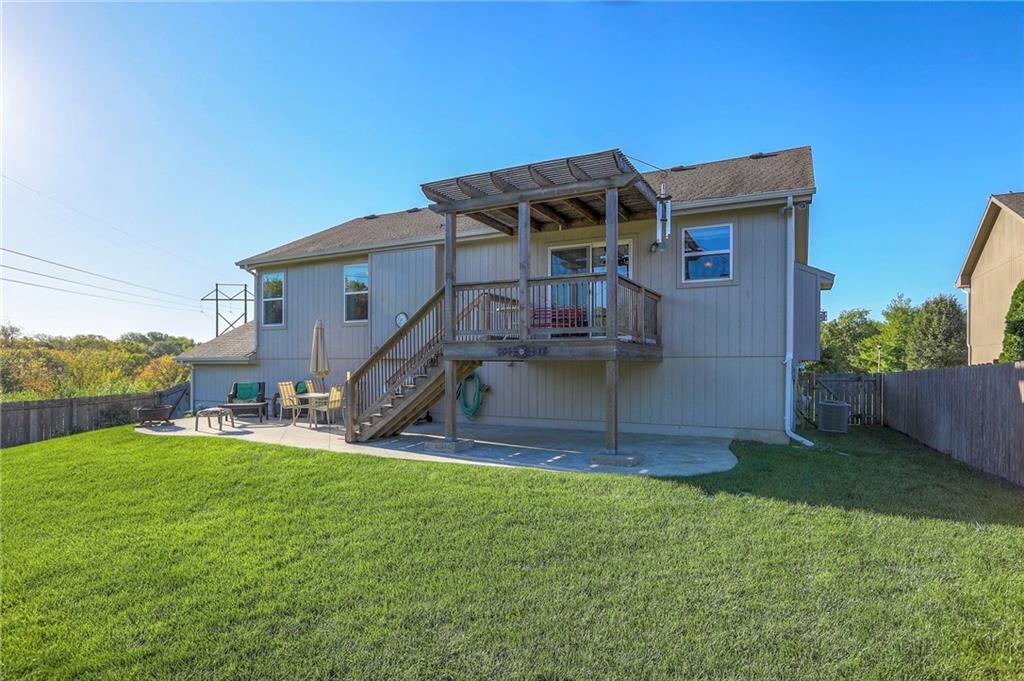 Check this beauty in Red Hawk Run out! This FOUR bedroom, three full bath home sits on very large fenced and sprinkled lot at the end of a cul-de-sac with extra green space next door which will never be built on! Step inside to the open, fresh modern colors, brightly lit main level living room with tall ceiling, ceiling fan, cozy fireplace & open kitchen! Kitchen comes complete with wood floors, granite counters, large island, double ovens, stained wood cabinets and deck access! Main level includes laundry which is an added convenience, full hall bath, large primary bedroom complete with master bath and large walk in closet. Lower DAYLIGHT level is finished, with one full bath, second living room area and a fourth nice sized bedroom perfect for guests or a home office! The large THREE CAR garage has inside entrance from lower level, backyard has been well maintained, is fully fenced and has a nice patio area and deck bringing you back inside to the beautiful and open kitchen! This home has been well maintained inside and out!
