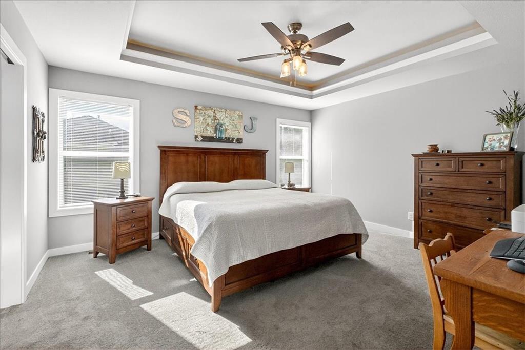Positioned on a spacious corner lot in sought-after Madison Creek, this nearly new home blends modern comfort, beautiful finishes, and thoughtful design at every turn. Just three years old and impeccably maintained, it offers the feel of brand-new construction without the wait. Inside, abundant natural light fills every room, highlighting the open-concept layout and stylish finishes throughout. The kitchen, living, and dining spaces flow effortlessly together, creating a warm and inviting atmosphere for everyday living or entertaining. Upstairs, every bedroom features a generous walk-in closet, and the convenient bedroom-level laundry adds ease to daily routines. Outside, enjoy a covered deck overlooking the fenced yard with sleek metal fencing and an expanded parking pad. The oversized three-car garage provides plenty of storage and functionality. With its pristine condition, thoughtful upgrades, and premium corner lot, this Madison Creek gem is truly move-in ready.