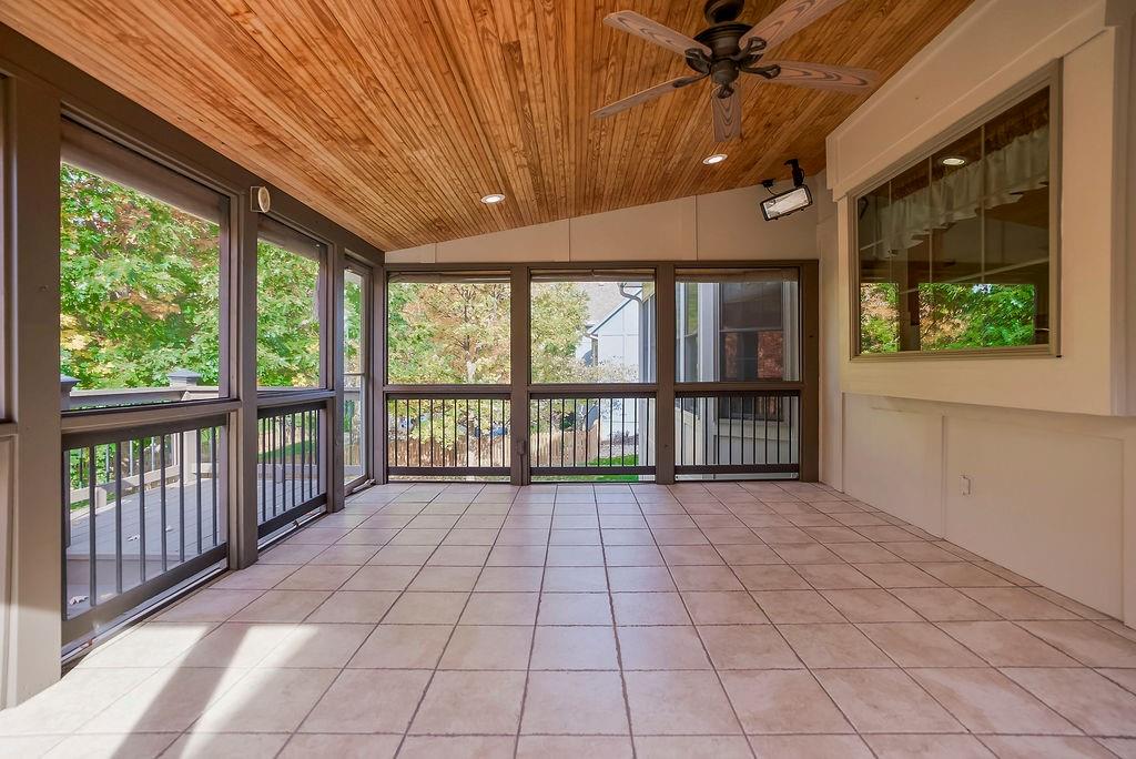 Welcome to a super special property in Blue Valley Schools — a lovingly maintained home surrounded by nature and privacy. The main lot is just over 18,000 sq ft, and it comes with two additional parcels, giving you extra space. Step out back and relax on the screened-in deck, the perfect spot for morning coffee, summer dinners, or watching the sunset over your spacious backyard. This home has a number of thoughtful updates: NEW furnace, NEW AC, NEW water heater, and NEW exterior paint — all the big stuff is done, so you can move in and enjoy. Each bedroom has its own bathroom (including a Jack and Jill), and every room feels spacious with large closets and natural light. The primary suite features a large bathroom plus an amazing walk-in closet. The main floor offers an open and comfortable flow — a family room with fireplace and built-ins, kitchen with deck access, and convenient laundry right off the hearth room. The walkout lower level adds even more living space with a finished family area, private office, full bath, and a large workshop/storage area. With a three-car garage, oversized driveway, and room to breathe both inside and out, this home has been carefully cared for by its original owners and it shows in every detail. Come see why this special property feels more like a retreat than just a home!