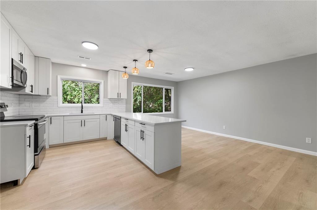 Flooded with natural light and thoughtfully reimagined, this fully renovated 3-bedroom, 2-bath home combines modern finishes with peace-of-mind upgrades — all situated on an oversized lot rarely found in the neighborhood. Inside, you’ll find brand new flooring throughout, a show-stopping kitchen with quartz countertops and a massive peninsula island, and stylishly updated bathrooms that complete the fresh, contemporary feel. Major systems have been fully updated, including a brand new HVAC system, new electrical service with updated panel and wiring, all new plumbing throughout, and new gutters. A newly built deck extends the living space outdoors — perfect for entertaining, relaxing, or enjoying the spacious yard. If you're looking for move-in ready comfort, functionality, and extra space in a beautifully updated home — this one delivers. **Brand New Roof will be installed with an accepted contract**