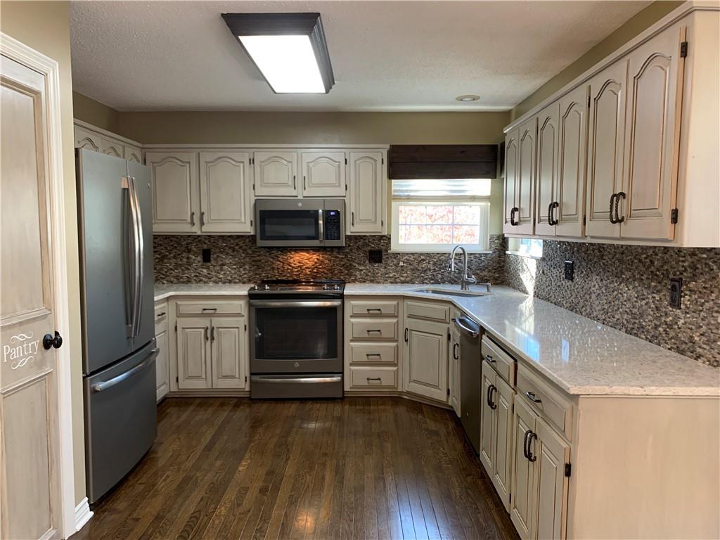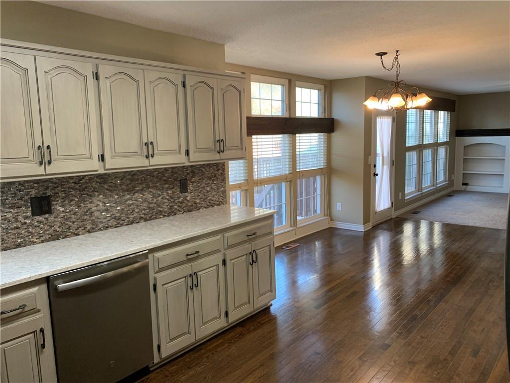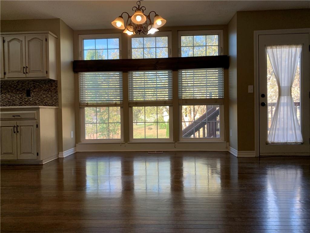 This beautifully maintained 4-bedroom, 3 1/2-bathroom home is situated on a spacious corner lot with a 2-car garage and additional driveway pad for extra parking. The updated kitchen features modern cabinetry, quartz countertops, a stylish tile backsplash, and stainless steel appliances, making it perfect for both everyday meals and entertaining. The kitchen opens into the inviting family room, which includes a gas fireplace and built-in shelving. The main floor also offers a versatile bonus room that can serve as a home office, den, or playroom. Upstairs, the generous primary suite boasts an updated en-suite bath with double vanities, vinyl plank flooring, and a walk-in closet. Conveniently located on the bedroom level, the laundry room makes chores a breeze, and the bonus attic storage adds extra space for your belongings. The finished lower level offers additional living space, featuring new carpet, a wet bar, and a second family room. There’s also room for a 5th non-conforming bedroom with a full bathroom in place, offering great potential for guests or multi-generational living. Step out from the lower level to a patio and enjoy the large, fenced backyard—perfect for pets and children. Other highlights include fresh interior and exterior paint, upgraded siding, newer HVAC and hot water heater, and a bonus shed that blends with the home for extra storage. Located near Zona Rosa, excellent schools, and with easy highway access, this home offers great convenience for shopping, dining, and commuting. Move-in ready and priced to sell—schedule your showing today!