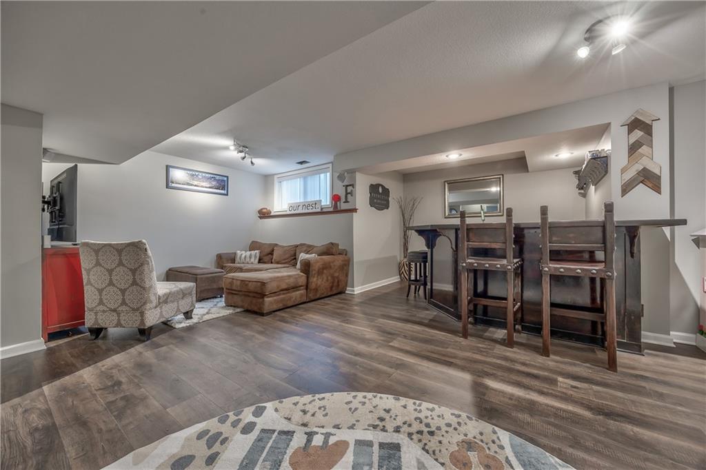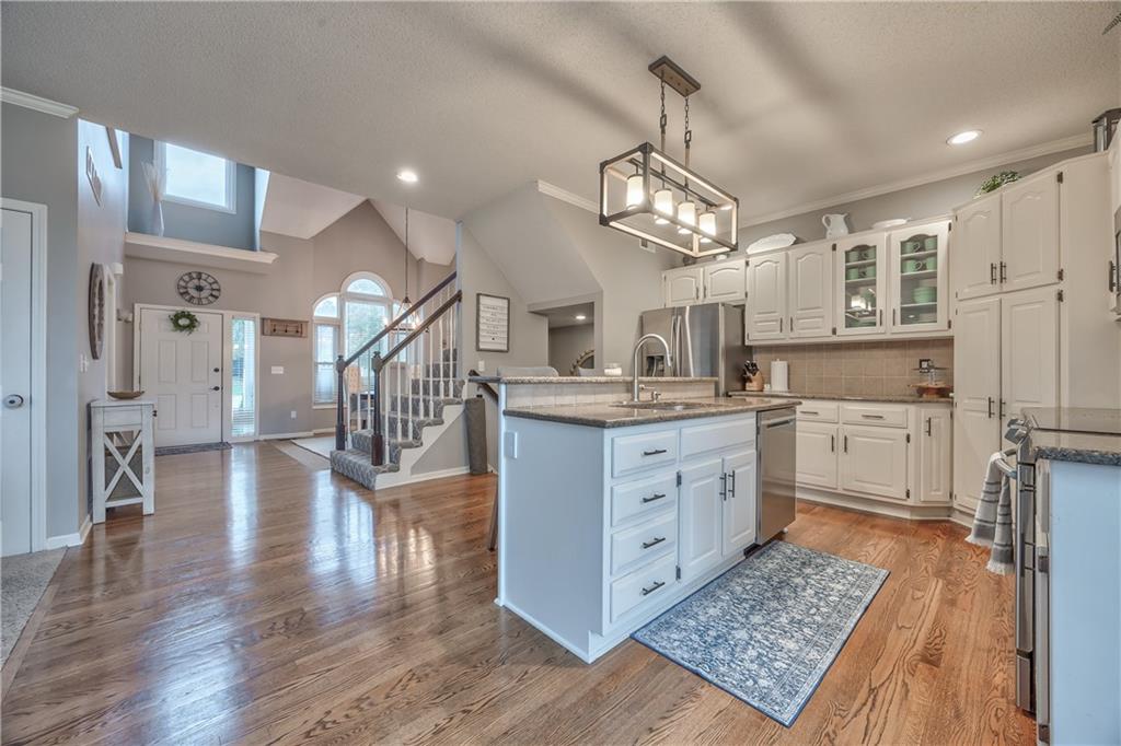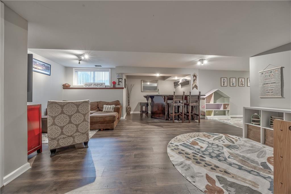 Welcome to Your Dream Home at the End of the Cul-de-Sac! Tucked away in a peaceful cul-de-sac, this beautifully maintained and thoughtfully updated home is brimming with charm and modern comfort. From the moment you step inside, you’ll be welcomed by an open, airy floor plan, soaring ceilings, and warm, inviting spaces designed for both relaxation and entertaining. At the heart of the home lies a bright, cheerful kitchen with crisp white cabinetry, gleaming granite countertops, stainless steel appliances, and a large center island perfect for gathering with friends and family. Enjoy meals in the sunlit eat-in nook or host special occasions in the formal dining room. The luxurious primary suite is a true retreat, featuring a brand-new marble-tiled bathroom with a spacious walk-in shower, deep soaking tub, and quartz double vanity — the perfect blend of elegance and serenity. The finished lower level offers incredible versatility, including a non-conforming bedroom or home office with walk-in closet, an adjacent full bath, a large recreation/flex area, a fully equipped bar, and even a cozy theater space for movie nights. Step outside to discover your private backyard haven — an expansive, beautifully landscaped yard with a large composite deck ideal for barbecues, gatherings, or simply enjoying quiet evenings under the stars. Additional updates include fresh interior paint, stylish lighting fixtures, a newer roof, and a newer water heater. Filled with light, character, and thoughtful upgrades, this move-in-ready gem offers the perfect balance of sophistication and comfort. Come experience the feeling of home — this one is truly special.