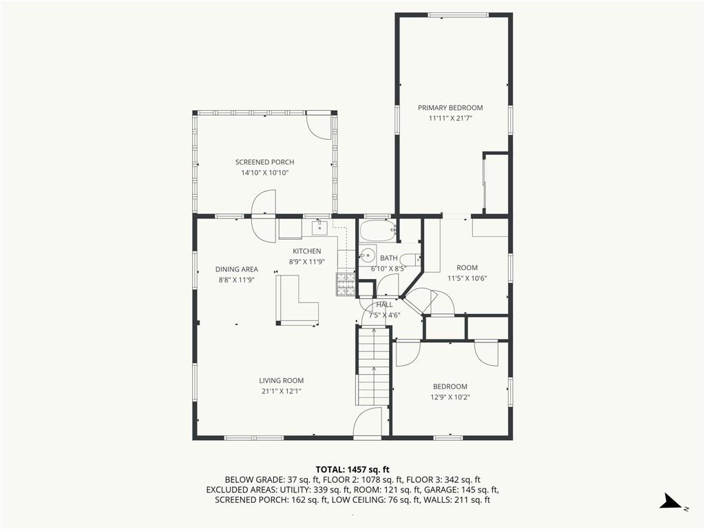Charming Brick 1.5 Story on Over Half an Acre! This beautifully updated home offers 4 bedrooms and 2 baths on a tree-lined lot with more than half an acre of space to enjoy. Step inside to find gleaming wood floors, an updated living area, and a stylish kitchen featuring stainless steel appliances. The large primary bedroom provides plenty of comfort and privacy. Enjoy additional living space in the finished basement—perfect for a home office. Relax or entertain on the inviting screened porch overlooking the serene large backyard. A rare combination of classic charm and modern updates—ready to move in and enjoy!