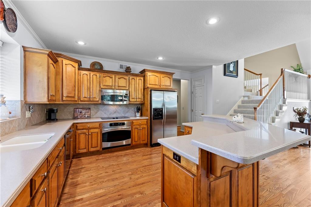 Beautifully maintained Lambie-Geer home tucked on a private cul-de-sac lot. This thoughtfully designed floor plan showcases quality craftsmanship, spacious living areas, and updates that make it truly move-in ready. The main level features a dramatic two-story entry and a private primary suite. The kitchen and hearth room serve as the heart of the home, offering a huge walk-in pantry and seamless flow to the formal living and dining spaces—ideal for entertaining or everyday comfort. Upstairs, generous secondary bedrooms each feature walk-in closets, and all bathrooms have been updated with beautiful granite finishes. A true three-car garage, flat driveway, and daylight basement—already stubbed for a full bath and with egress windows—add versatility and future potential, with over 2,000 square feet ready to finish to your taste. Concrete walls look as good as the day they were poured. Recent improvements highlight pride of ownership, including a newer aluminum fence, NEW hot water heater, NEW dishwasher, upgraded sprinkler monitoring system, several replaced windows, NEW garage door opener, all new toilets, a new A-coil in the furnace, and over $6,000 in added landscape lighting. As an added bonus, the new homeowner will inherit custom-fit professional holiday lighting designed specifically for this home—making seasonal decorating effortless. Located minutes from golf courses, parks, bike trails, soccer fields, and Deanna Rose Farmstead, this home delivers the perfect blend of comfort, convenience, and community in one of the area’s most desirable neighborhoods.