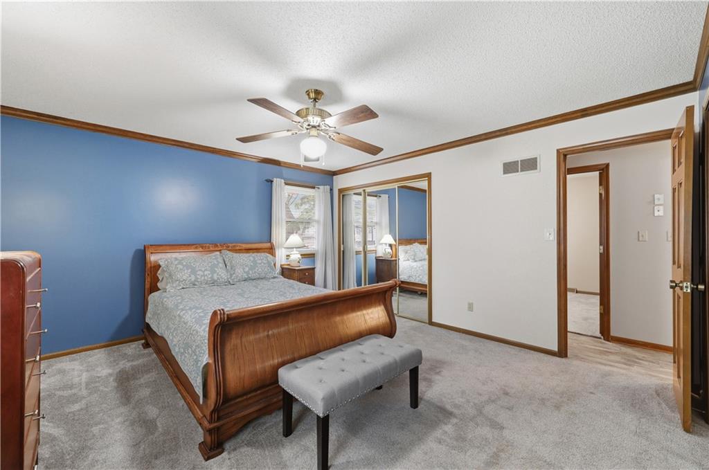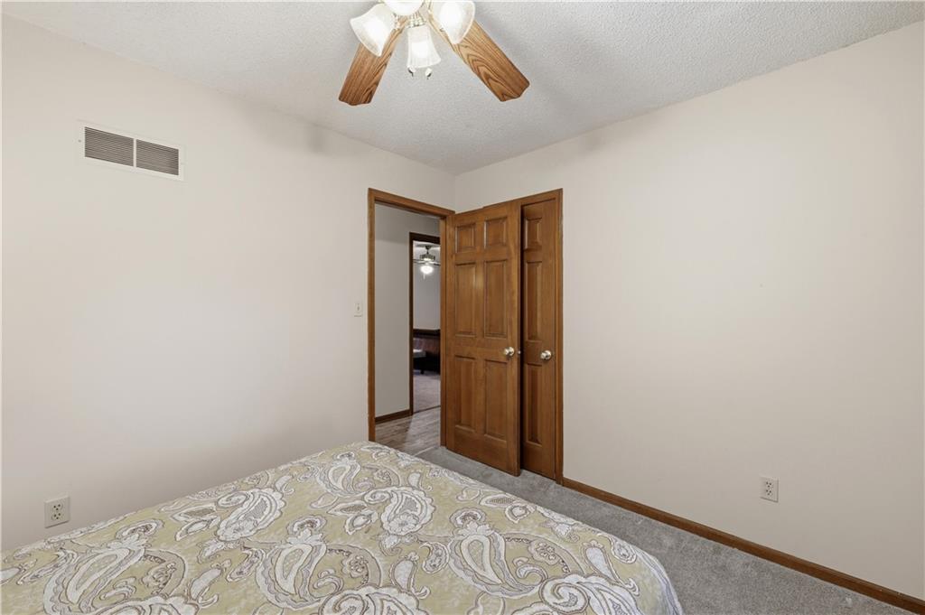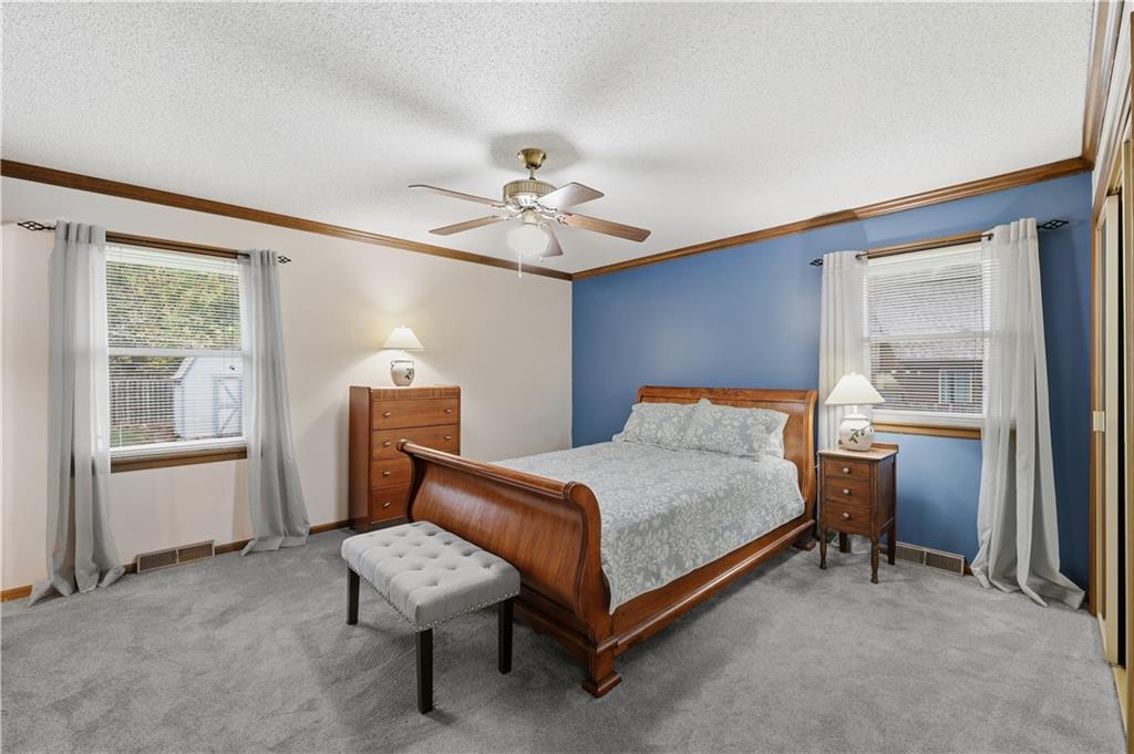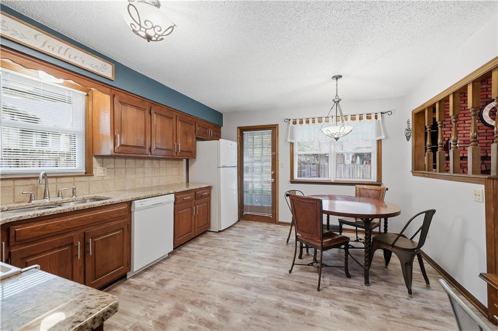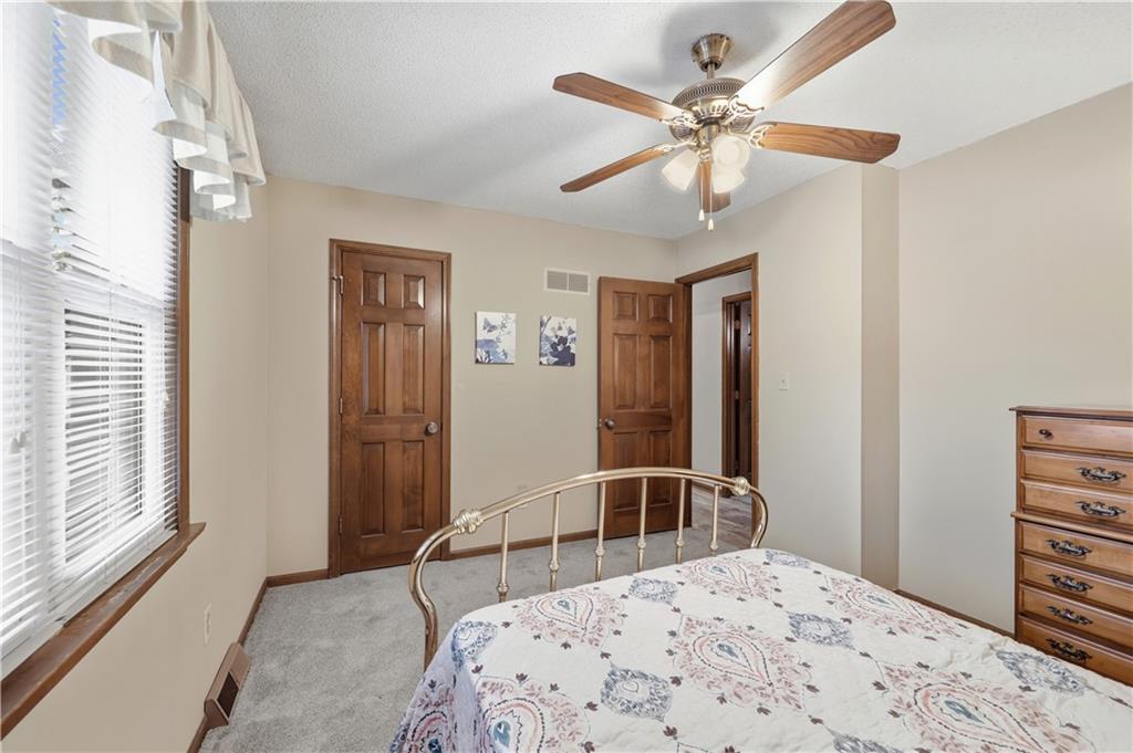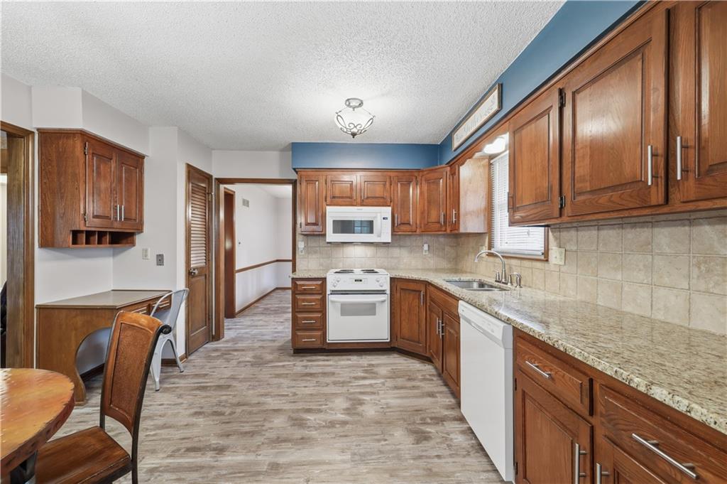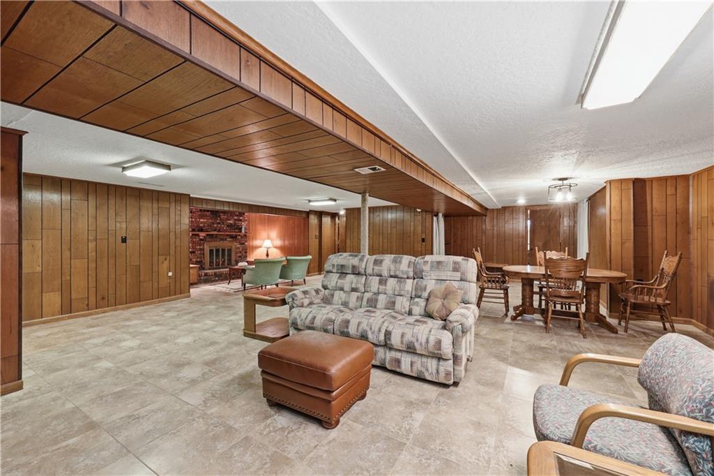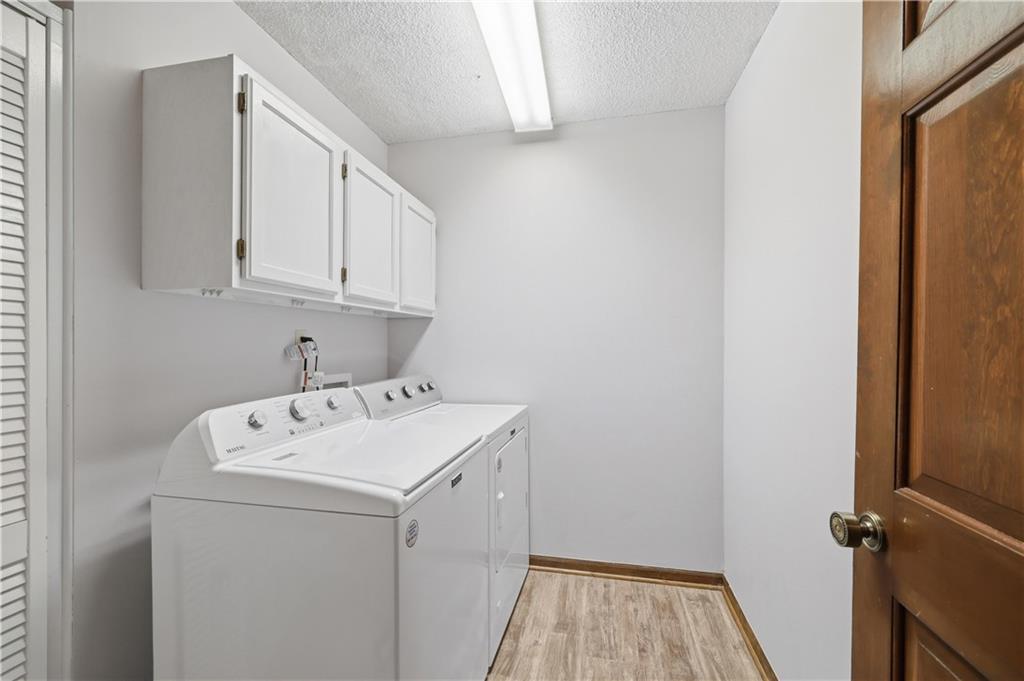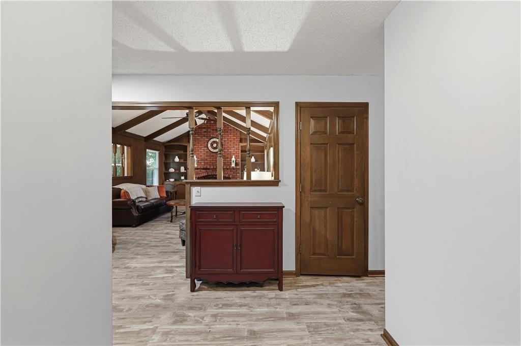 Beautifully maintained, move-in ready full ranch in the established Castle Woods neighborhood of Independence. This 3-bedroom, 2.5-bath home offers comfortable main floor living in a quiet community with convenient access to highways, shopping, and dining. Step inside to find a spacious entry that leads to an impressive great room with vaulted ceilings, exposed beams, built-ins, and a dramatic fireplace that creates a warm and inviting gathering space. The eat-in kitchen features granite countertops, updated backsplash, and a formal dining area perfect for entertaining. The main level is one-step entry from garage, and includes a separate laundry room with extra storage. The primary suite offers dual closets with built-in organization and shelving to maximize storage, along with a private en-suite bath. Downstairs, the fully finished lower level provides a wide open recreation room with a fireplace, a non-conforming bedroom, and abundant storage space. Recent updates include new refrigerator, new luxury vinyl plank flooring, newer carpet, a newer furnace (Jan 2024), new hot water heater, and Maytag washer and dryer. Outdoor features include an oversized patio, privacy-fenced backyard, and a large storage shed with ramp access. The backyard is private and peaceful, and with the shed, ideal for pets, hobbies, or outdoor entertaining. Over the years, the sellers have made thoughtful improvements such as updated windows, driveway, kitchen and bath hardware, light fixtures, granite countertops, backsplash, and easy-care landscaping. This home has been meticulously cared for and reflects true pride of ownership throughout.